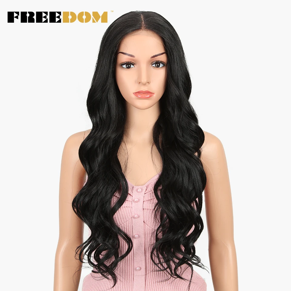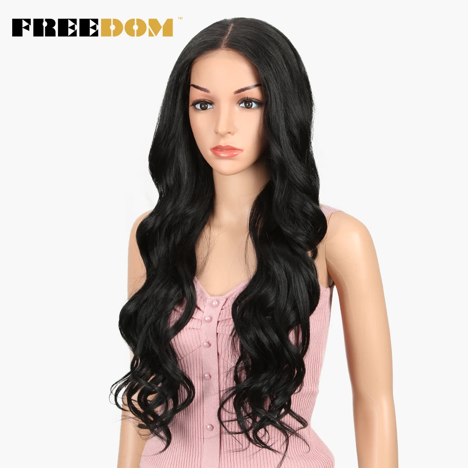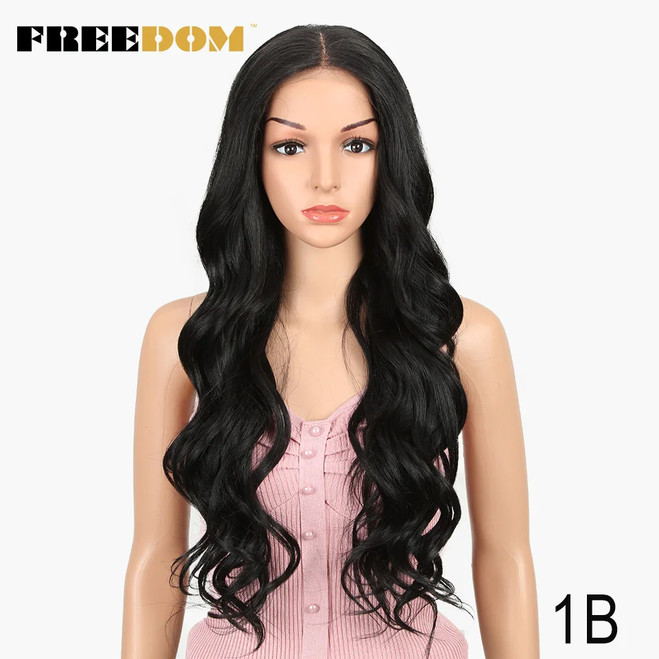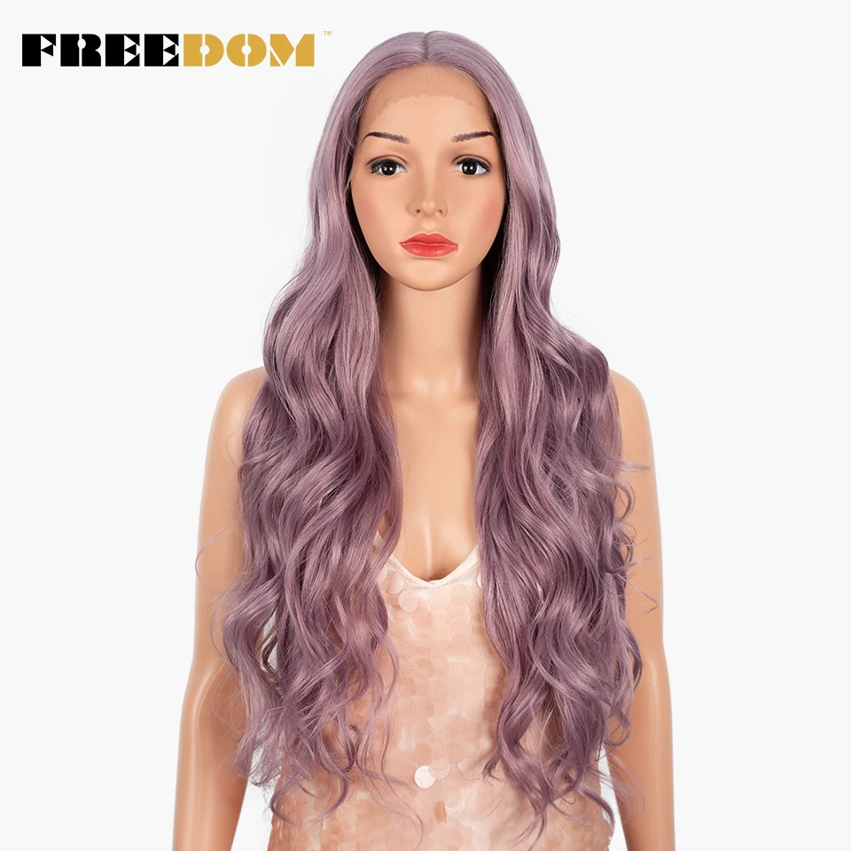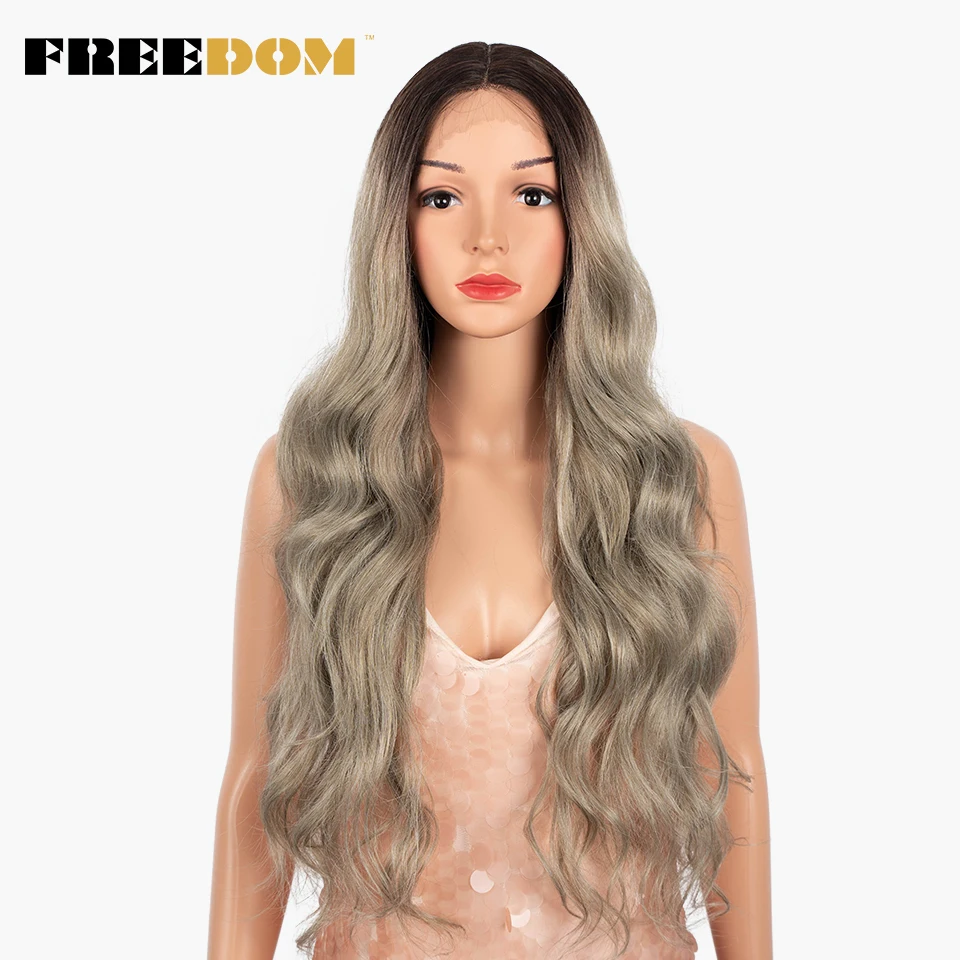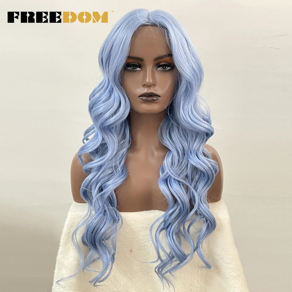 FREEDOM Synthetic Lace Wigs For Black Women Highlight Orange Ginger Blue Red T Part Lace Wig Ombre Brown Long Wavy Cosplay Wigs