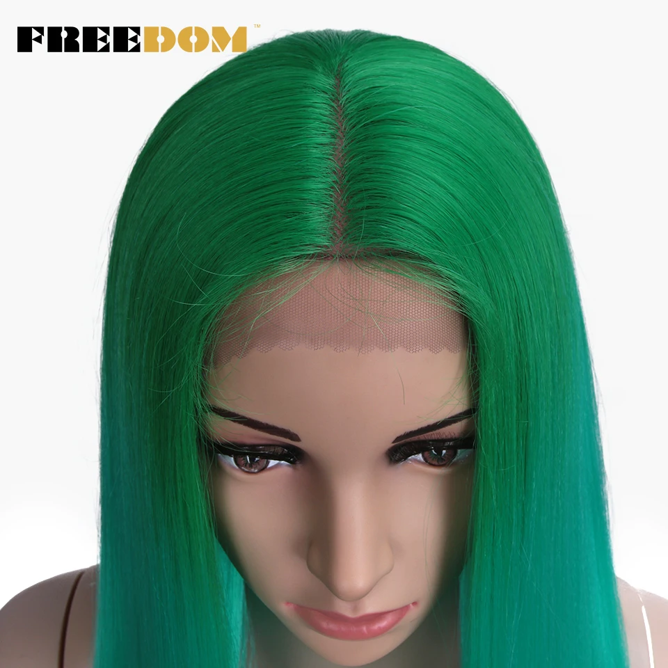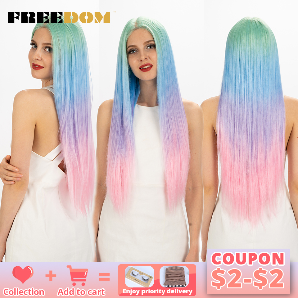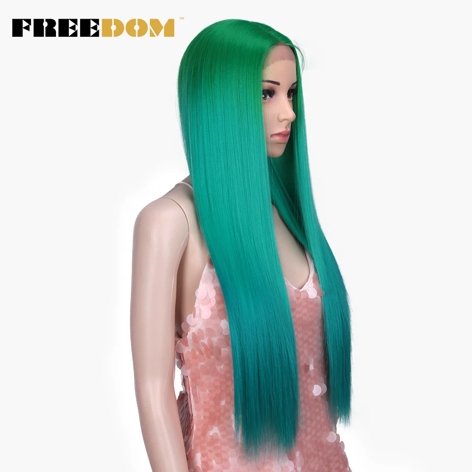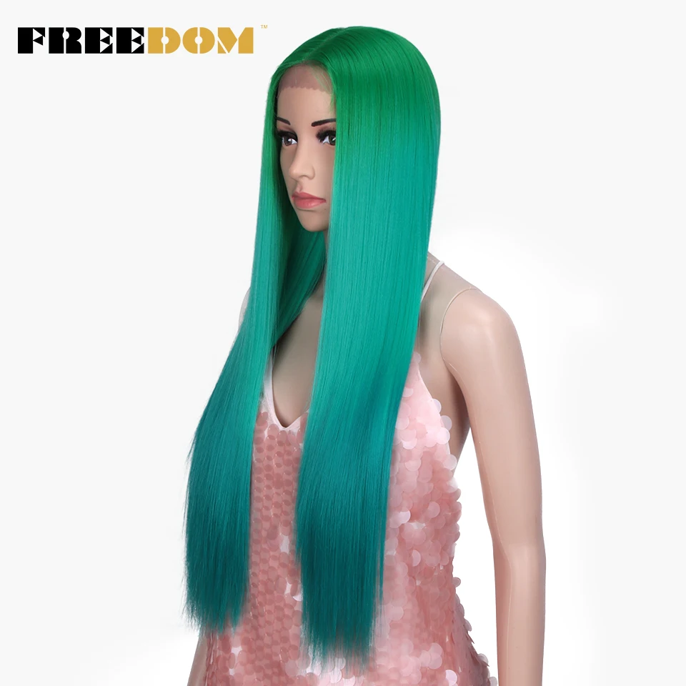 FREEDOM Synthetic Lace Wigs Omber Green Rainbow Color Long Straight Wigs For Black Women 30inch Heat Resistant Cosplay Wig