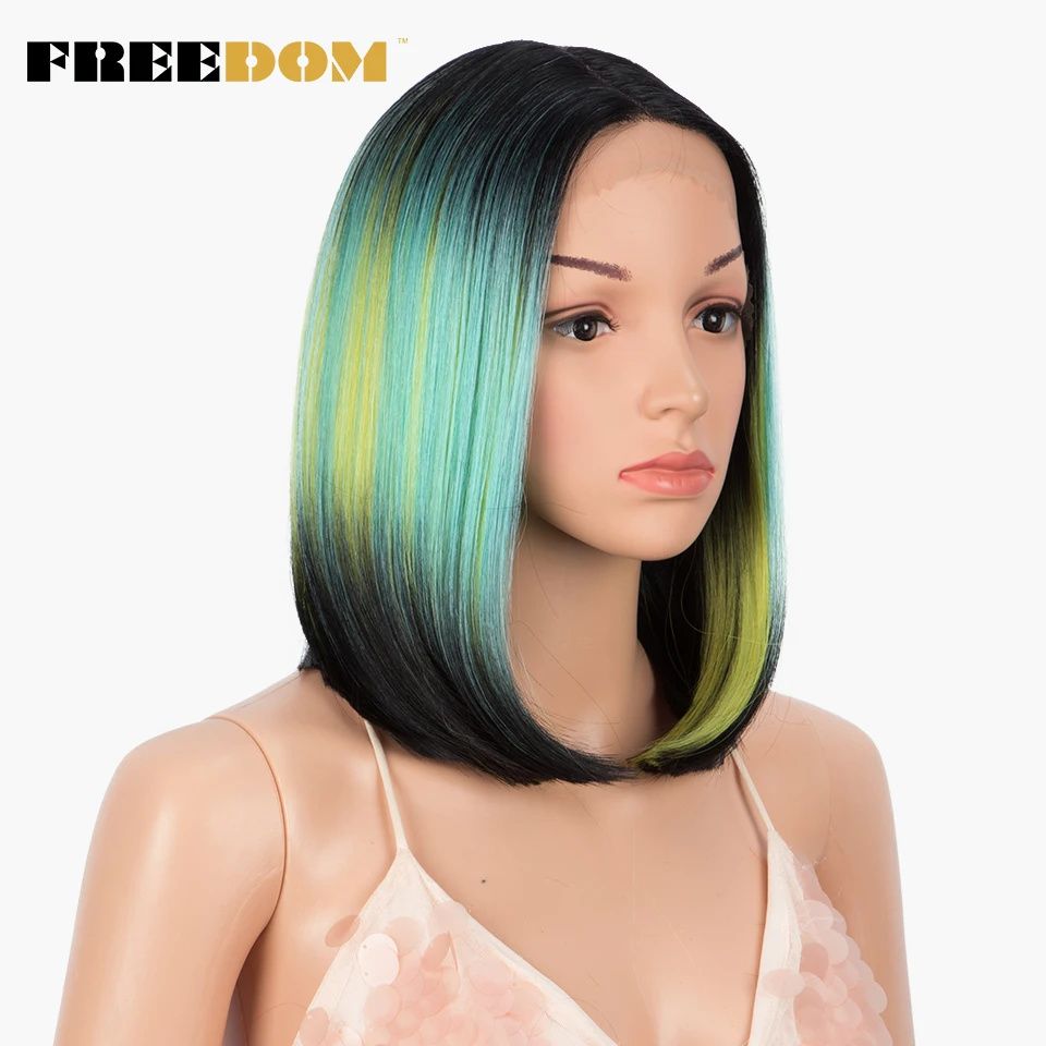 FREEDOM Synthetic Lace Wigs Straight Short Bob Ombre Blonde Blue Lace Wig Middle Part Lace Wigs For Black Women Cosplay Wigs