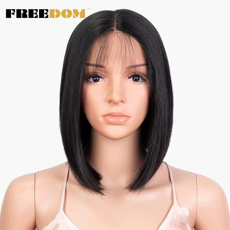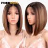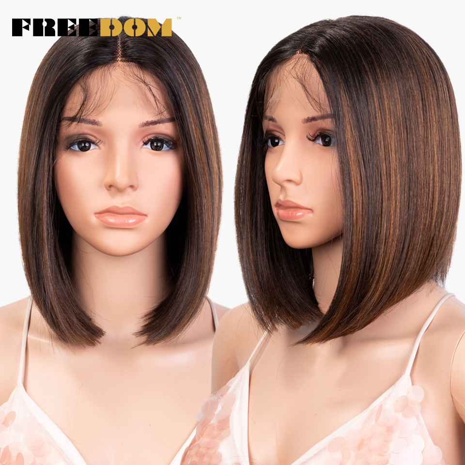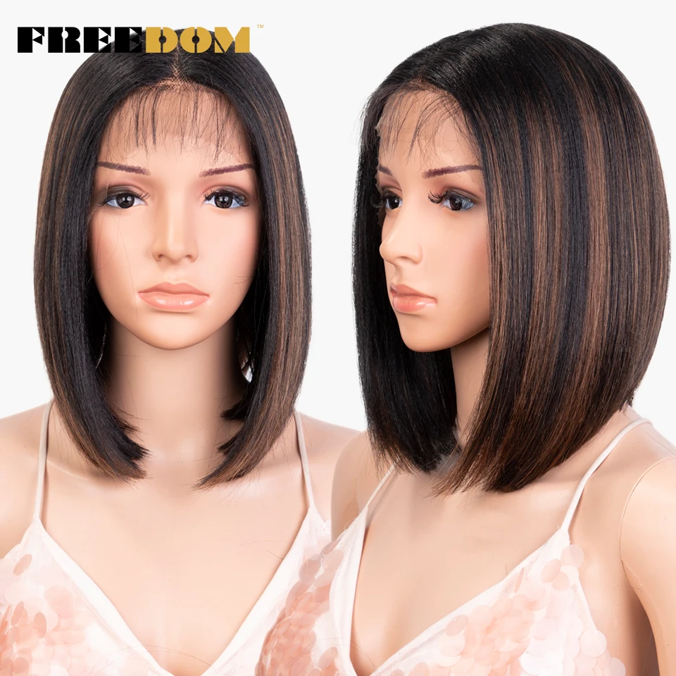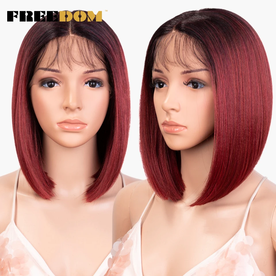 FREEDOM Synthetic Short Bob Lace Wigs 10 inch Straight Ombre Red Wig Hand tied Lace Wigs For Women Heat Resistant Cosplay Wigs