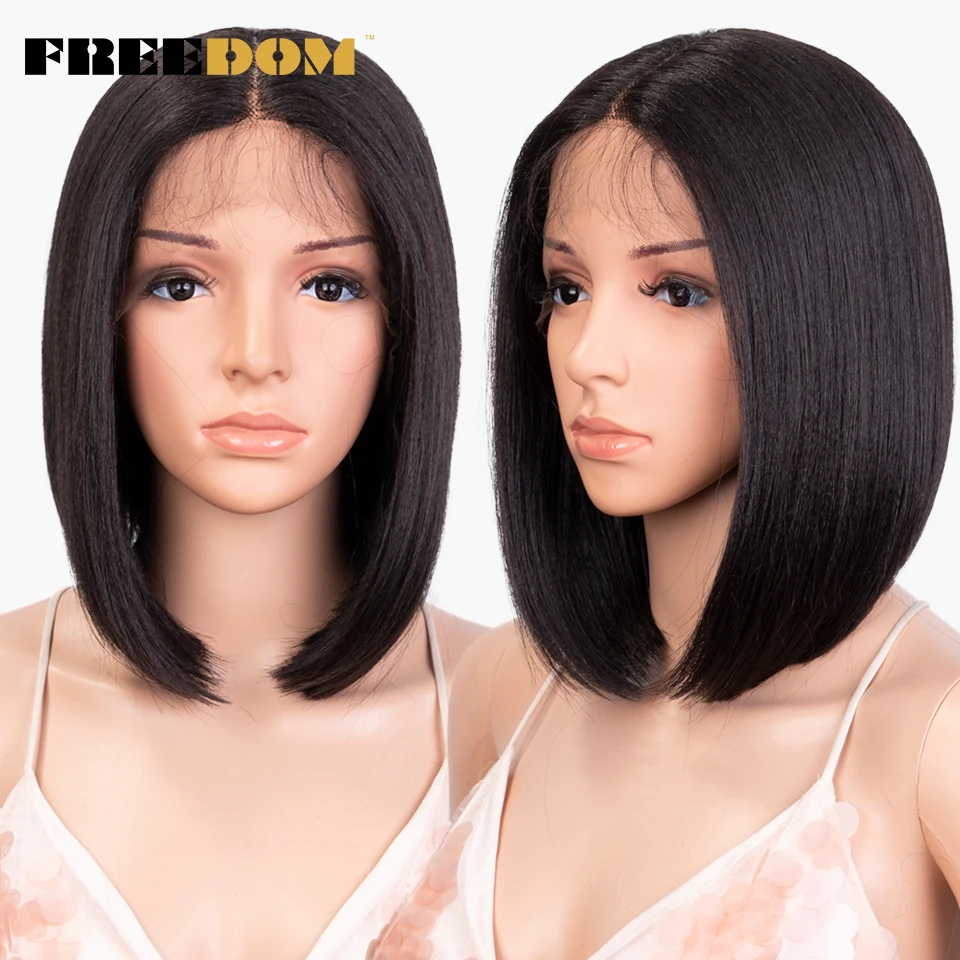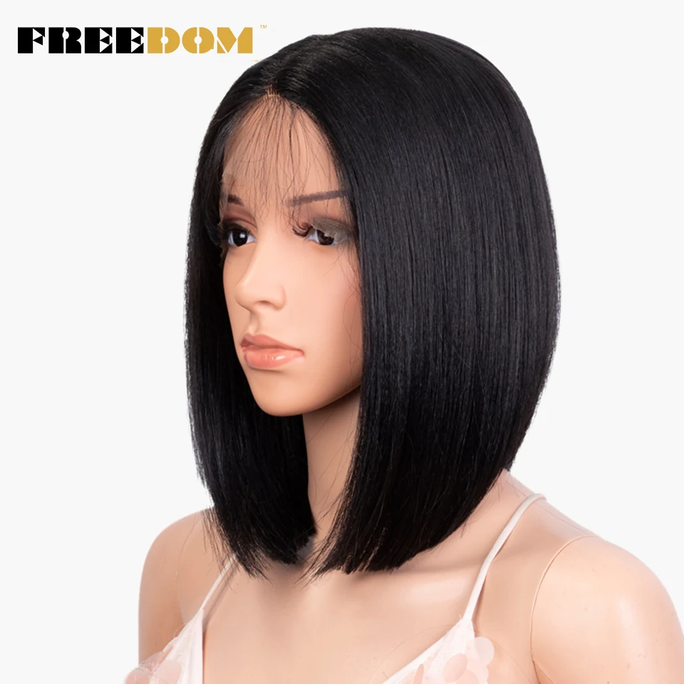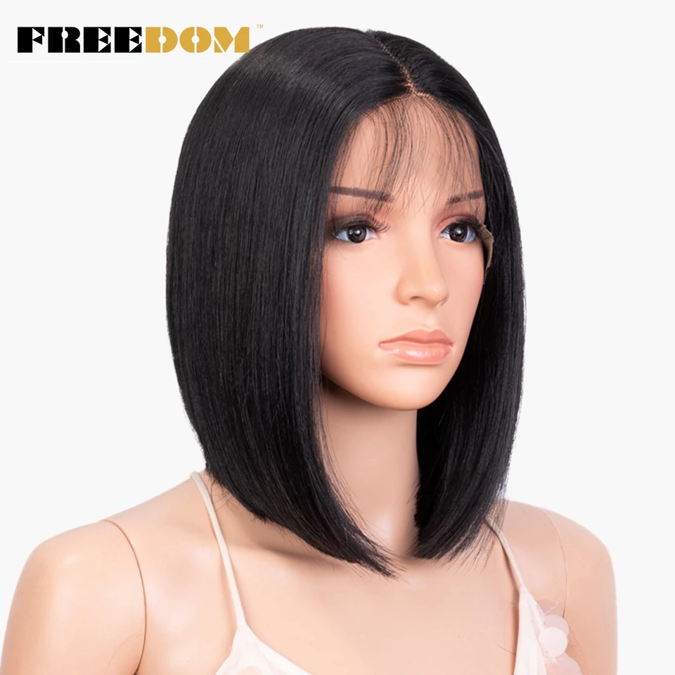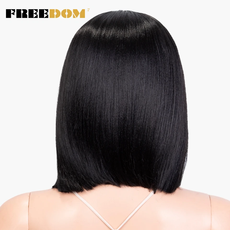 FREEDOM Synthetic Short Bob Lace Wigs 10 inch Straight Ombre Red Wig Hand tied Lace Wigs For Women Heat Resistant Cosplay Wigs