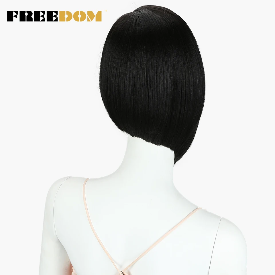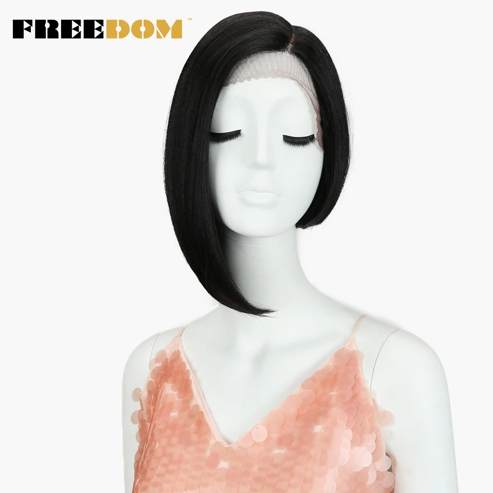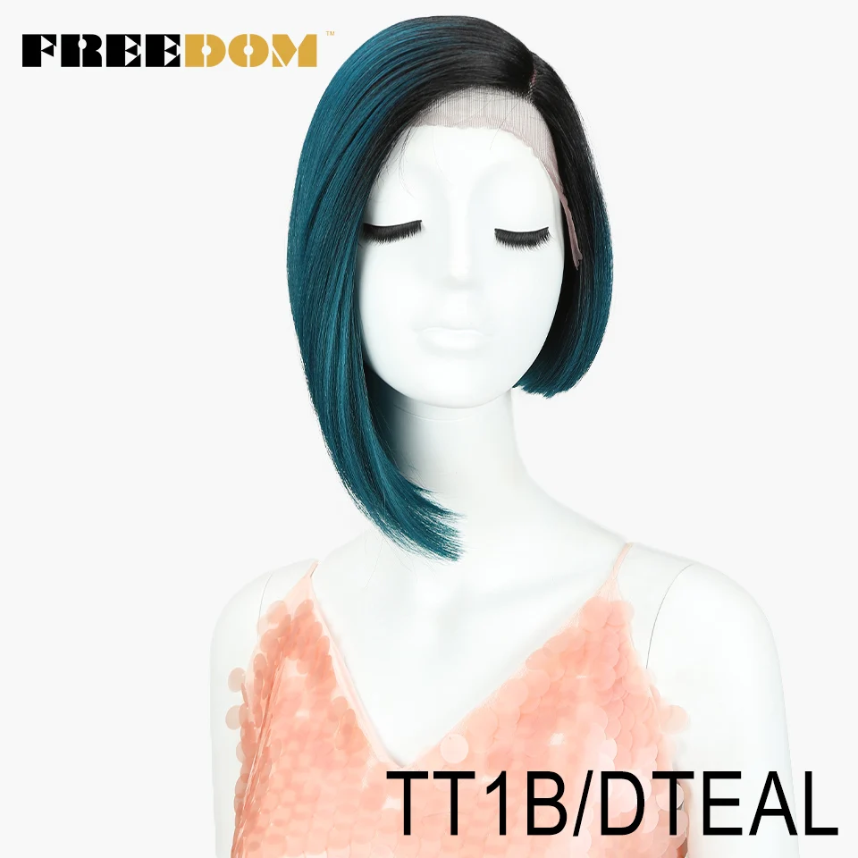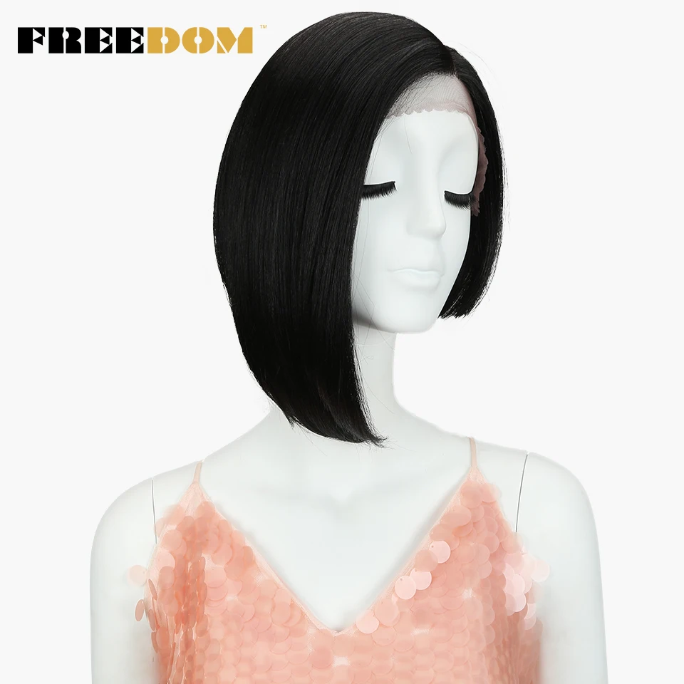 FREEDOM Synthetic Straight Short Wigs For Black Women Fashion Asymmetry Colorful Lace Wig Synthetic Hair Heat Resistant Fiber