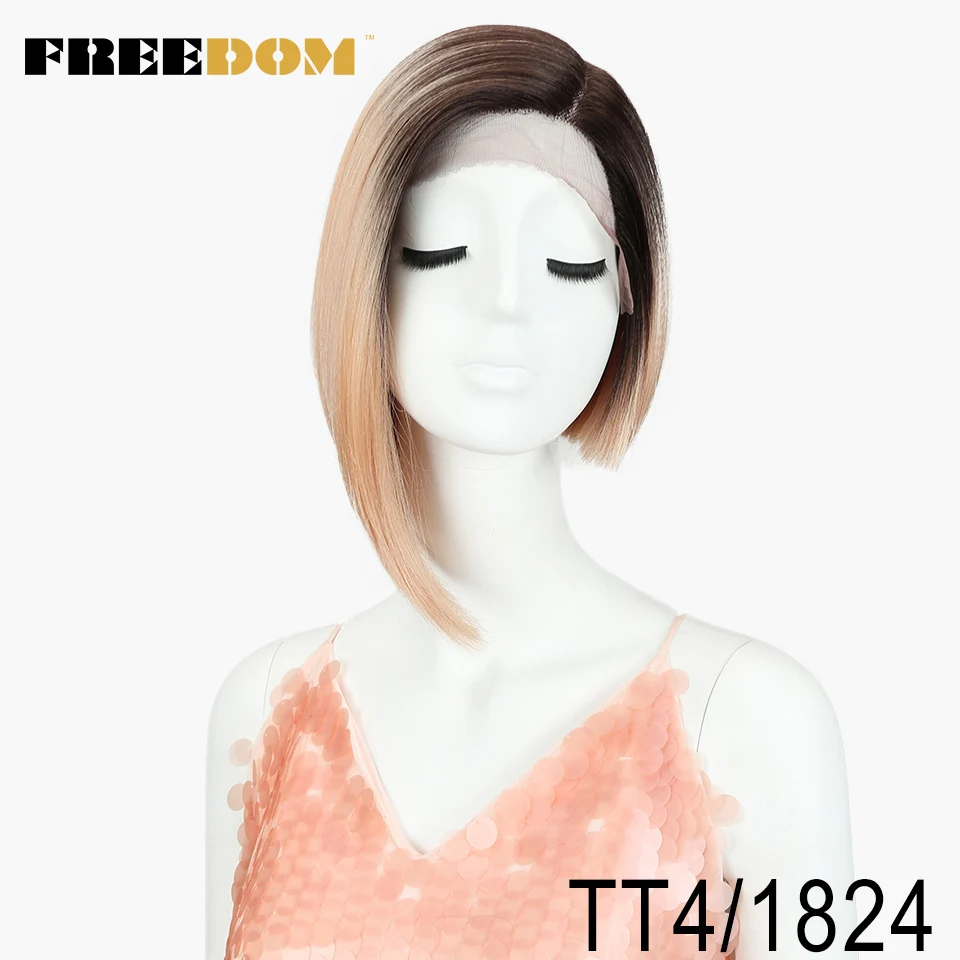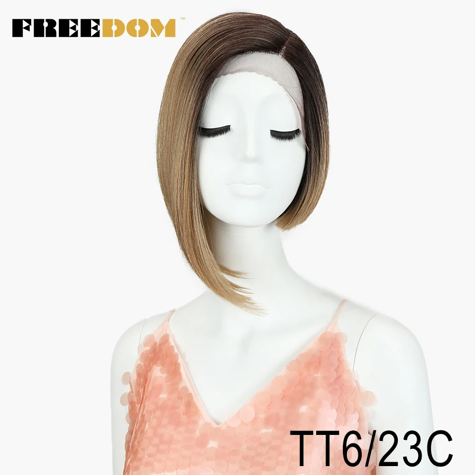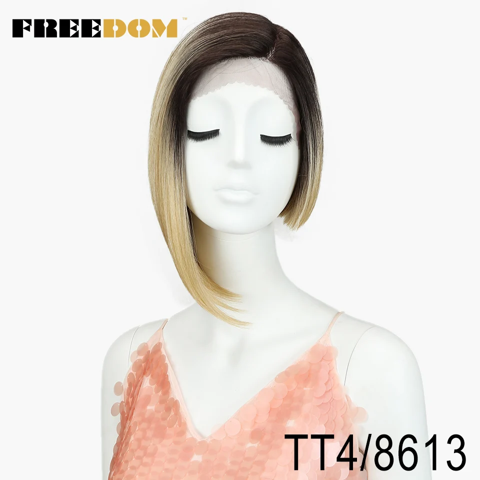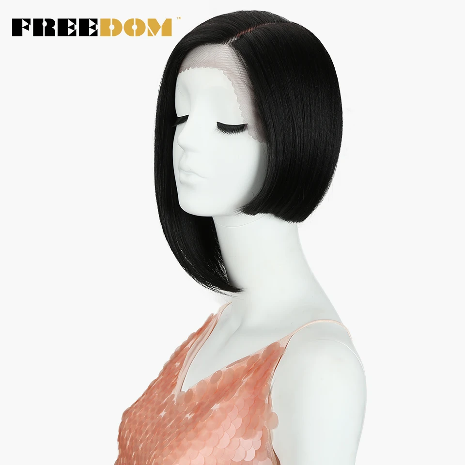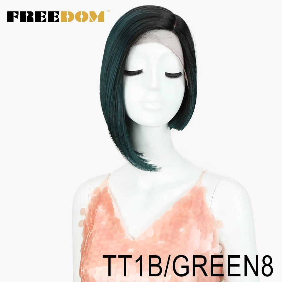 FREEDOM Synthetic Straight Short Wigs For Black Women Fashion Asymmetry Colorful Lace Wig Synthetic Hair Heat Resistant Fiber
