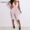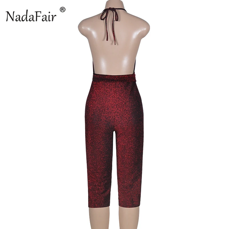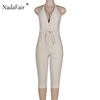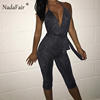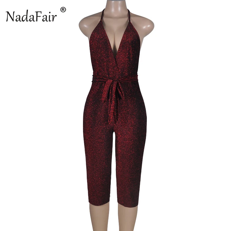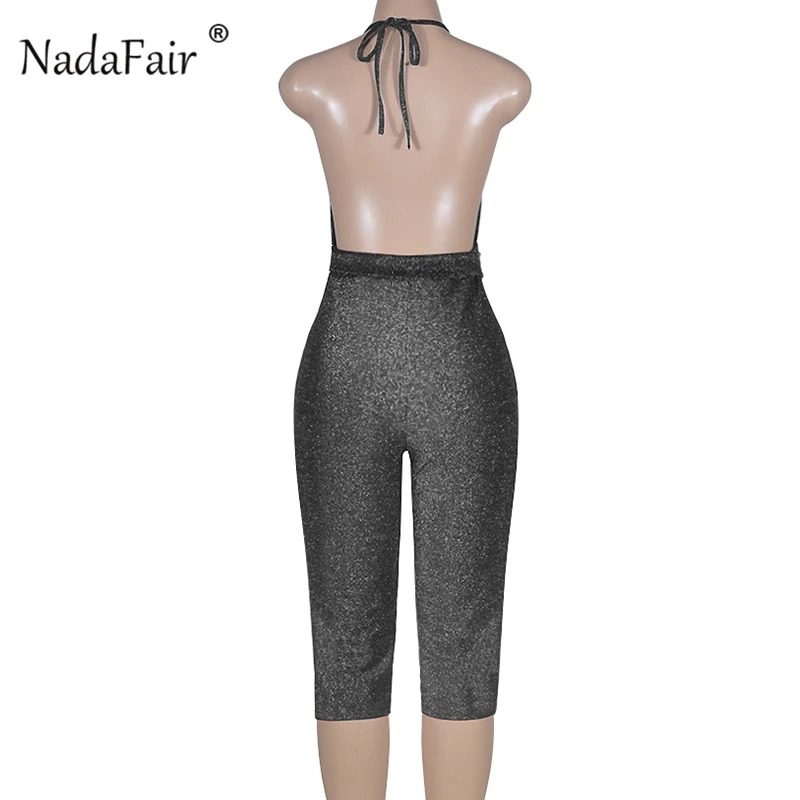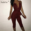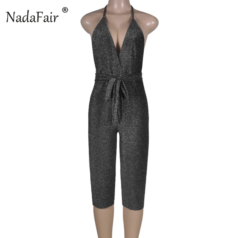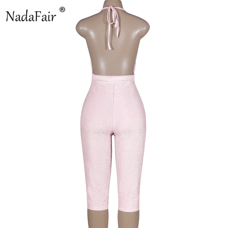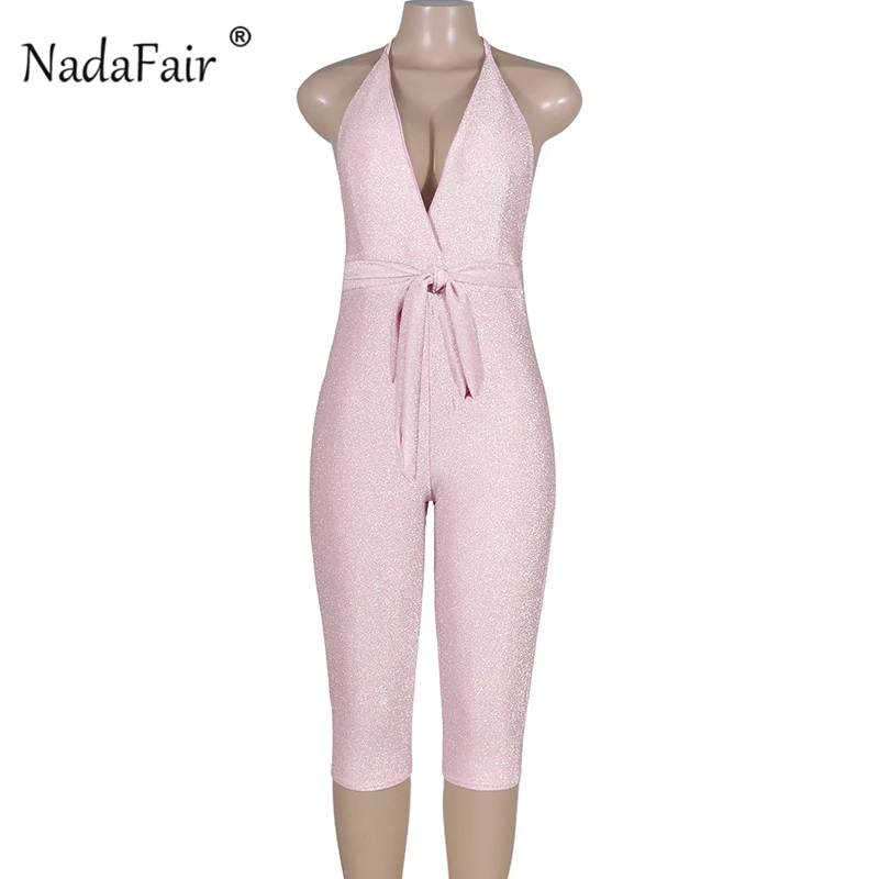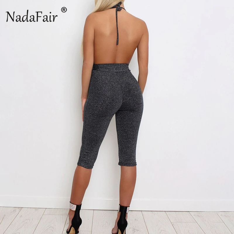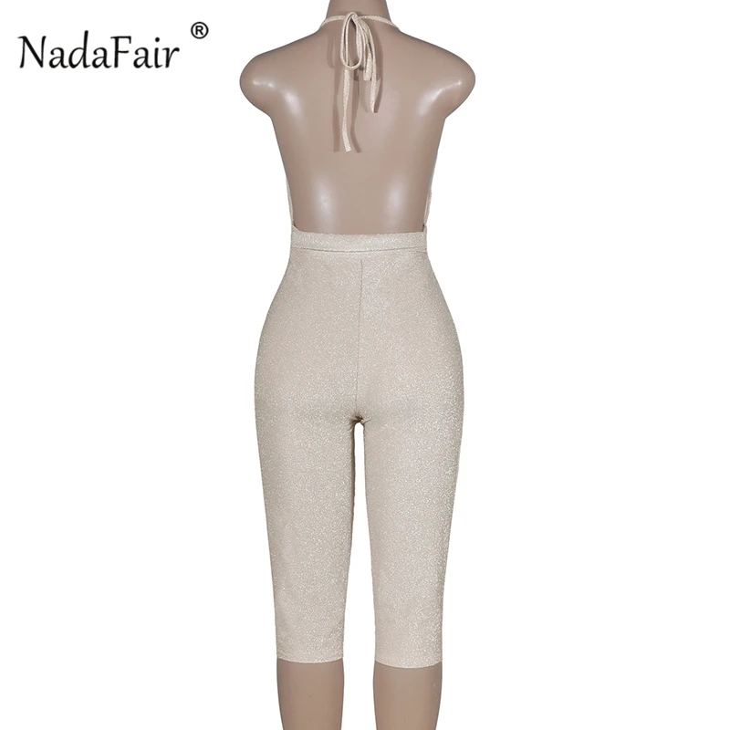 FSDA 2019 New Fashion Bodycon Summer Jumpsuit Halter Shiny V-neck Sexy Ladies Backless Sleeveless Jumpsuits Women Strapless