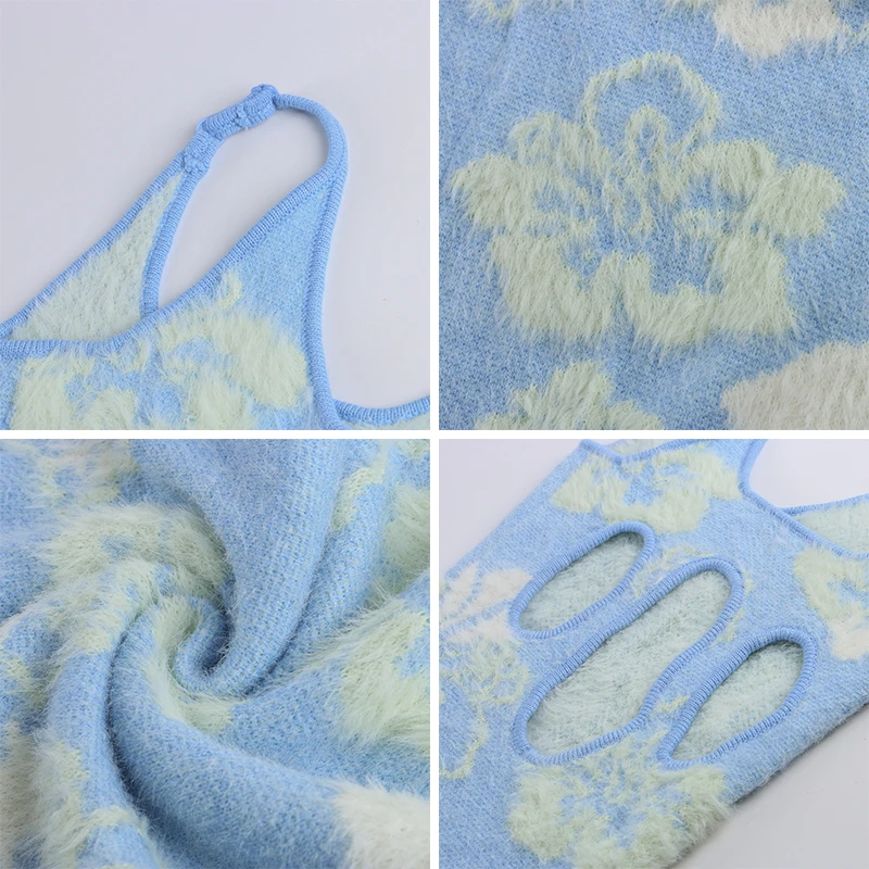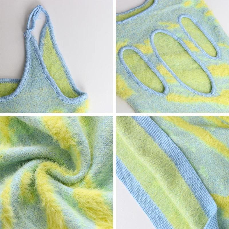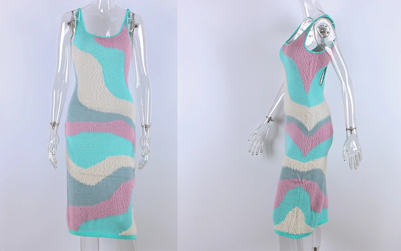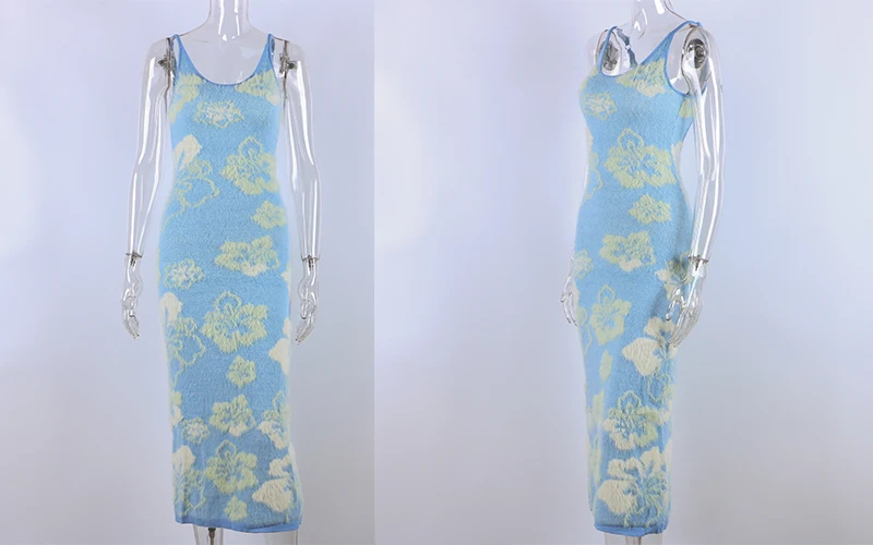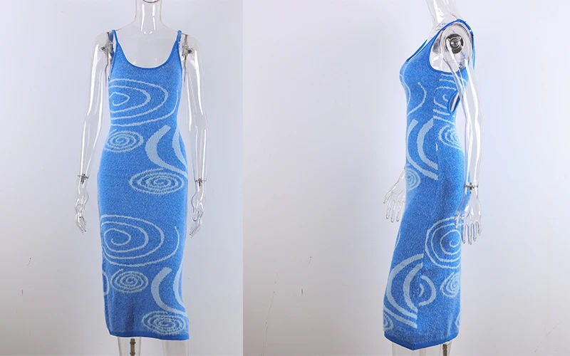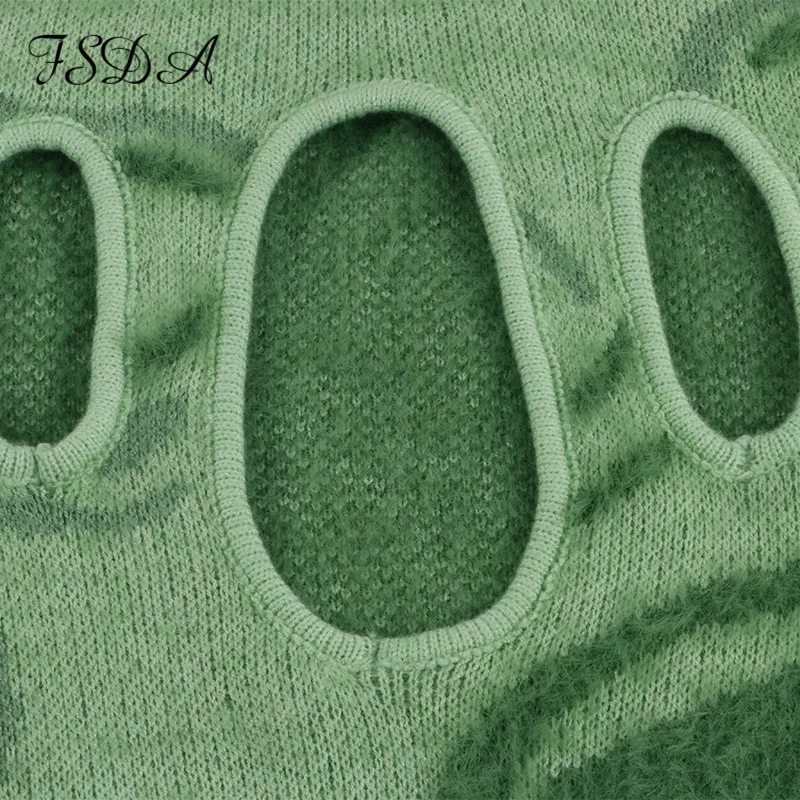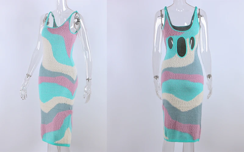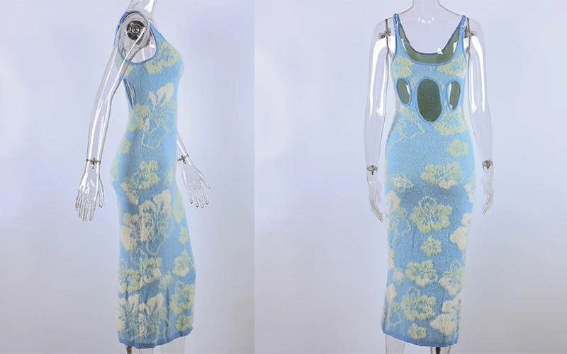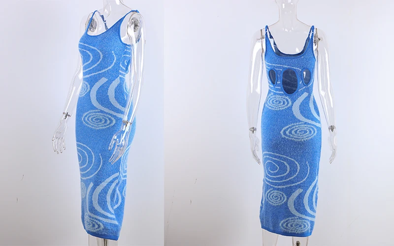 FSDA 2021 Print Knit Bodycon Dress Women Green Summer Hollow Out Sexy Sleeveless Spaghetti Strap Beach Midi Dresses Party