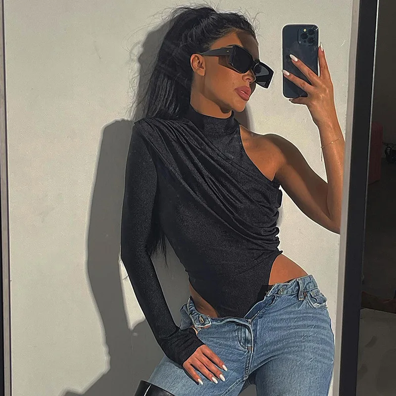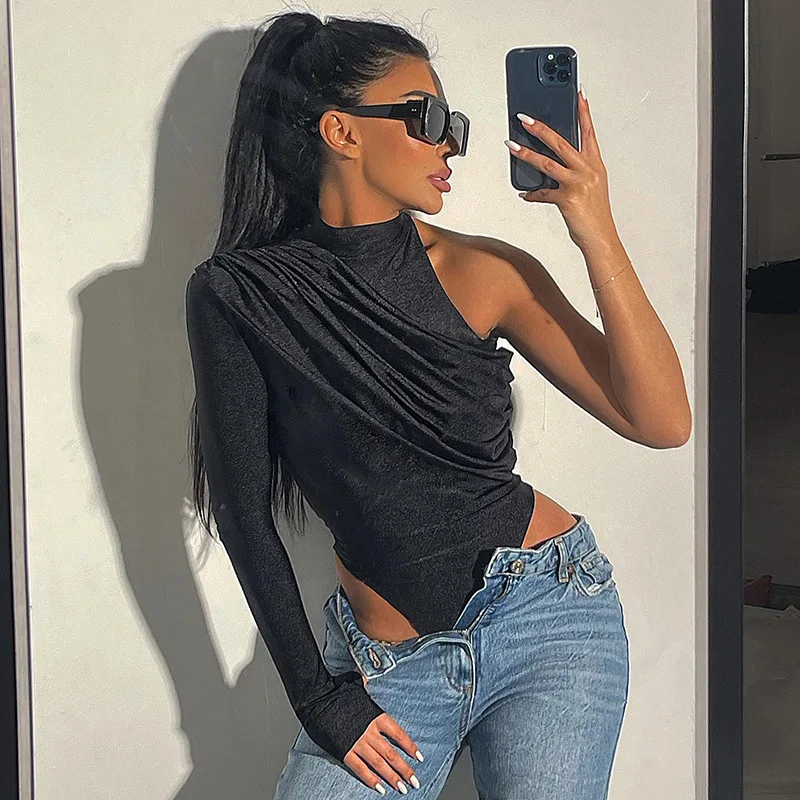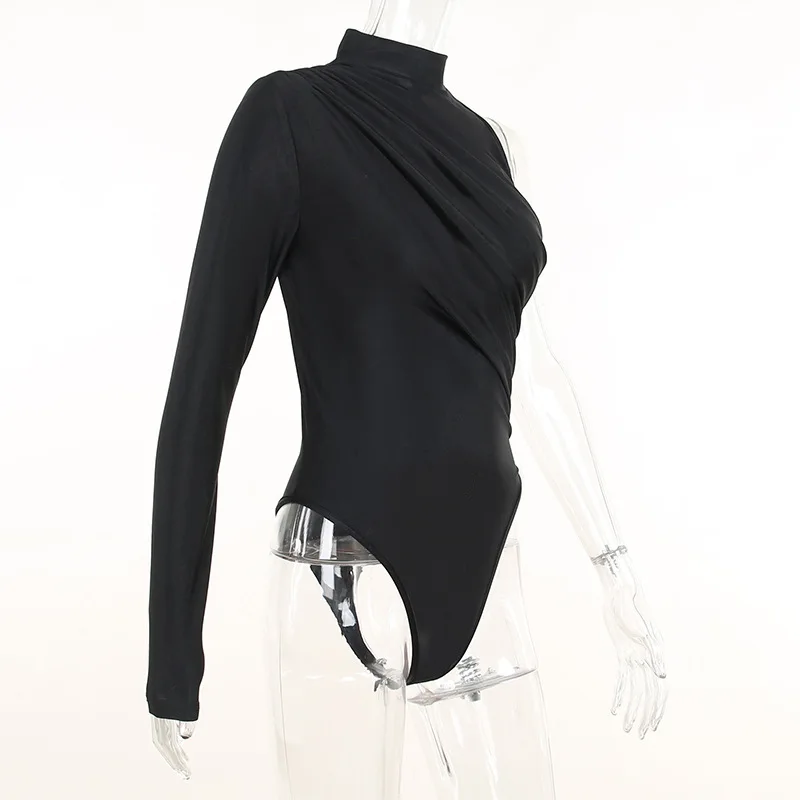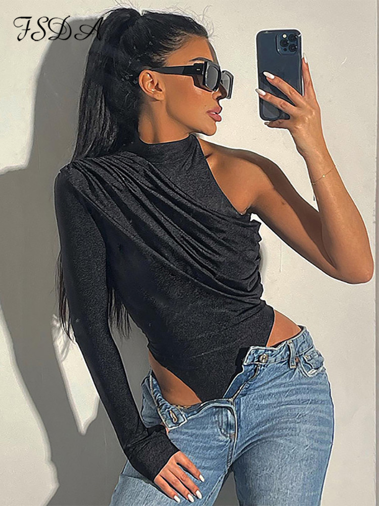 FSDA 2022 Autumn Winter One Shoulder Black Bodysuit Sexy Women Party Bodycon Body Tops Casual Jumpsuit Y2K