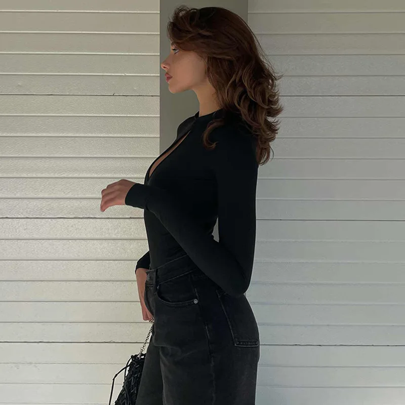 FSDA 2022 Cut Out Women Bodysuit Black Sexy Long Sleeve Y2K Body Tops Autumn Winter Party Jumpsuit Casual White
