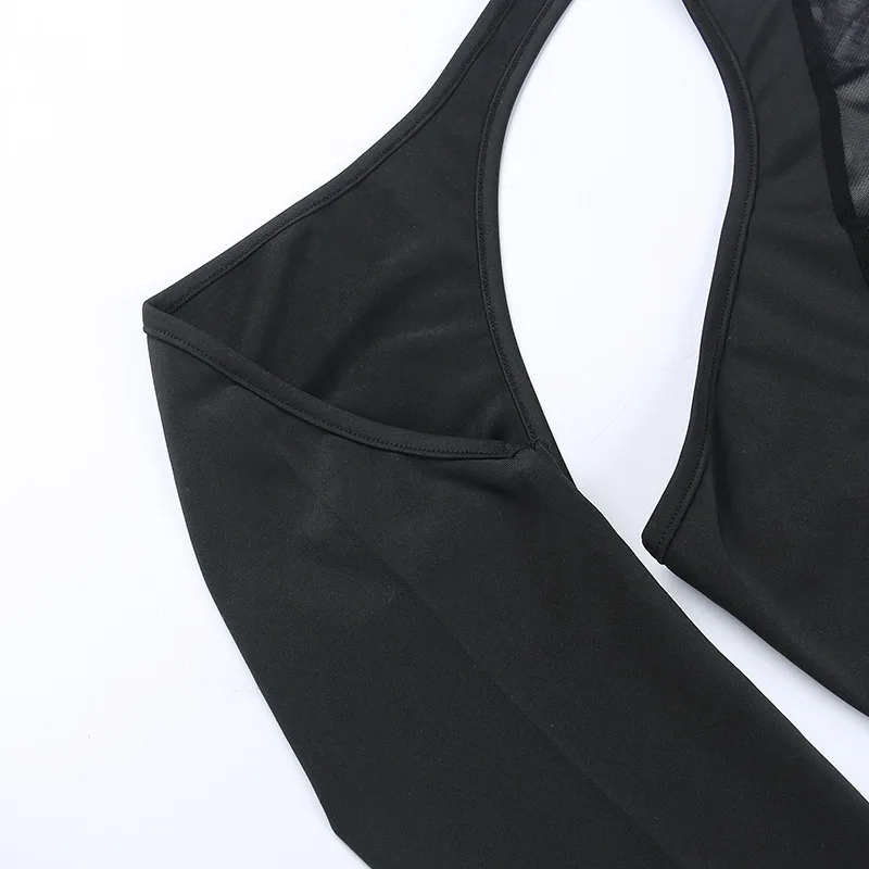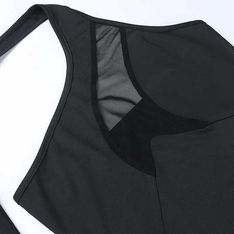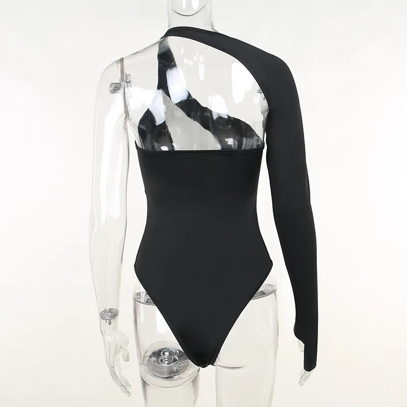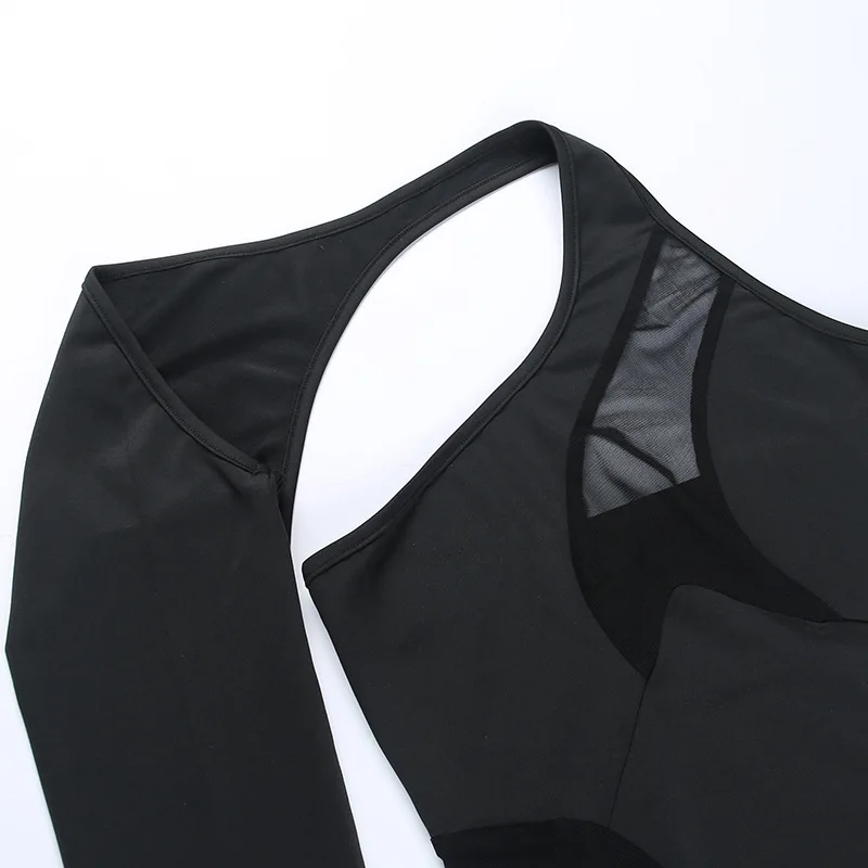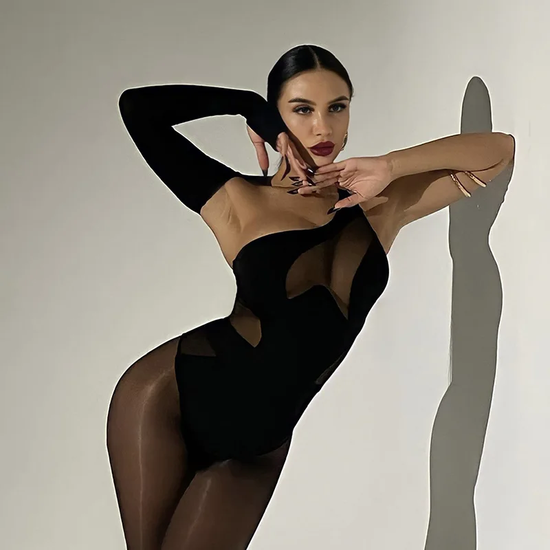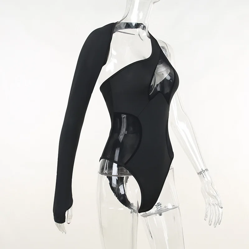 FSDA 2022 See Through Black Bodysuit Sexy One Shoulder Mesh Autumn Y2K Bodycon Body Tops Party Jumpsuit Backless