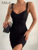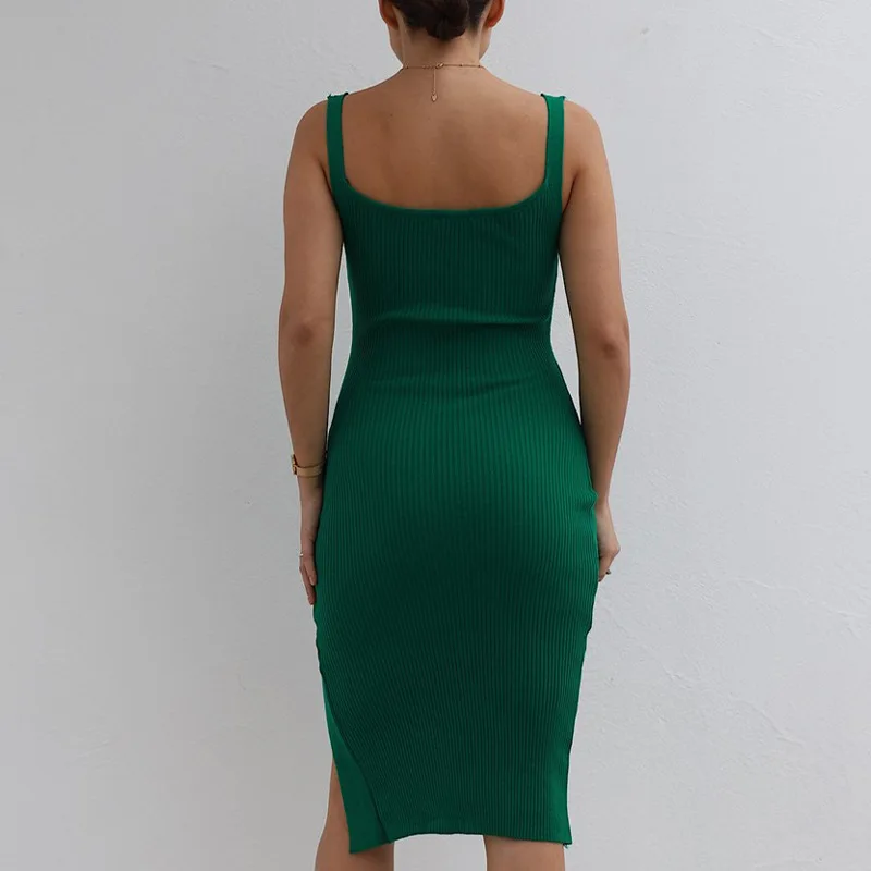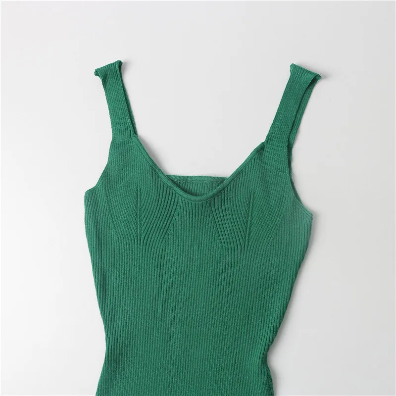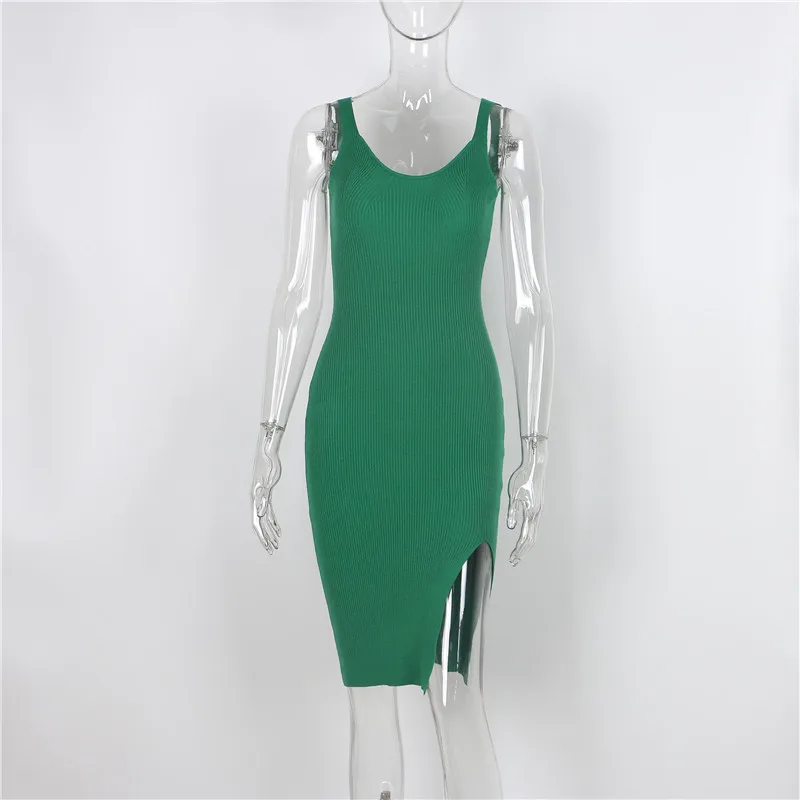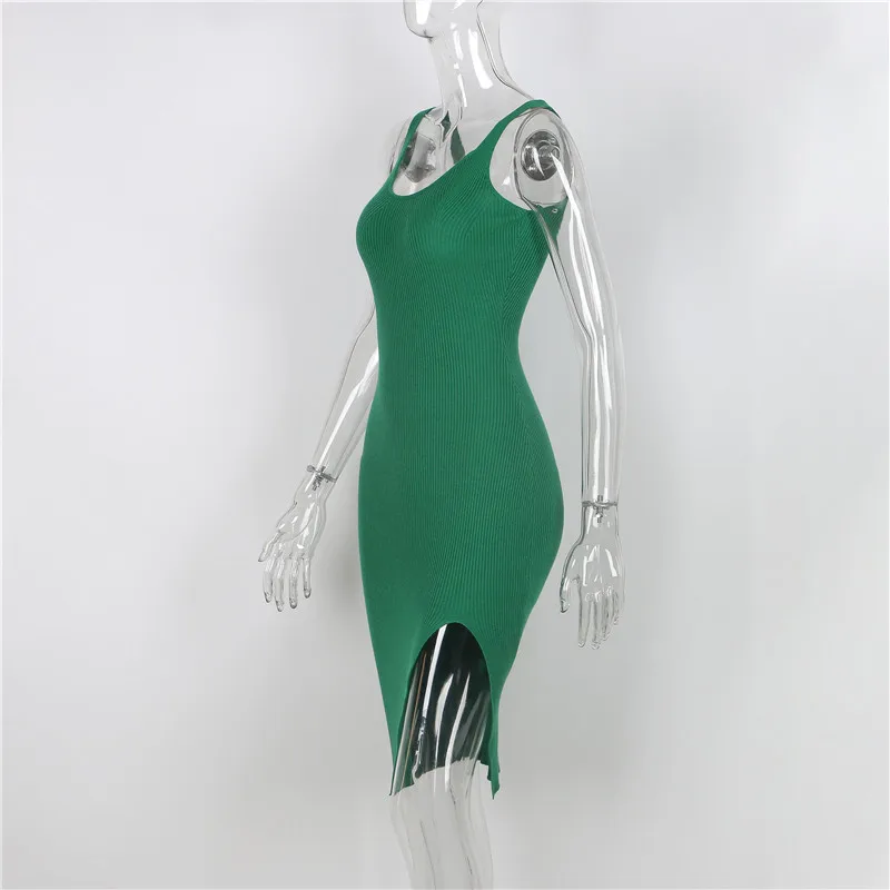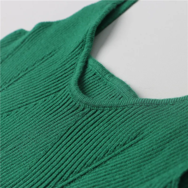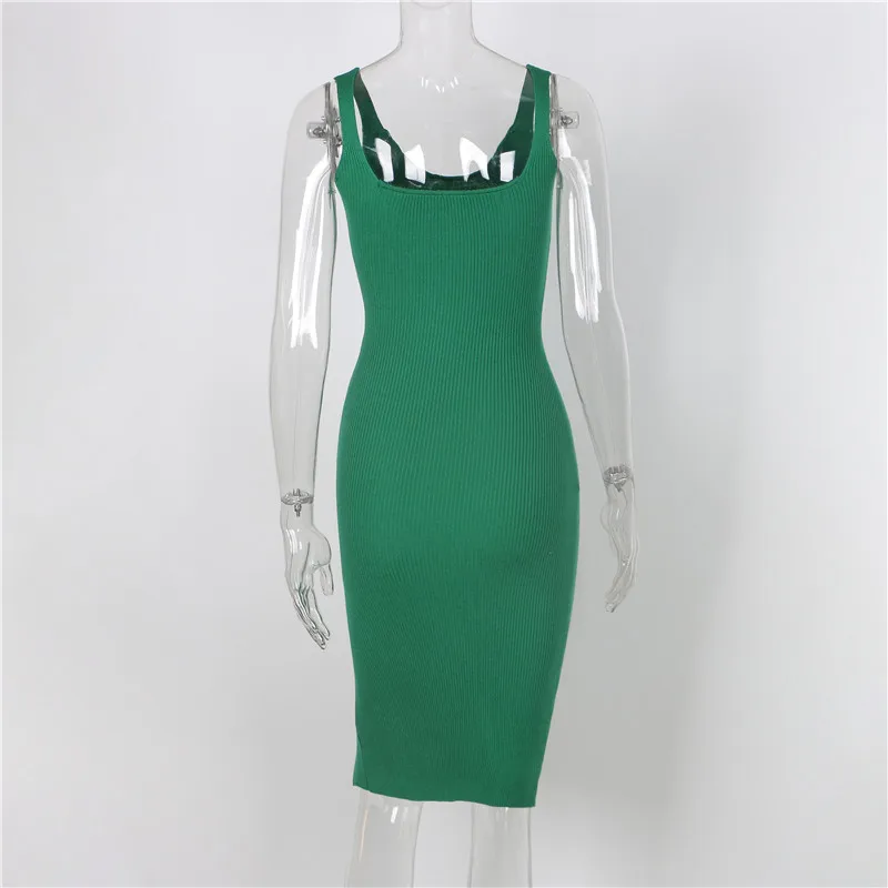 FSDA 2022 Summer Green Midi Bodycon Dress Knitted Sleeveless Backless Black Y2K Off Shoulder Party Dresses Beach Sexy Club