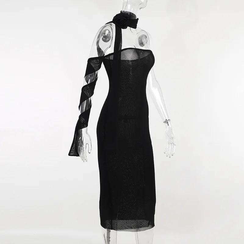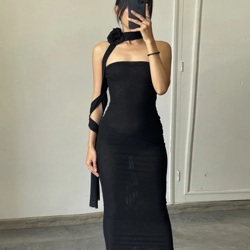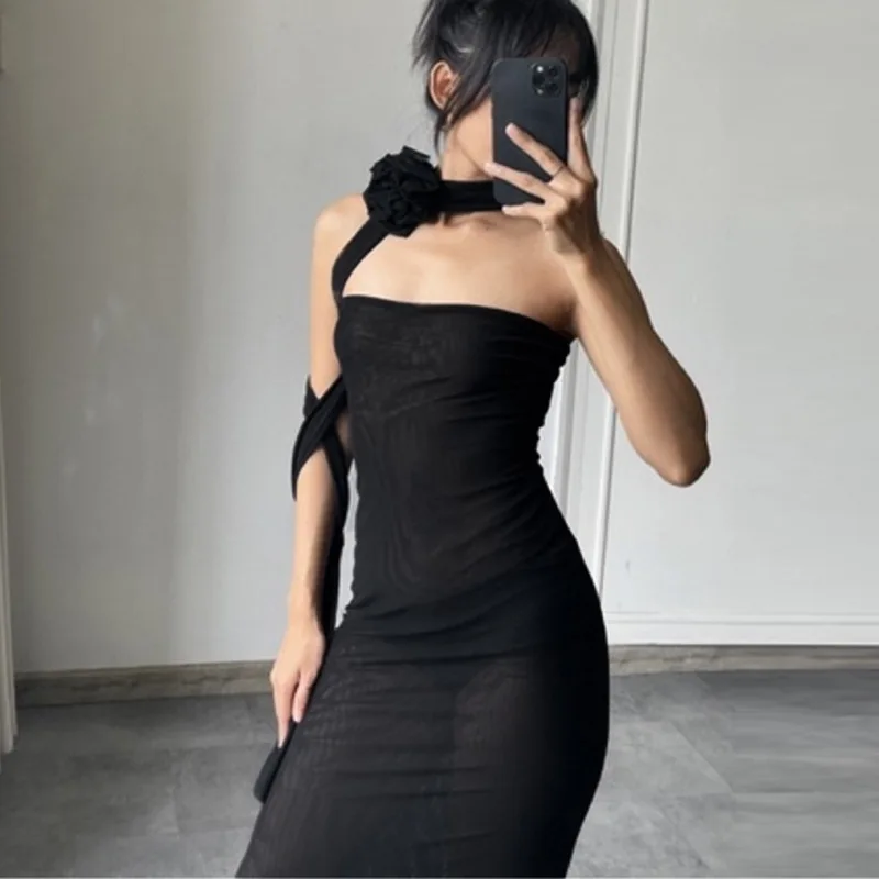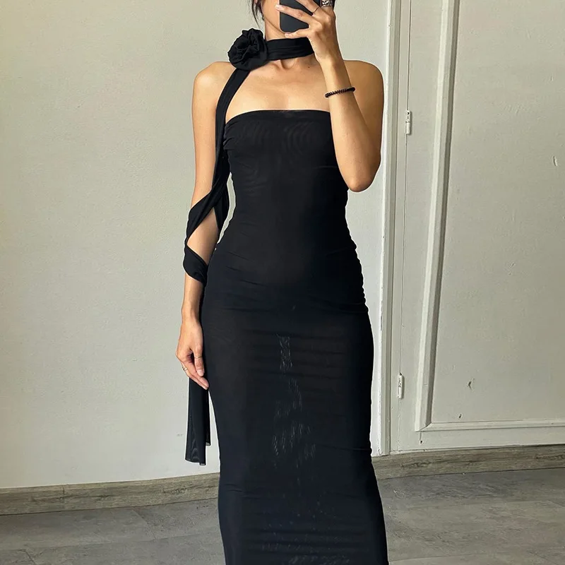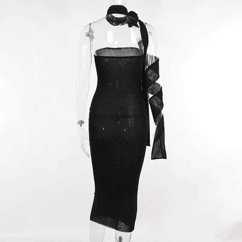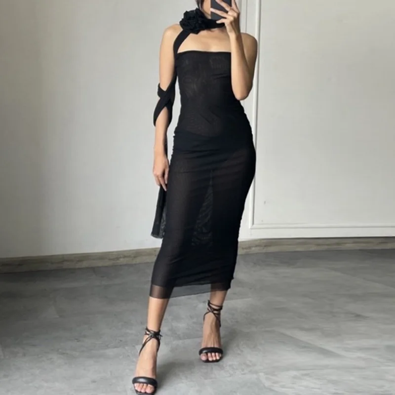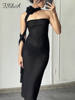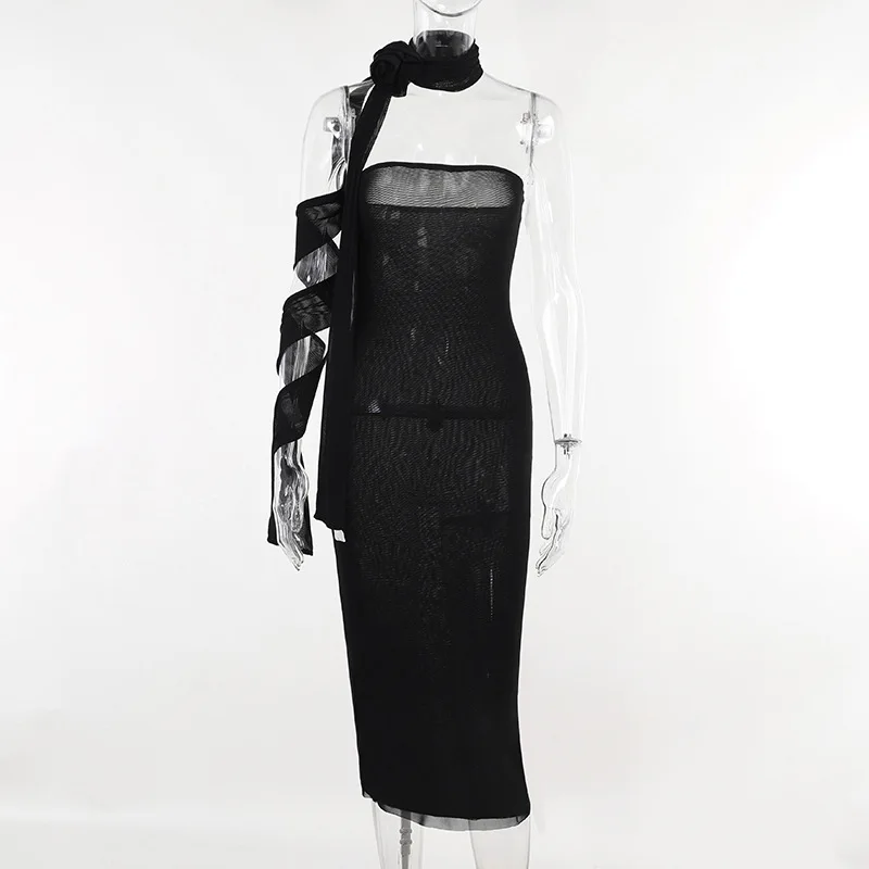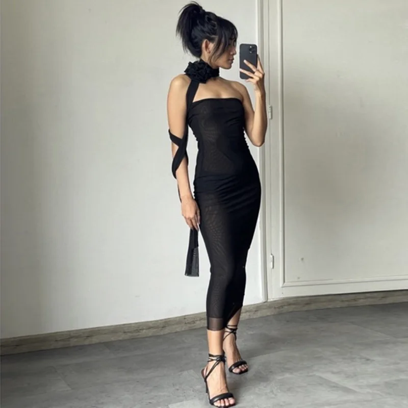 FSDA 2022 Summer Mesh Strapless Party Dress Women Black Sleeveless Midi Bodycon Dresses Elegant Sexy Club Fashion Outfist