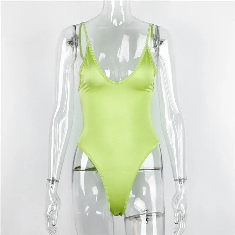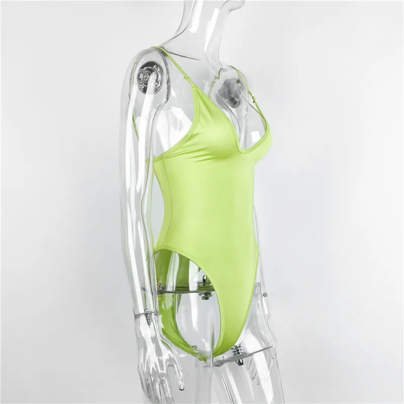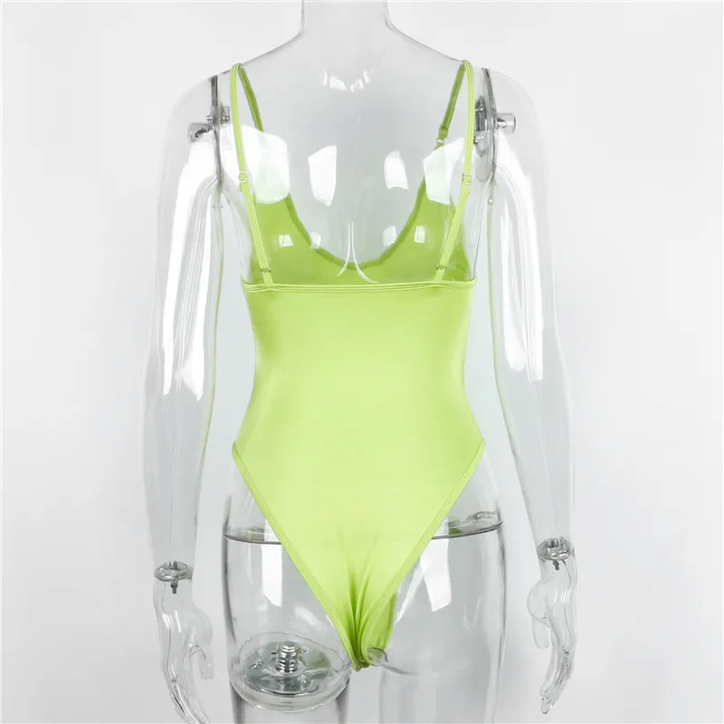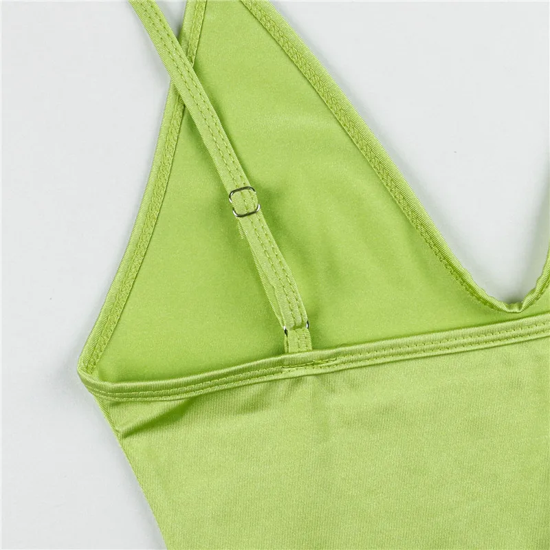 FSDA 2022 Y2K Green V Neck Black Bodysuit Women Sleeveless Backless Body Tops Sexy Beach One Pieces Black Outfits
