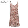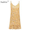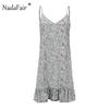 FSDA Beach Floral Print Spaghetti Strap Summer Dress V Neck Backless Ruffles Mini Dresses