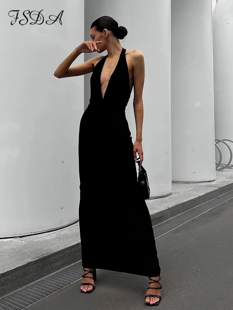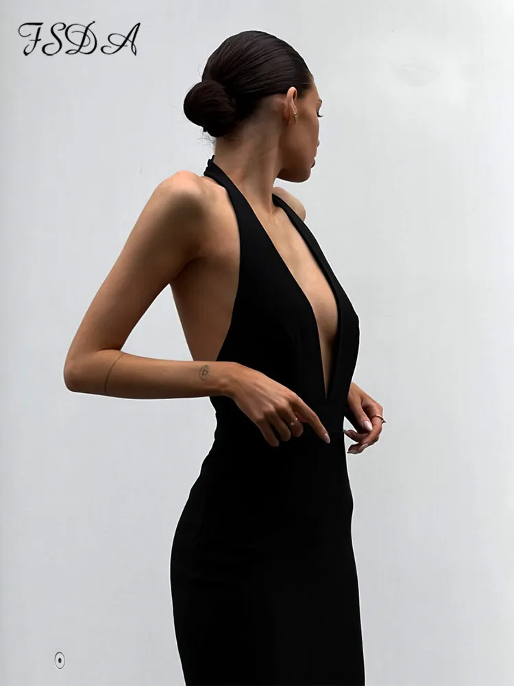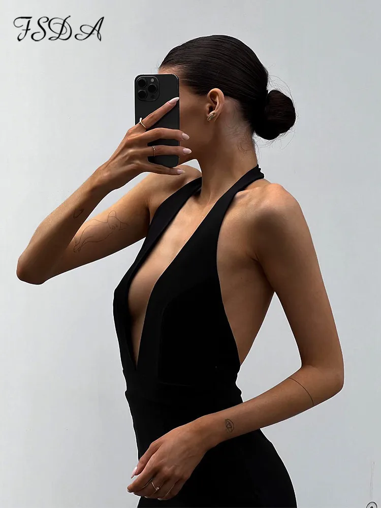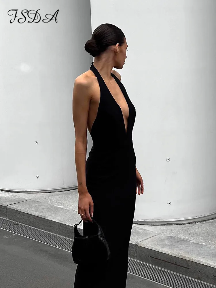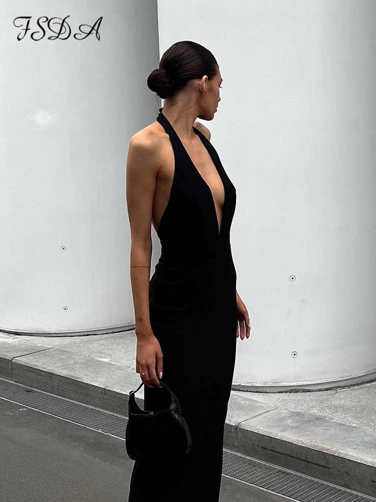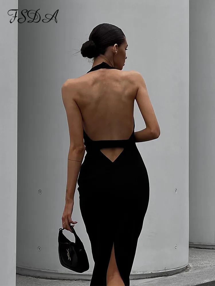 FSDA Black Sexy Bodycon Dress Women Midi Halter Neck Summer Backless Split Elegant Dresses Party Sleeveless 2022 Club
