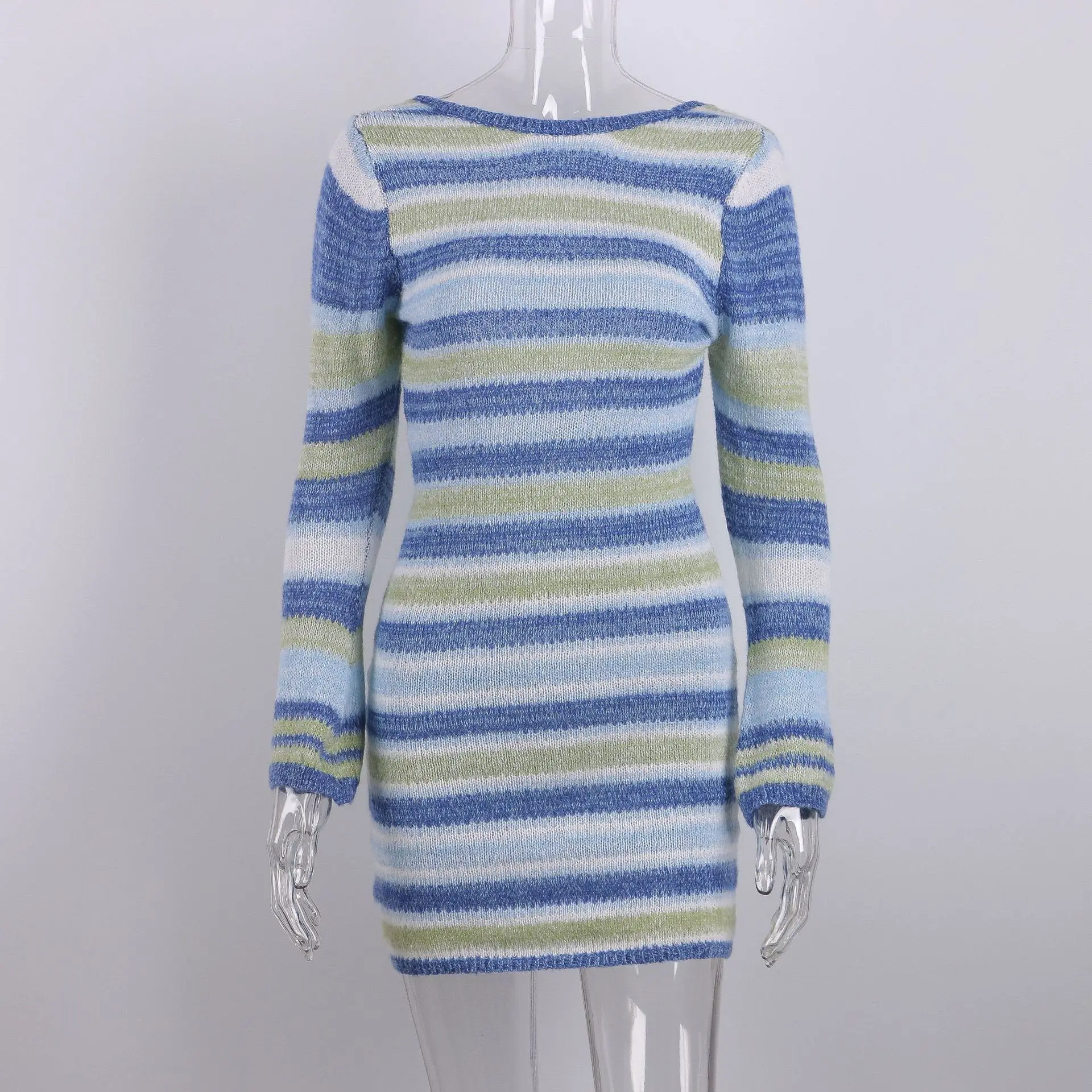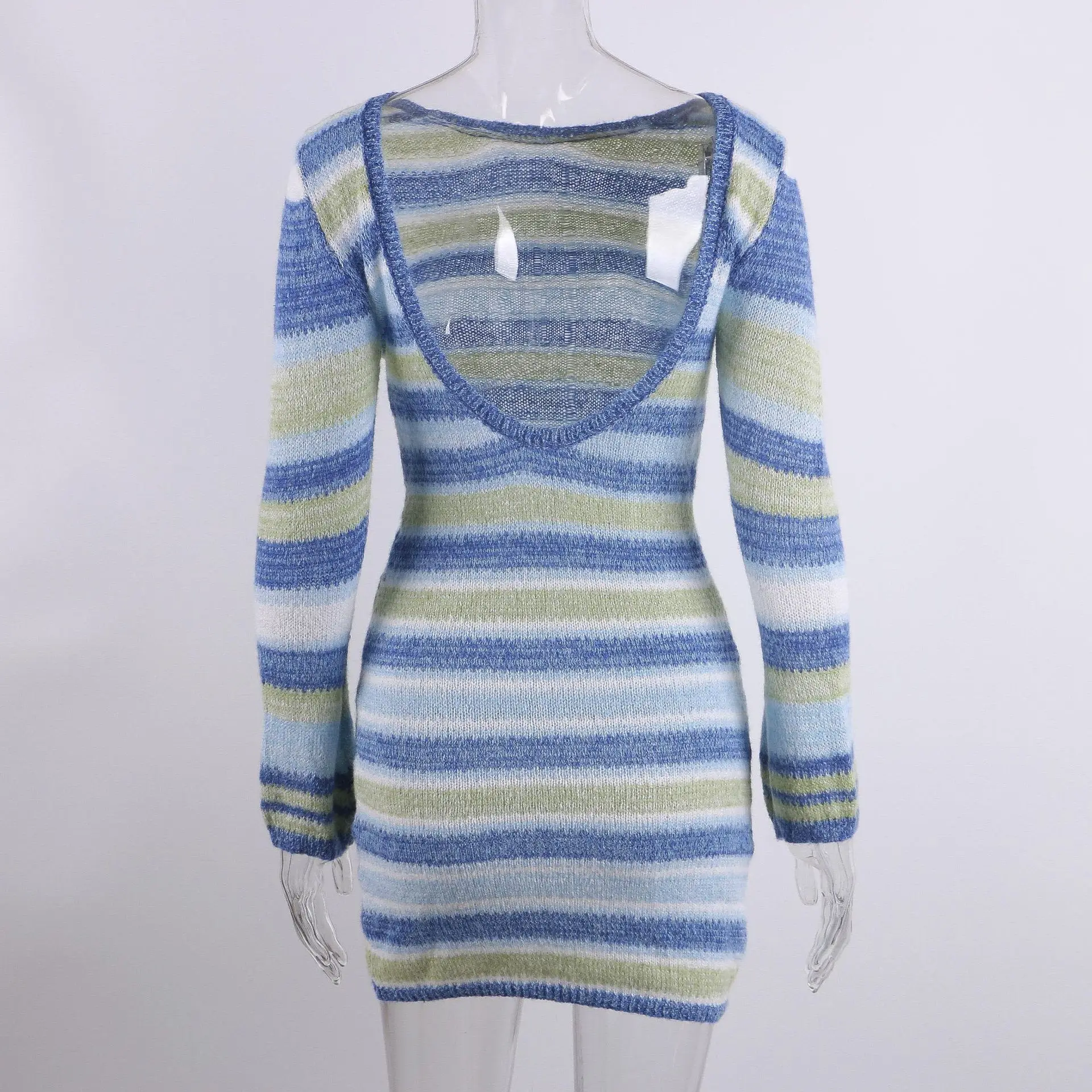FSDA Blue Sexy Knitted Backless Dress Mini Bodycon Y2K Long Sleeve 2022 Women Party Dresses Beach Club Summer Outfits