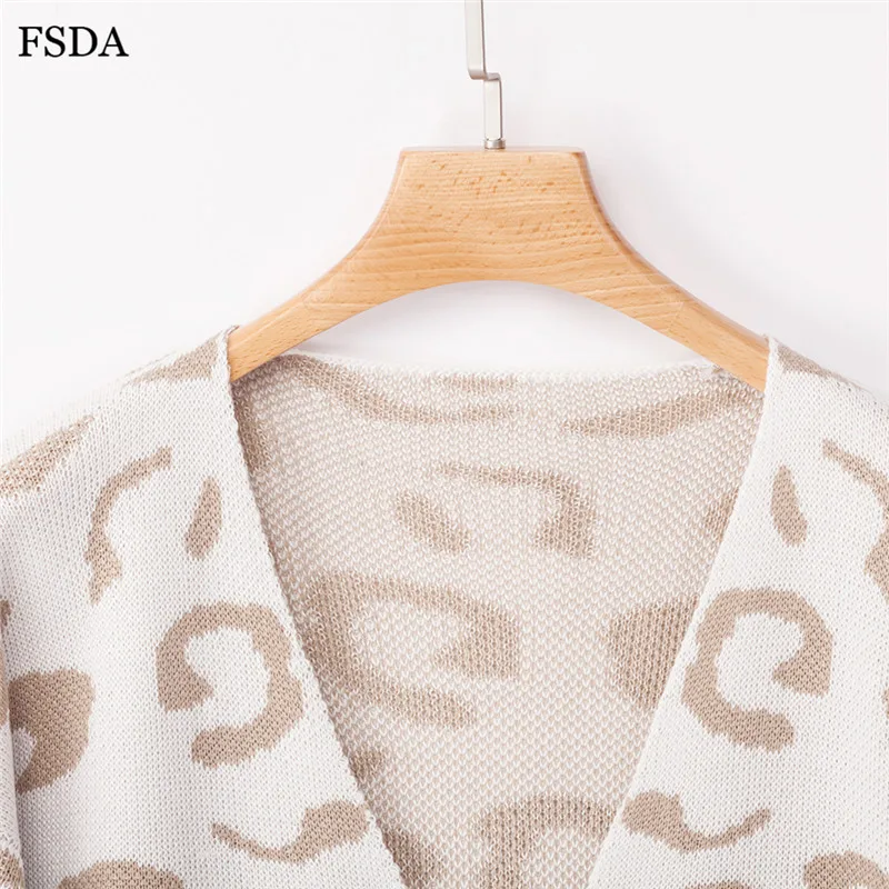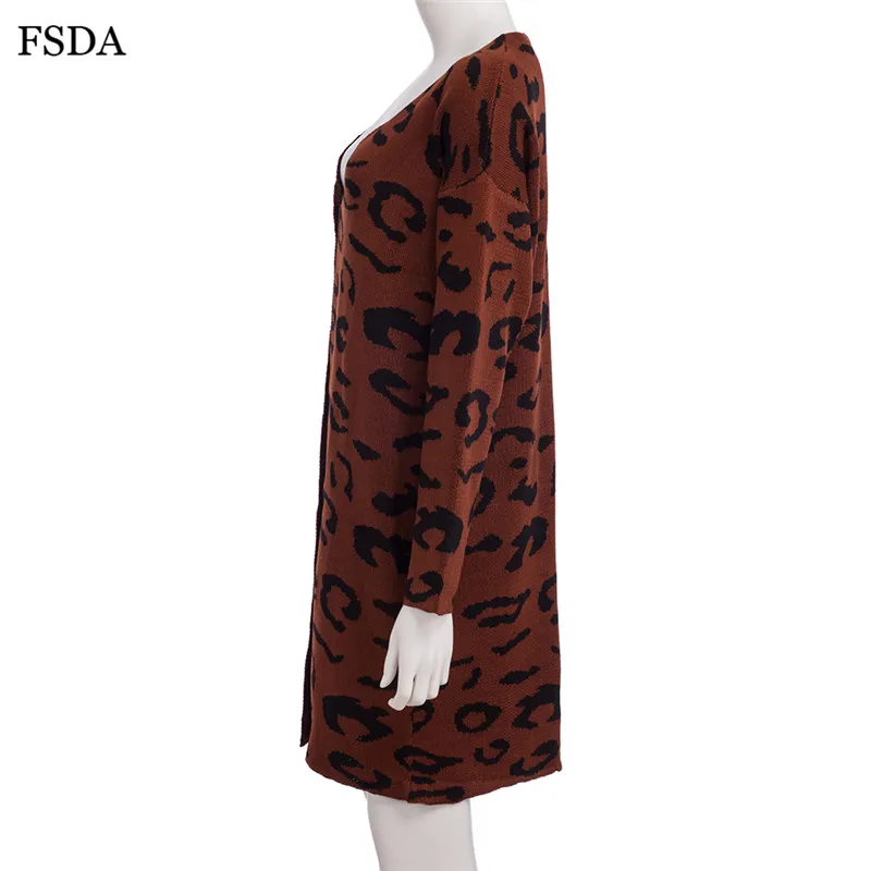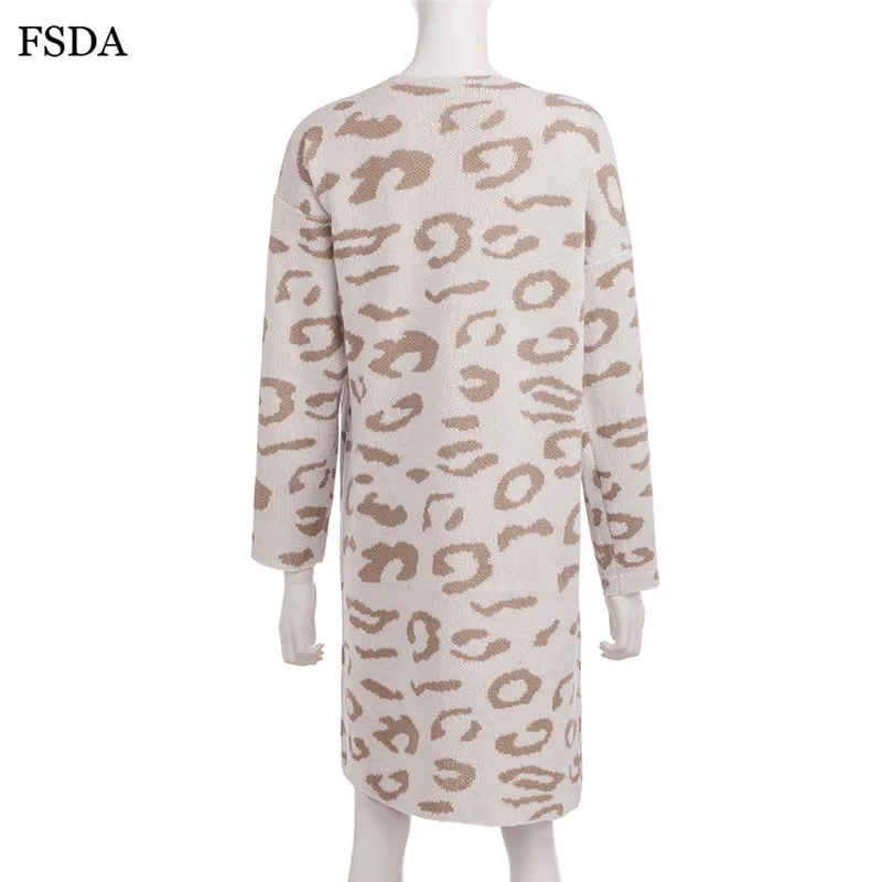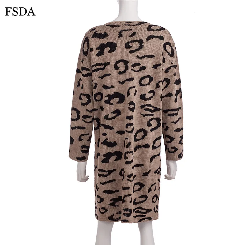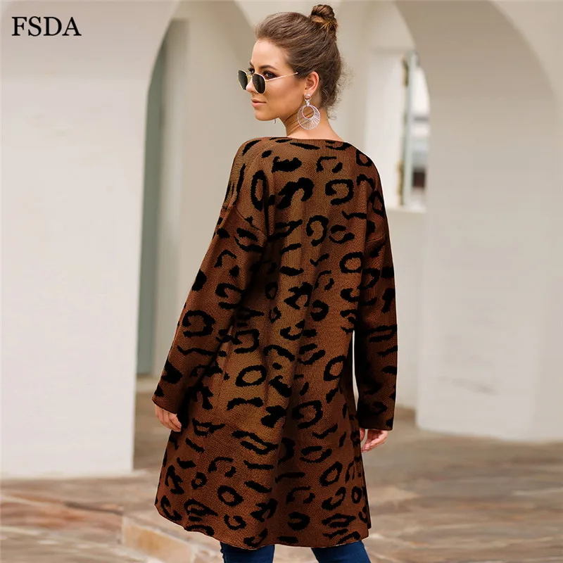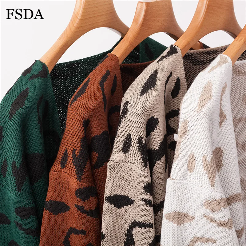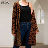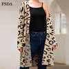 FSDA Leopard Print Loose Knitted Long Spring Winter Cardigan Plus Size Long Sleeve Elegant Women Sweater Casual