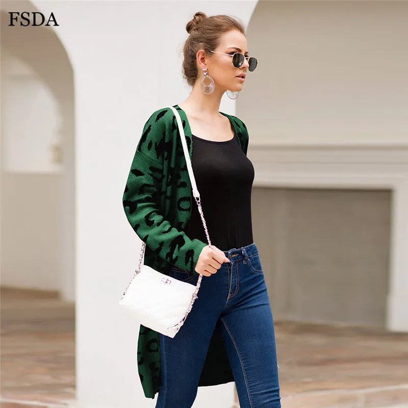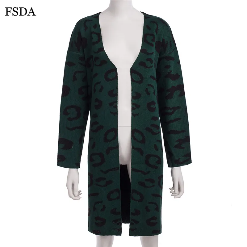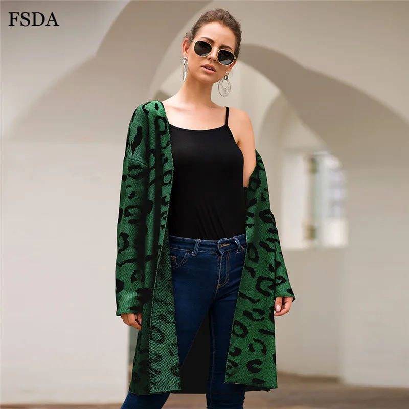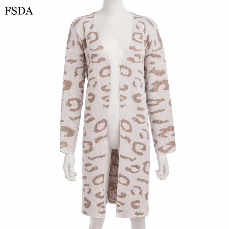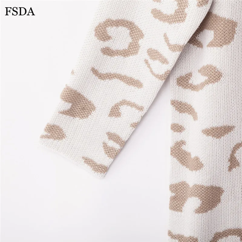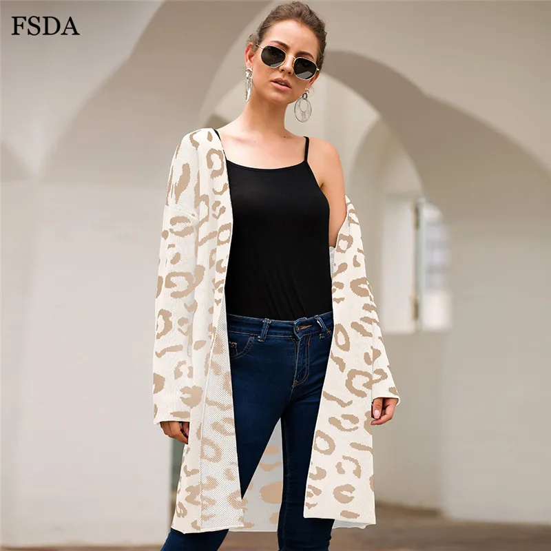 FSDA Leopard Print Loose Knitted Long Spring Winter Cardigan Plus Size Long Sleeve Elegant Women Sweater Casual