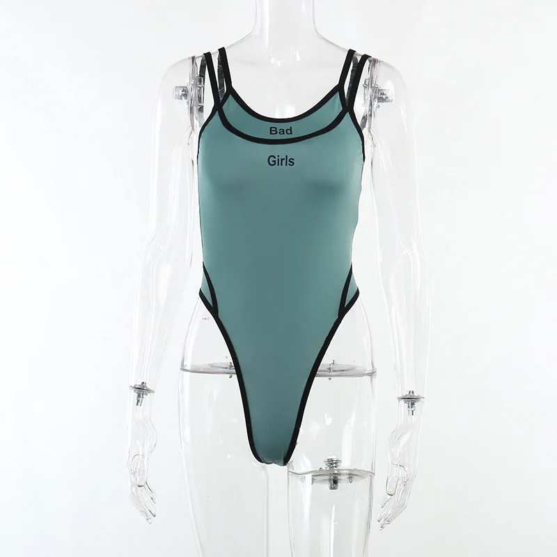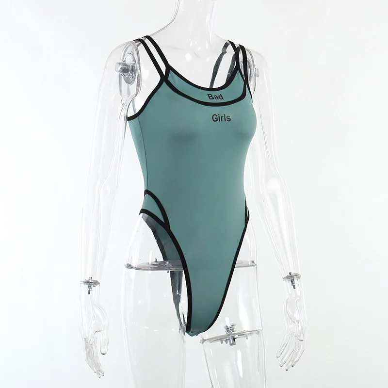 FSDA Letter Print Spaghetti Strap Sleeveless Bodysuit Summer Sexy Casual Skinny Backless Body Romper Women Club Party