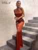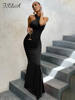 FSDA Maxi Green Satin Sleeveless Elegant Party Dresses Backless 2022 Summer Black Off Shoulder Sexy Club Bodycon Dress Women