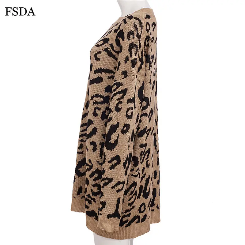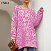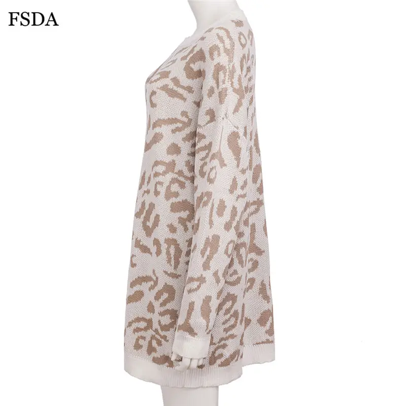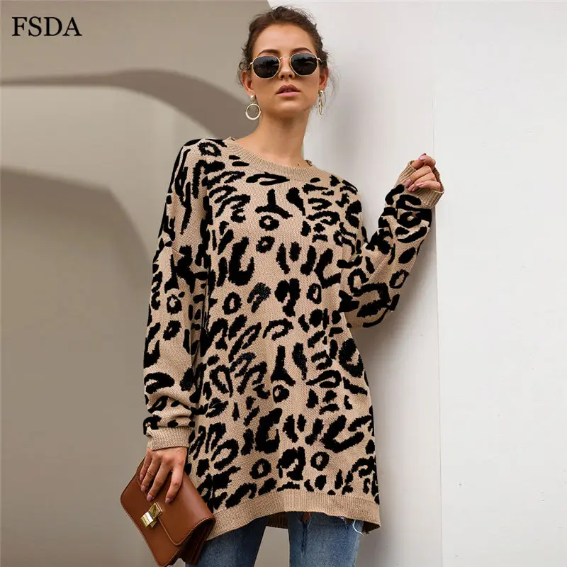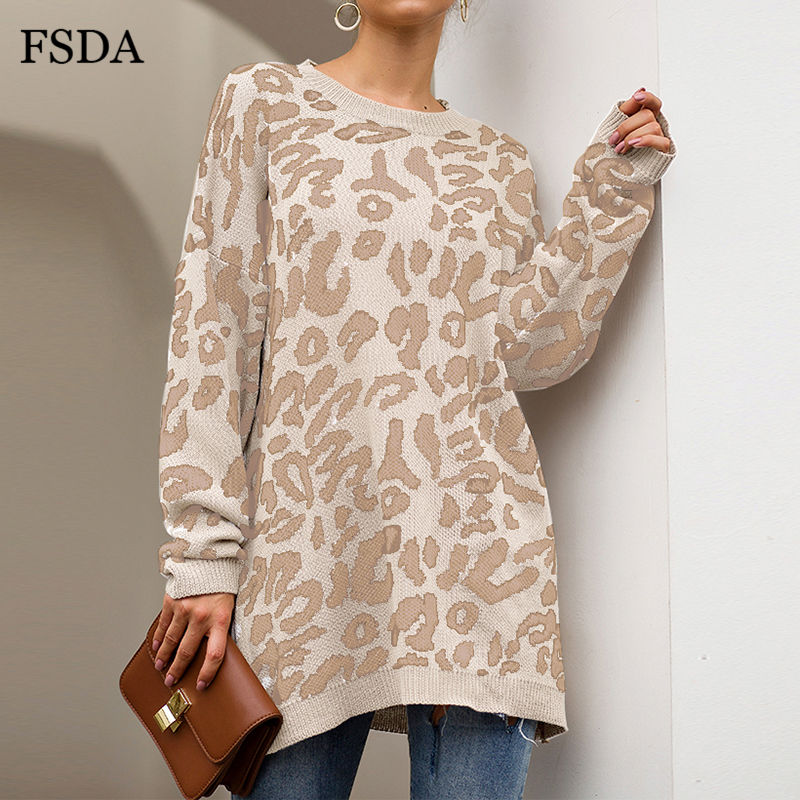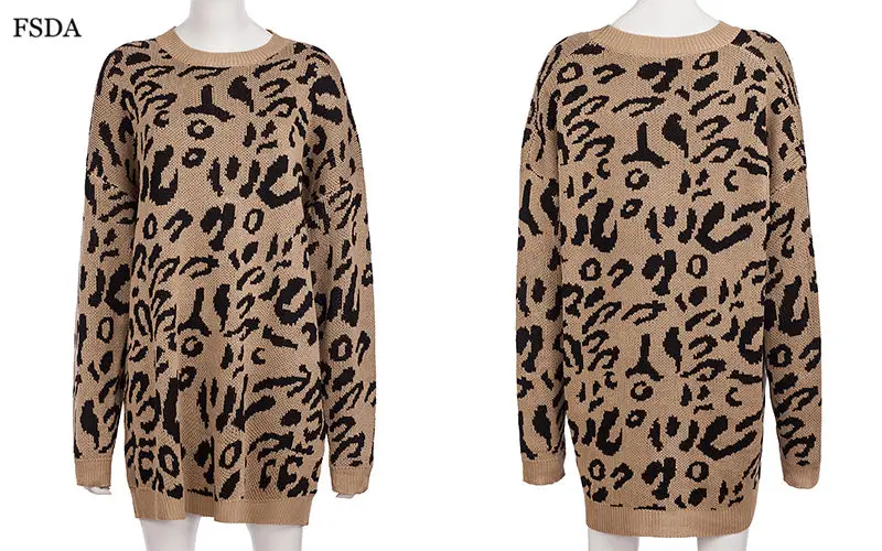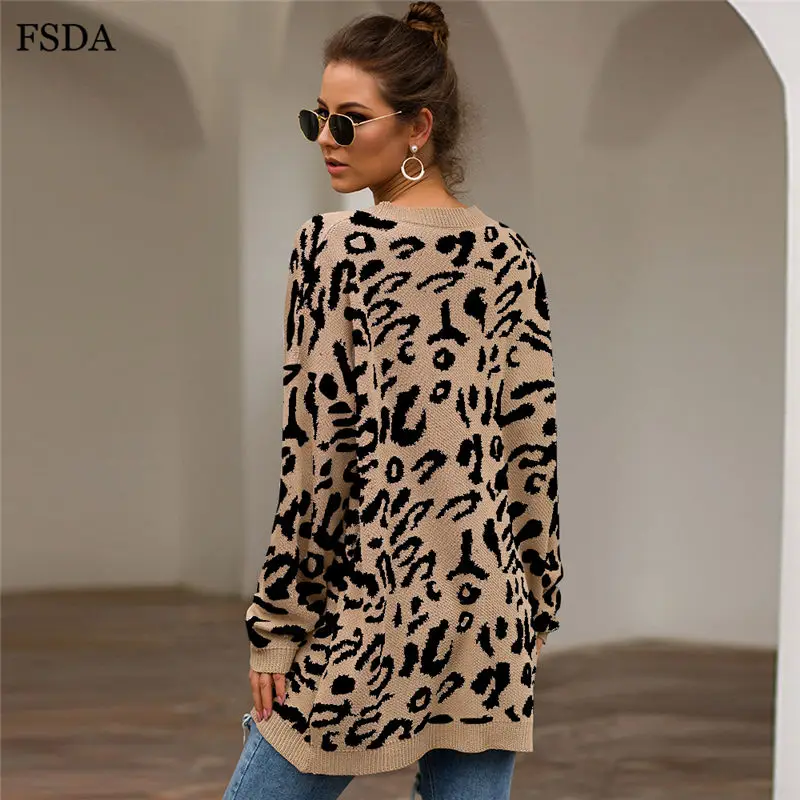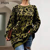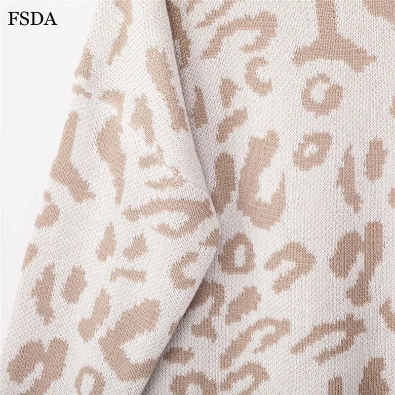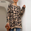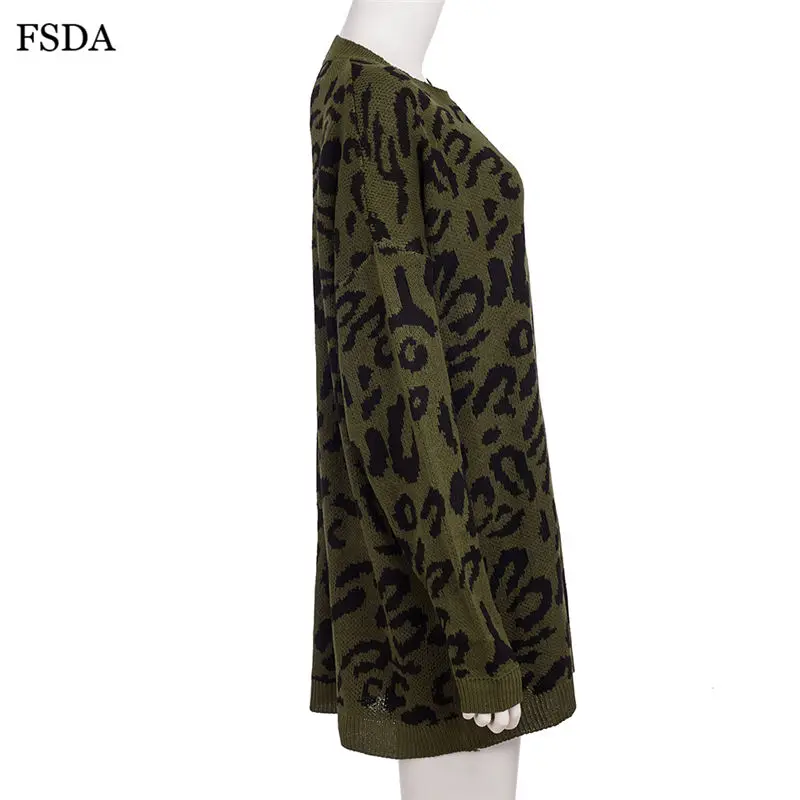 FSDA O Neck Long Sleeve Leopard Sweater Knitted Winter Spring Oversized Casual Green Pink Office Women Pullovers