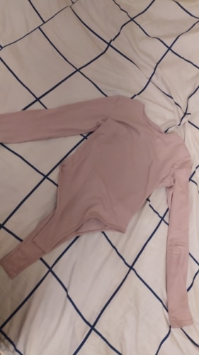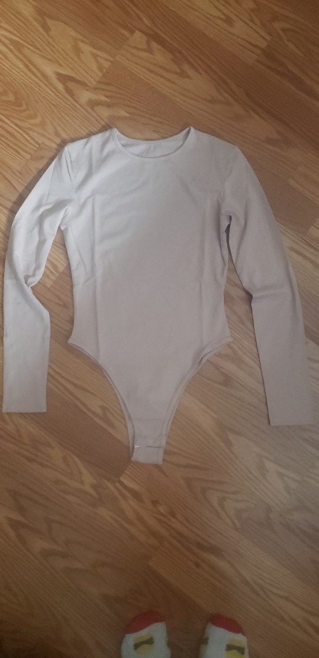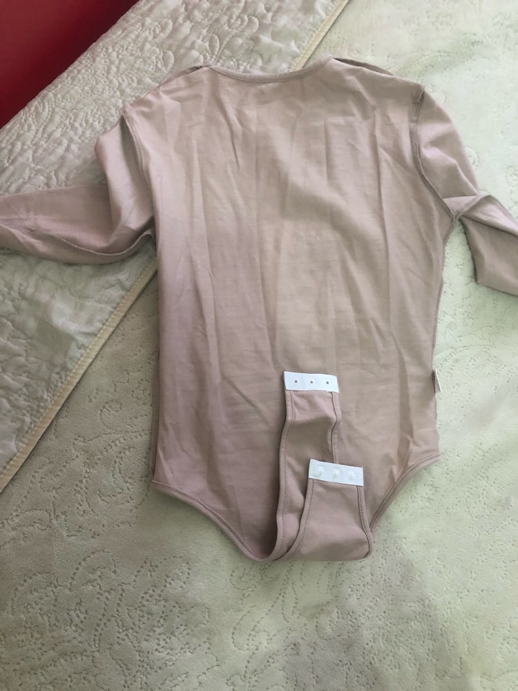 Красивое боди , быстрая доставка, заказала М на 42р 155 см, рукава немного длинноваты (не критично) и длина боди длинновата, укоротила немного. Цвет скорее "грязно увядшая роза" , с белым низом смотрится красиво.