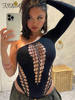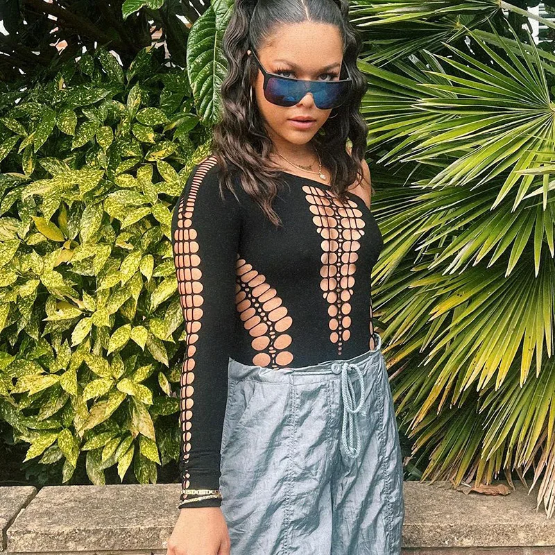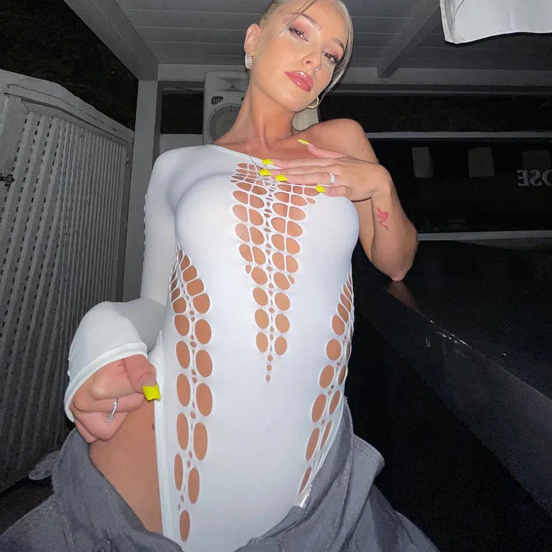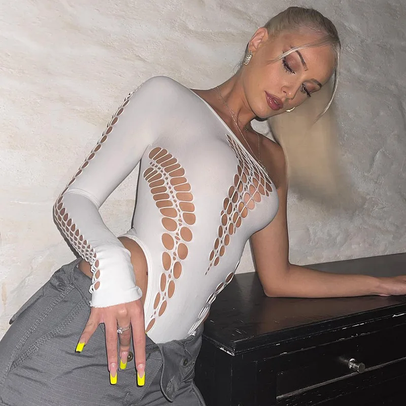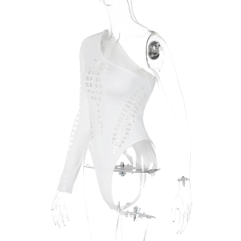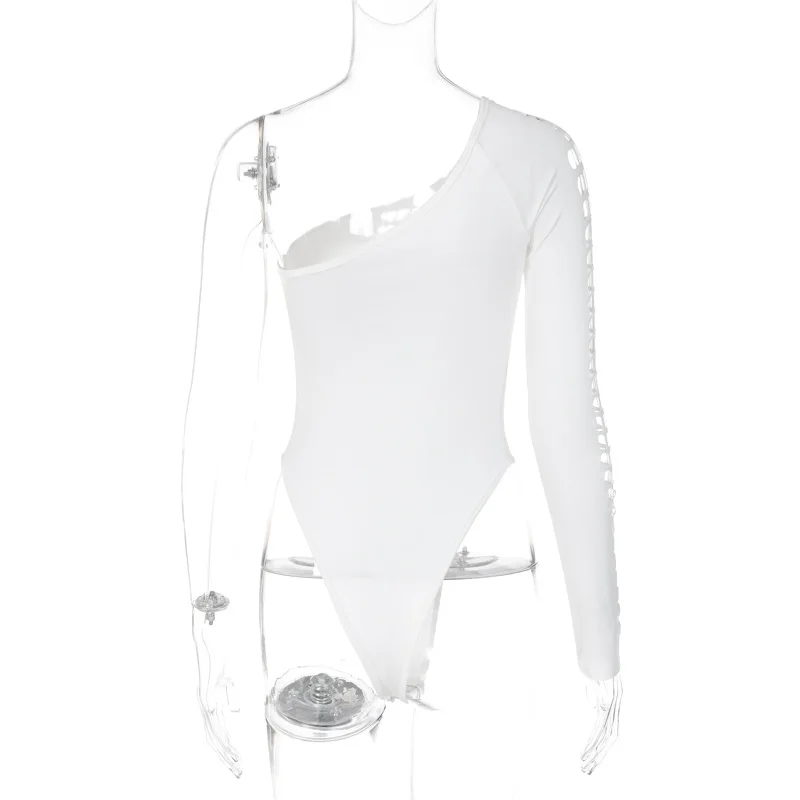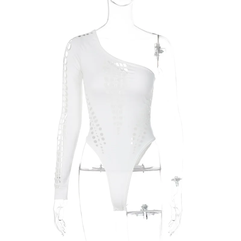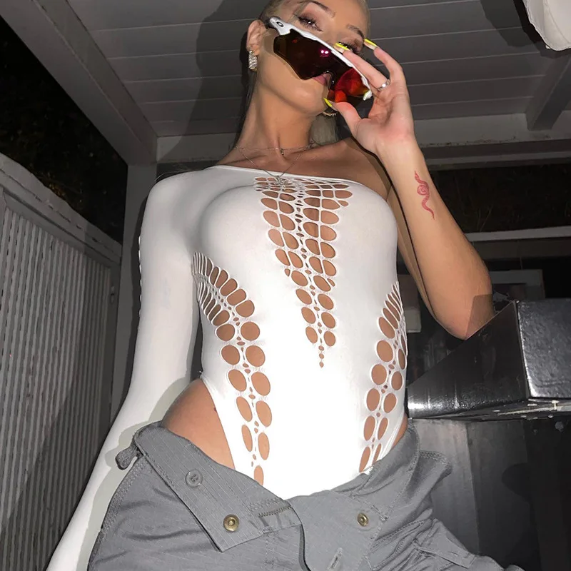 FSDA One Shoulder Y2K Cut Out Women Bodysuit Black Sexy Long Sleeve 2022 White Bodycon Jumpsuit Tops Backless Party