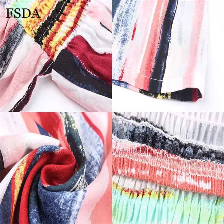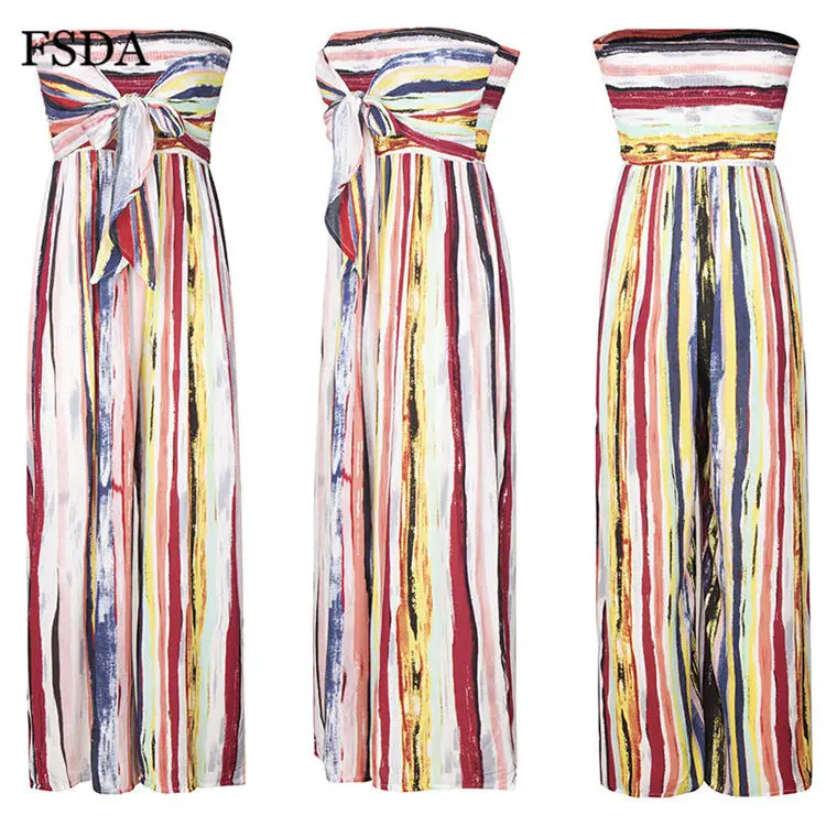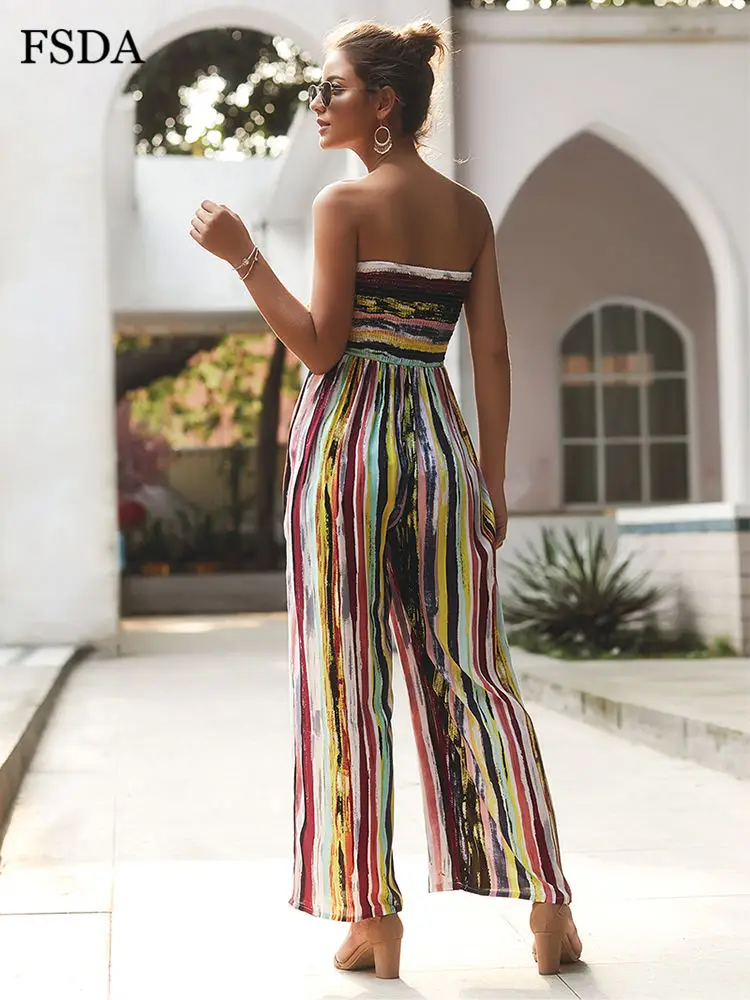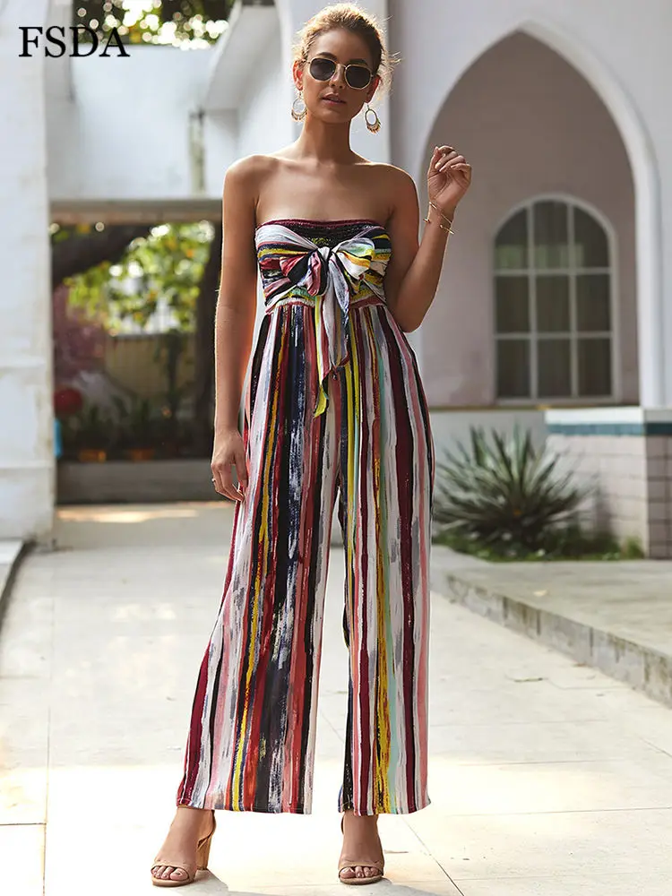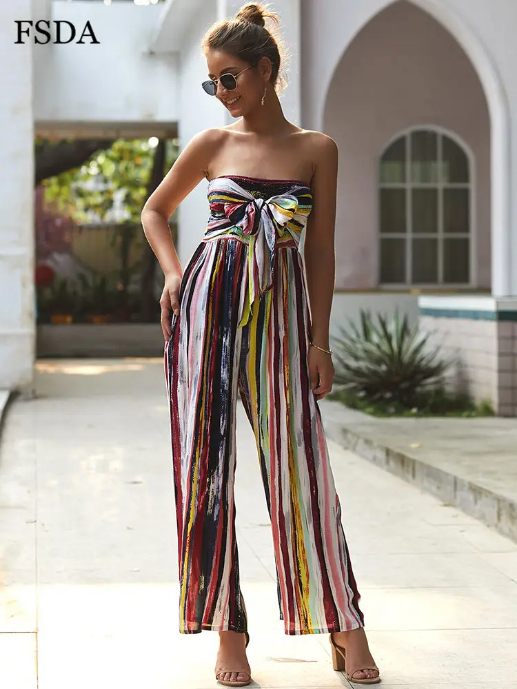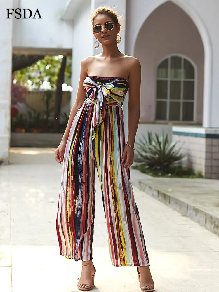 FSDA Print Strapless Summer Jumpsuit Beach Lace Up Bow Backless Ruched Women Jumpsuits