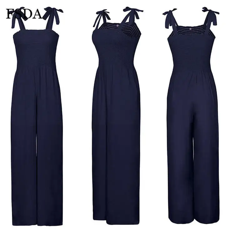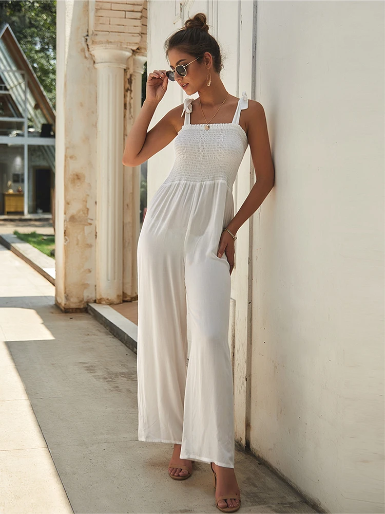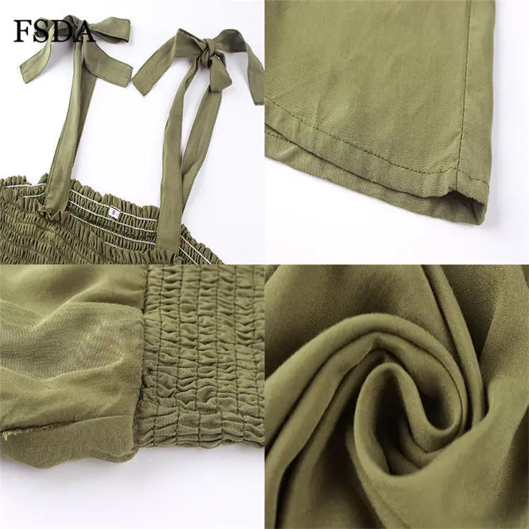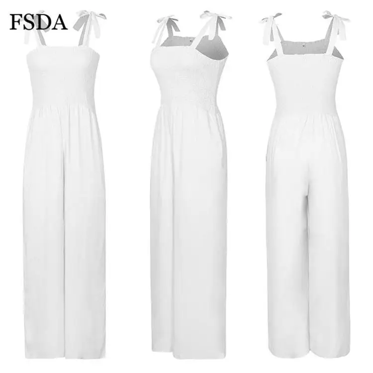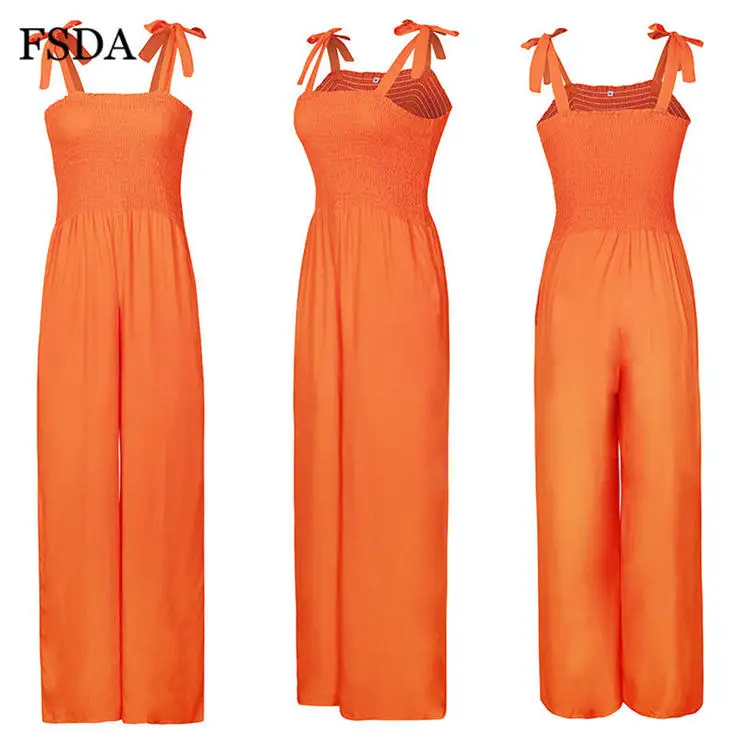 FSDA Ruched Lace Up Bow Strap Jumpsuit Backless Chiffon Casual Sleeveless Women Summer Jumpsuits