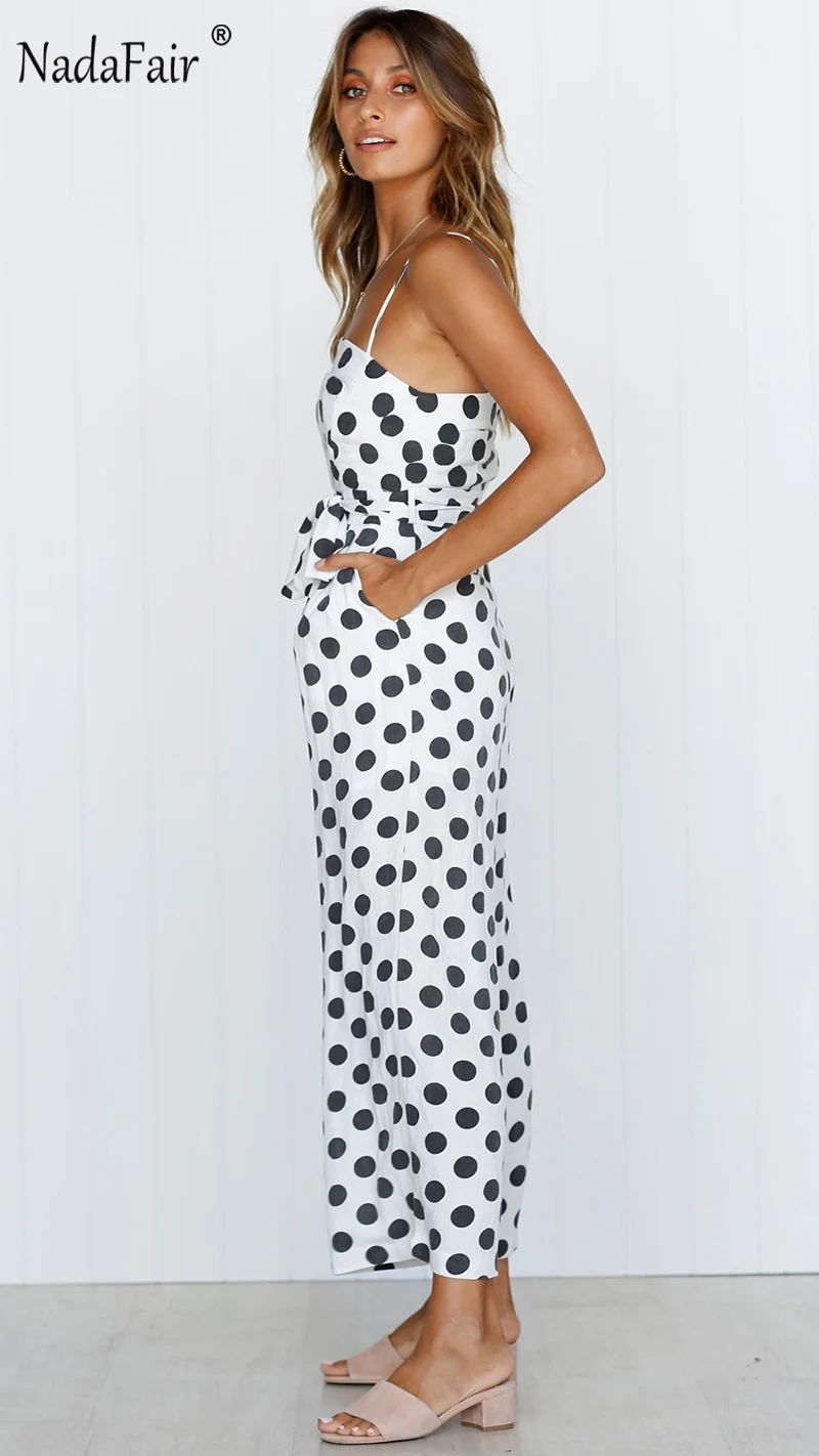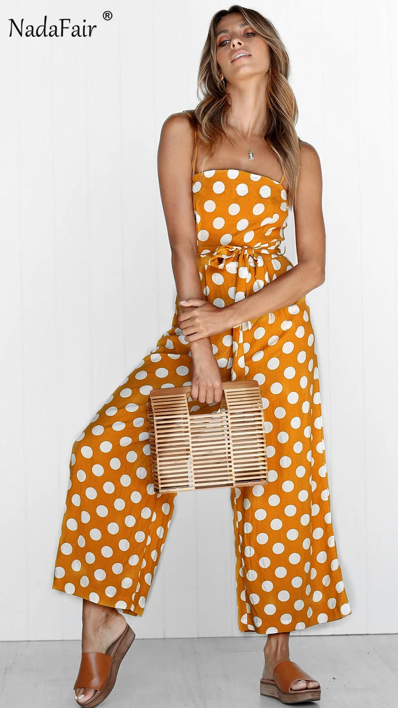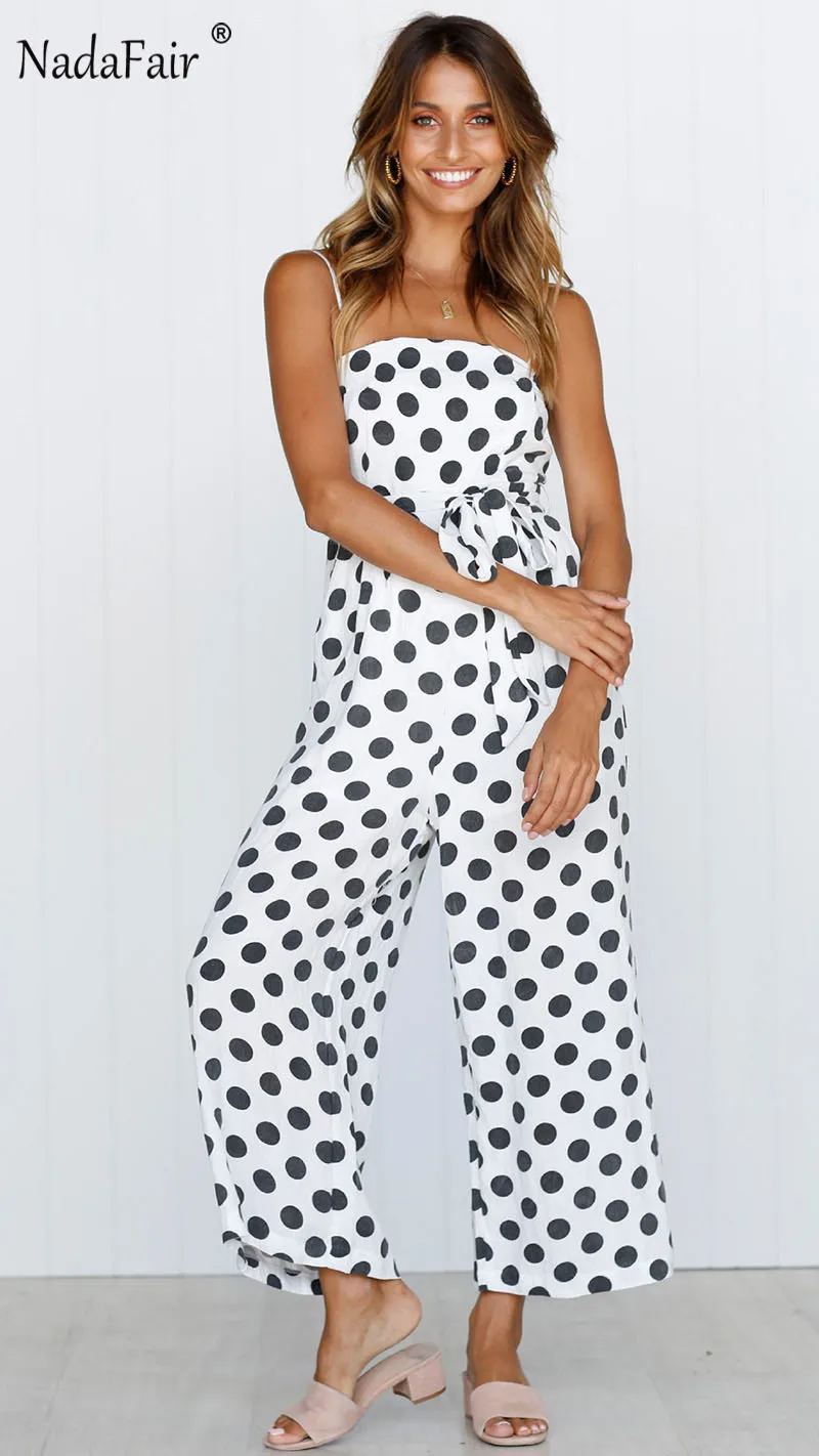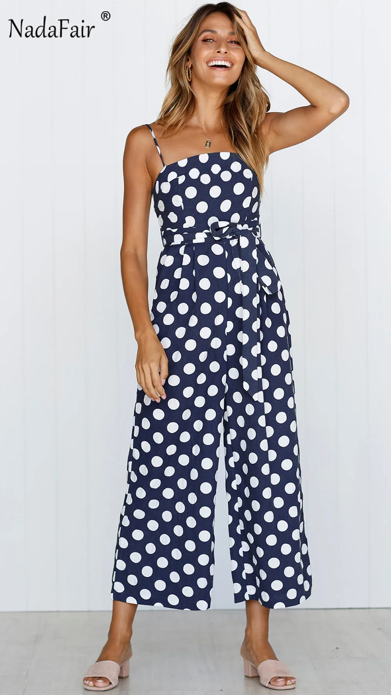 FSDA Sexy Dot Strap Jumpsuits Women Summer Belted Wide Leg Pants Trousers Casual Overalls