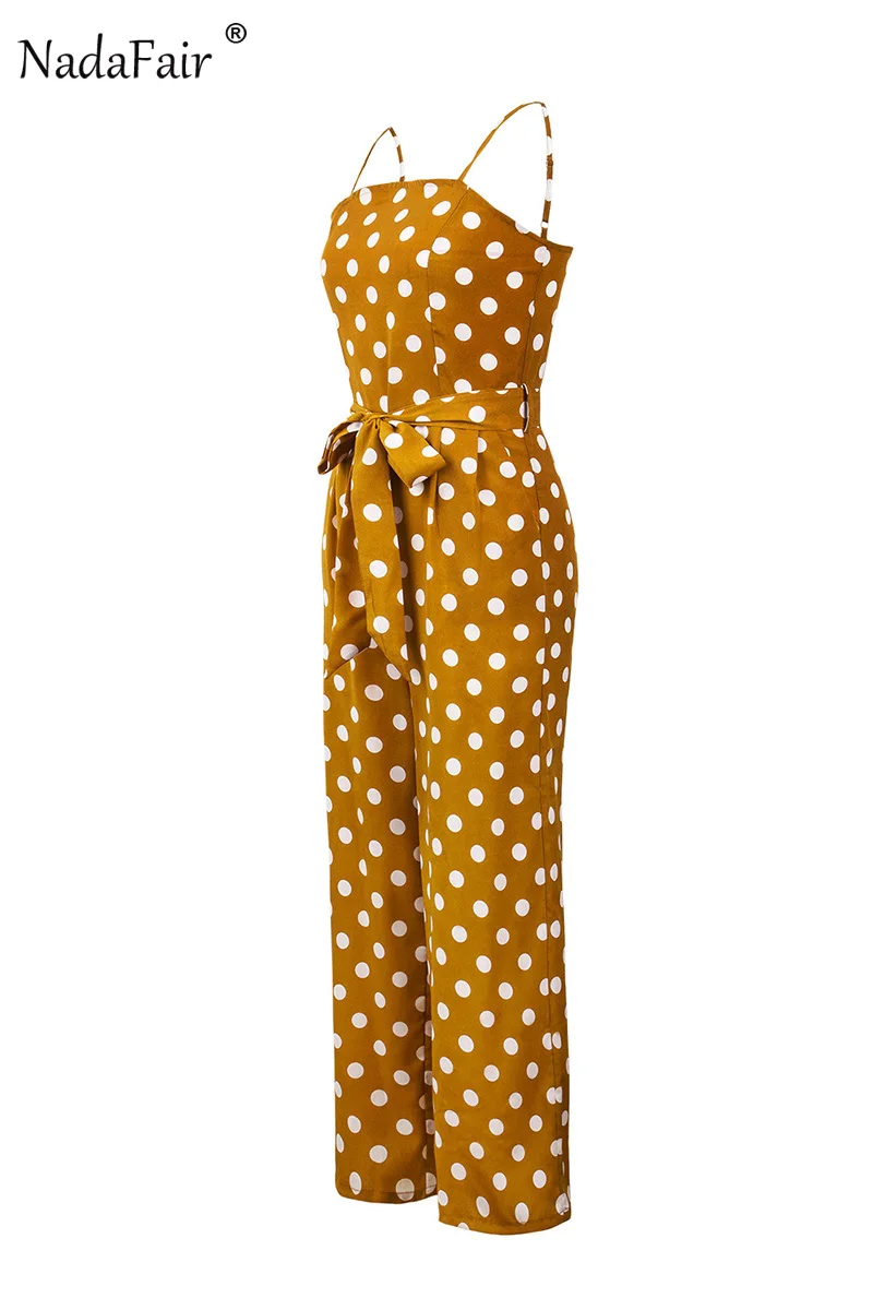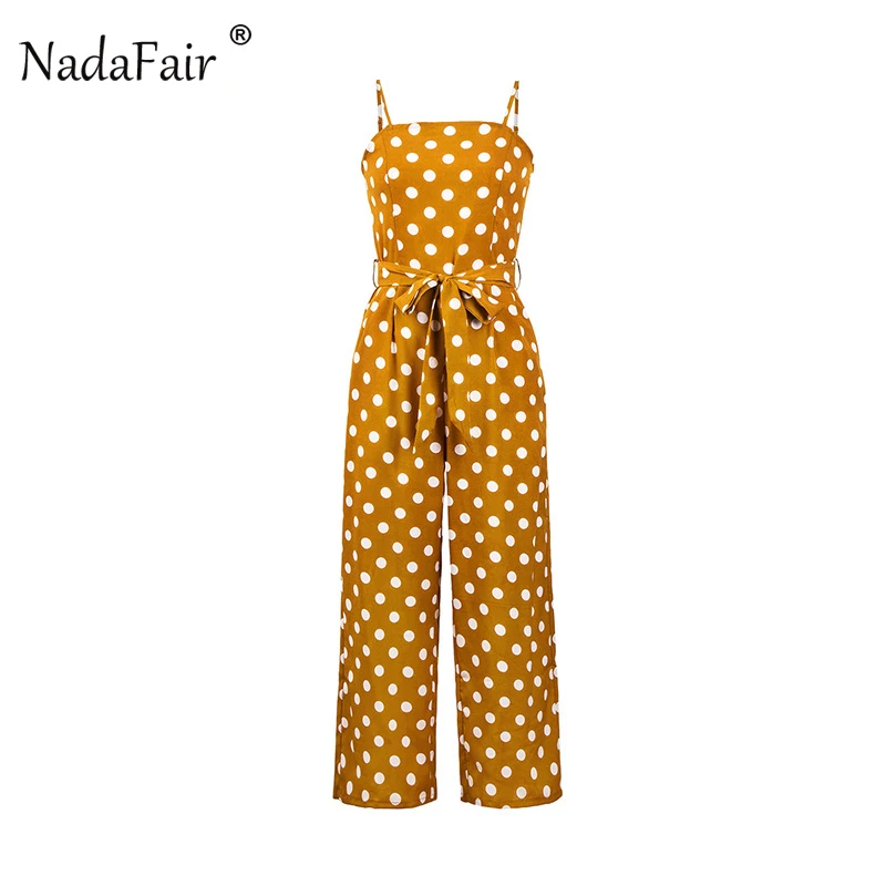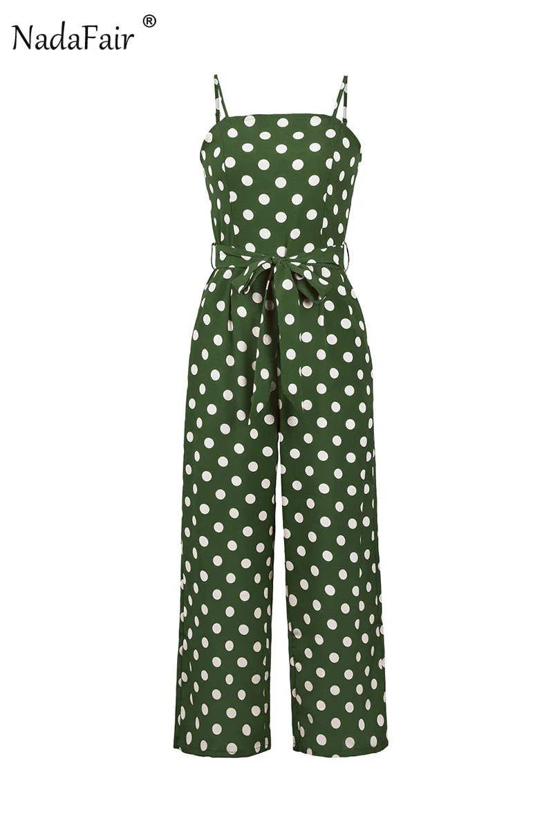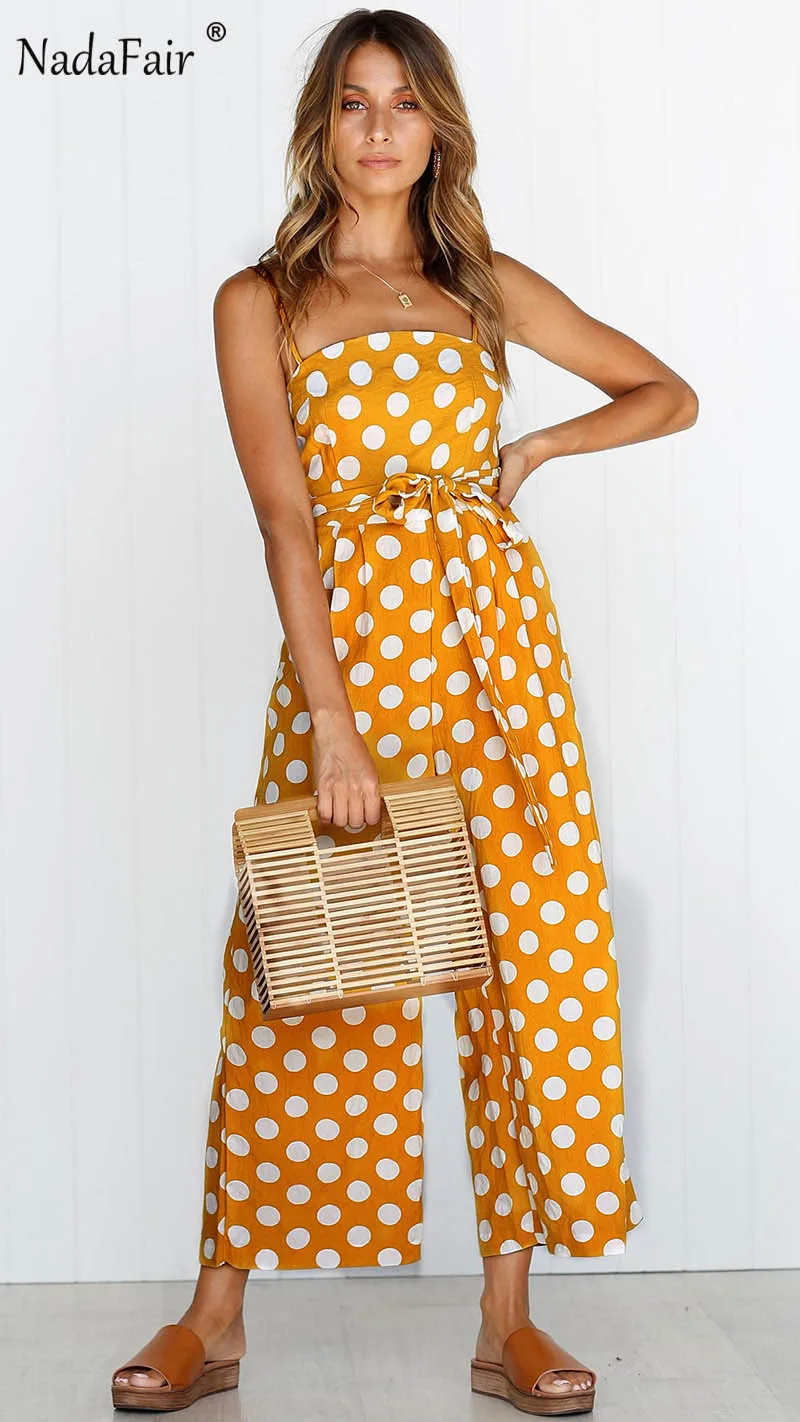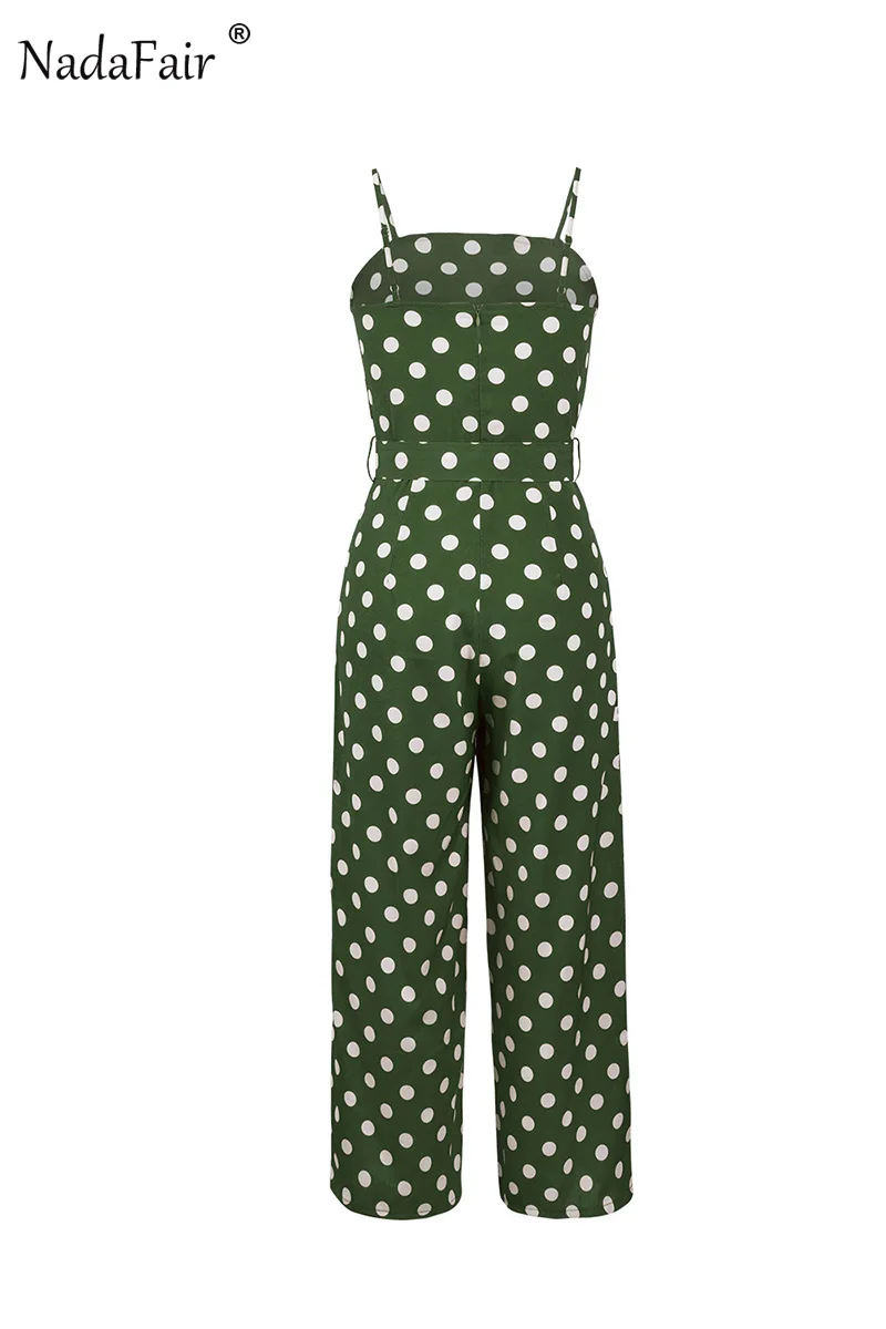 FSDA Sexy Dot Strap Jumpsuits Women Summer Belted Wide Leg Pants Trousers Casual Overalls