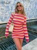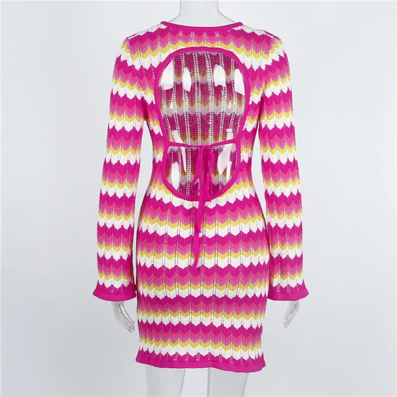 FSDA Stripe Knit Women Beach Dress Bodycon Backless Long Sleeve Green Y2K 2022 Casual Summer Holiday Sexy Dresses Party Mini