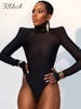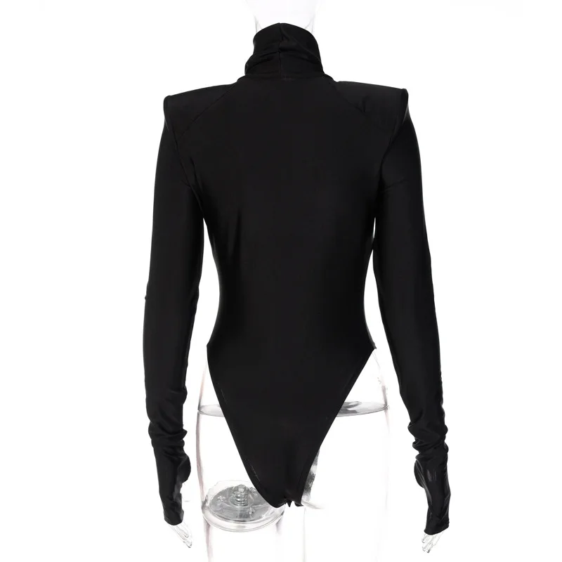 FSDA Turtleneck 2022 Autumn Winter Black Bodysuit Bodycon Women Long Sleeve Y2K Shoulder Pads Body Top Sexy Casual Junpsuit