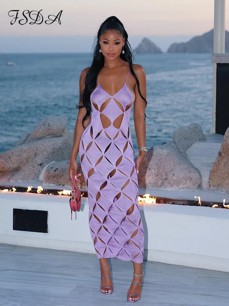 FSDA V Neck Y2K Maxi Party Dress Women Sexy 2022 Spaghetti Strap Backless Summer Hollow Out Dresses Bodycon Beach Club