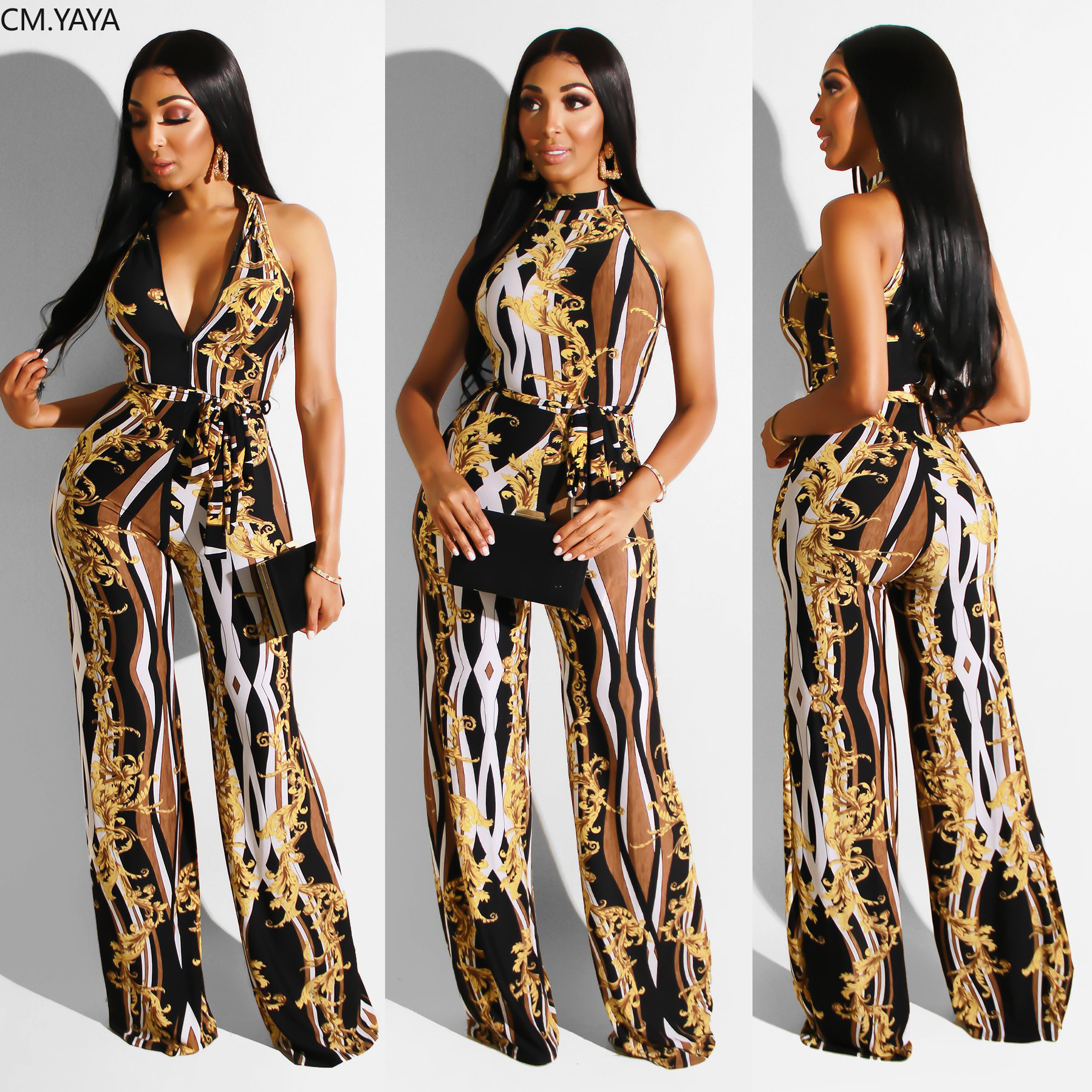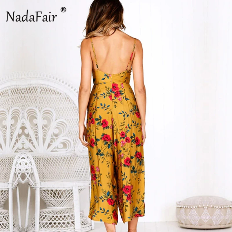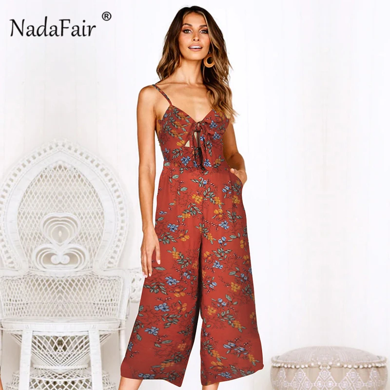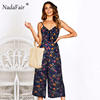 FSDA Women Backless Strap Jumpsuit Printed 2019 Summer Casual Wide Leg Beach Jumpsuits Trousers