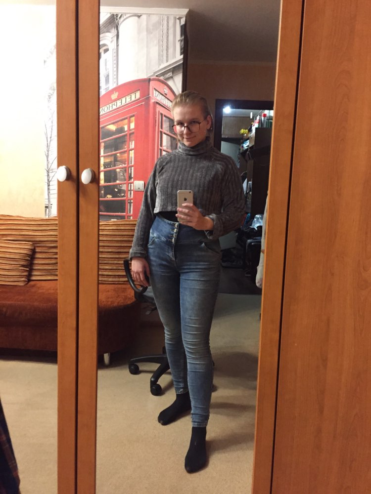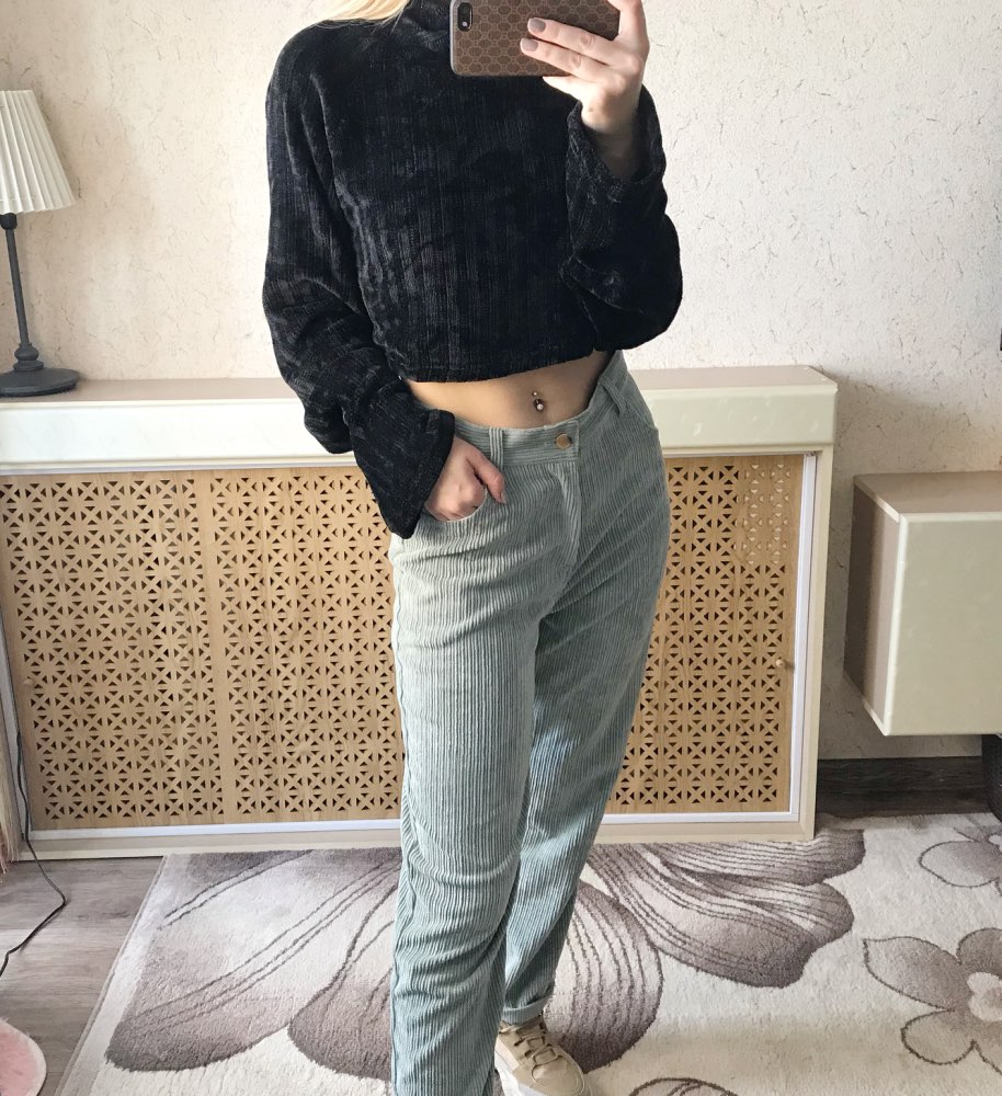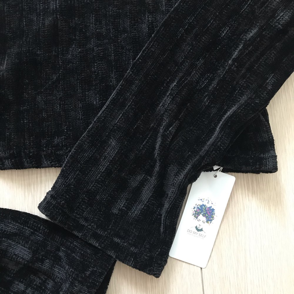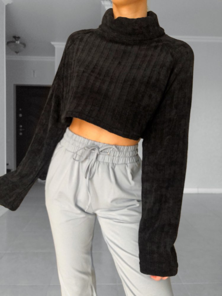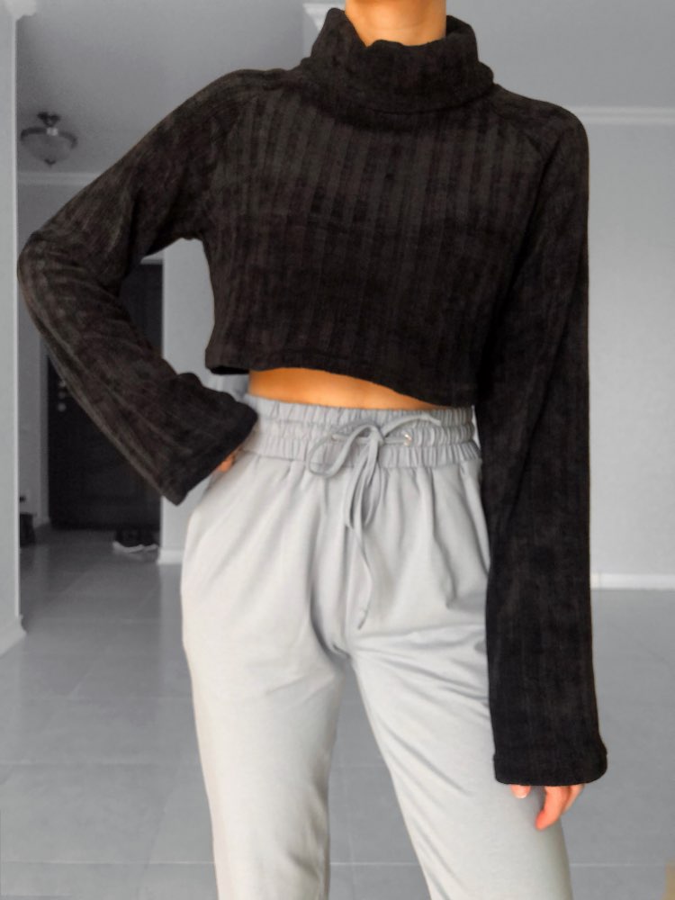 Cropped turtleneck So soft and pleasant, as if wrapped in a plaid) Collar collar, long sleeves. The style is fashionable and stylish. Material: polyester. The fabric is insanely pleasant to the body and stretches well. On my parameters og-77, ot-61, ob-88 ordered M. Color: Black
