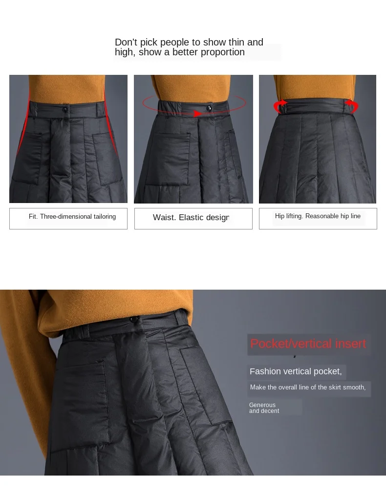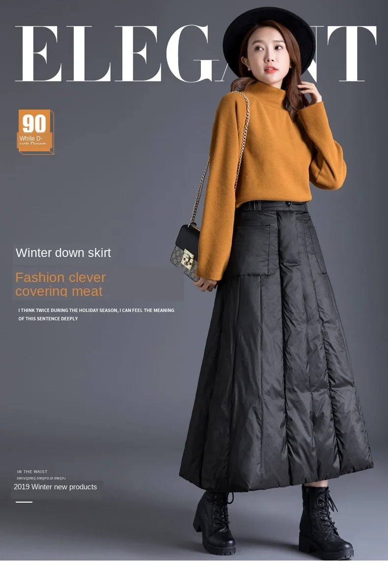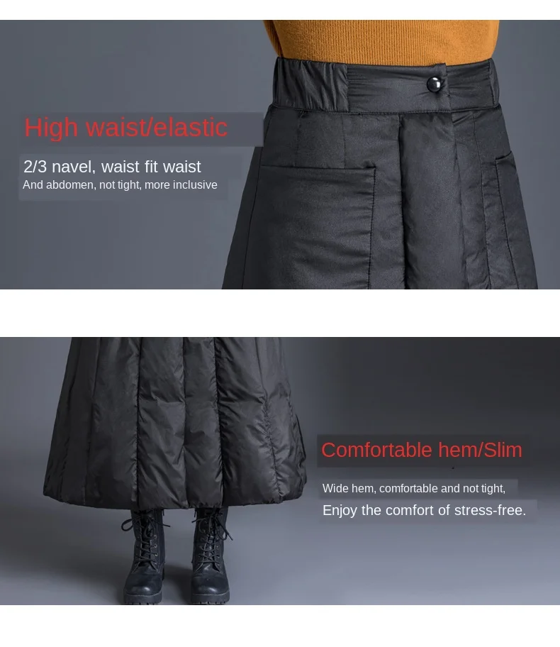 GareMay Winter Women’s Duck Down Skirt High Waist Casual Long Skirt for Women Thick Warm Female Padded Black Skirts