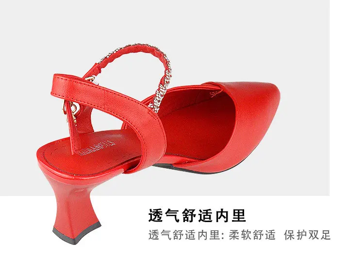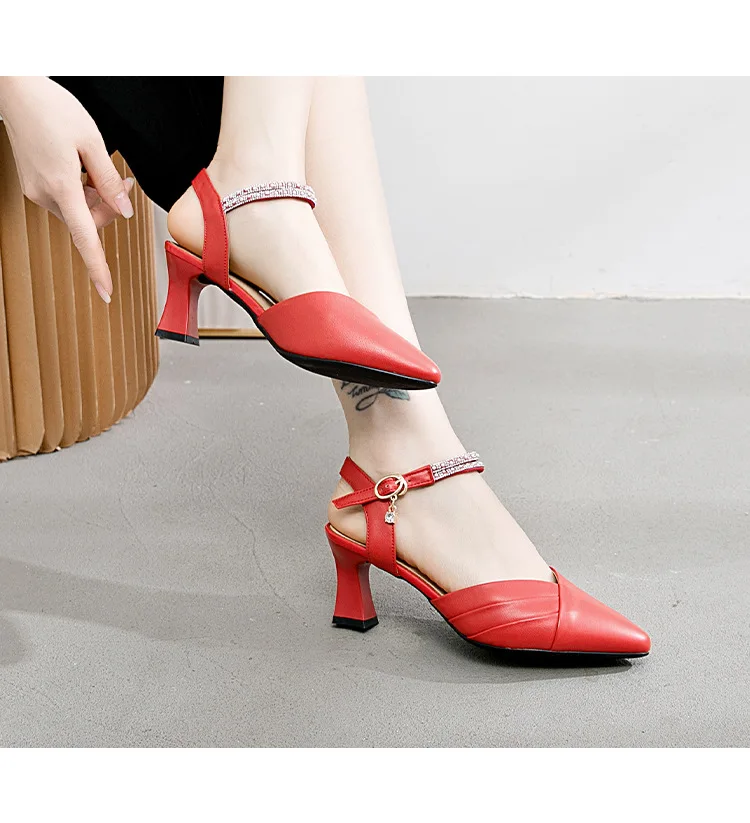 Genuine Leather High Hells Women Block Heel Sandals 2021 Fashion Pointed Toe Buckle High Heels Sexy Party Shoes Banquet Shoes