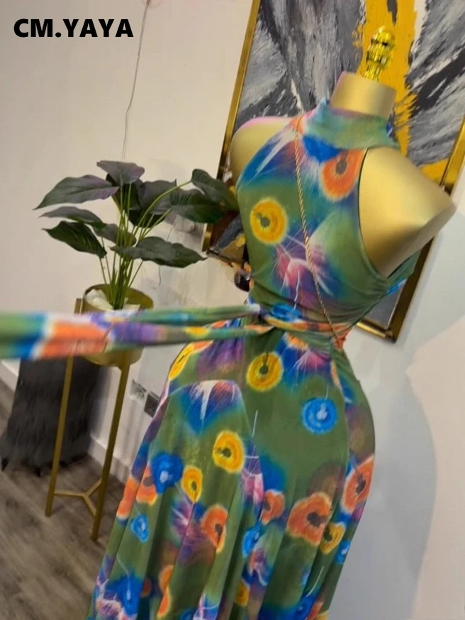GLCMYAYA 2025 Fall Women O-neck Sleeveless Print Mermaid Maxi Dress Evening Birthday Beach Sexy Night Party Long Dresses