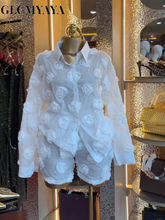 GLCMYAYA Fashion Sequined Splicing Women’s Set Lapel Collar Shirt and Midi A-line Skirt Suit Vacation Two 2 Piece Set Outfits