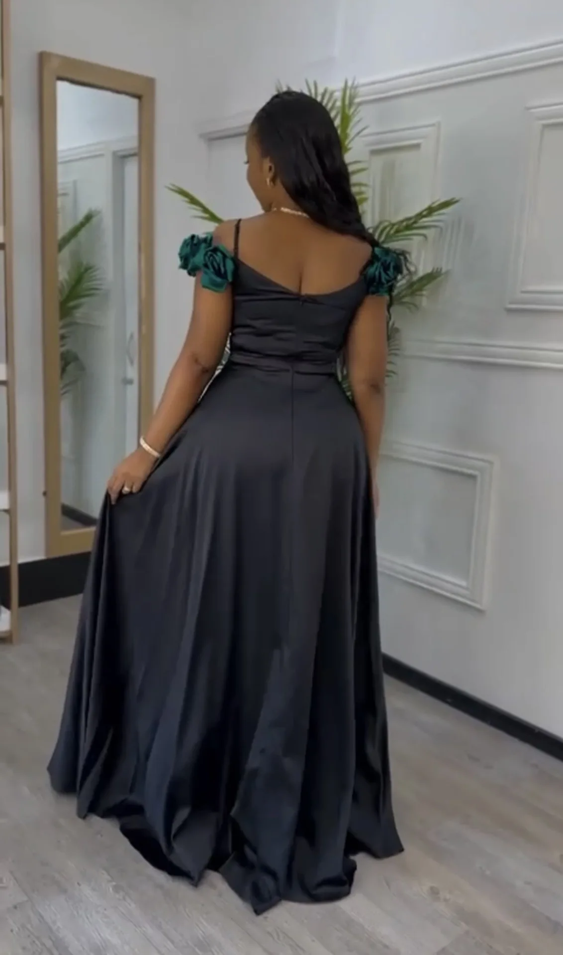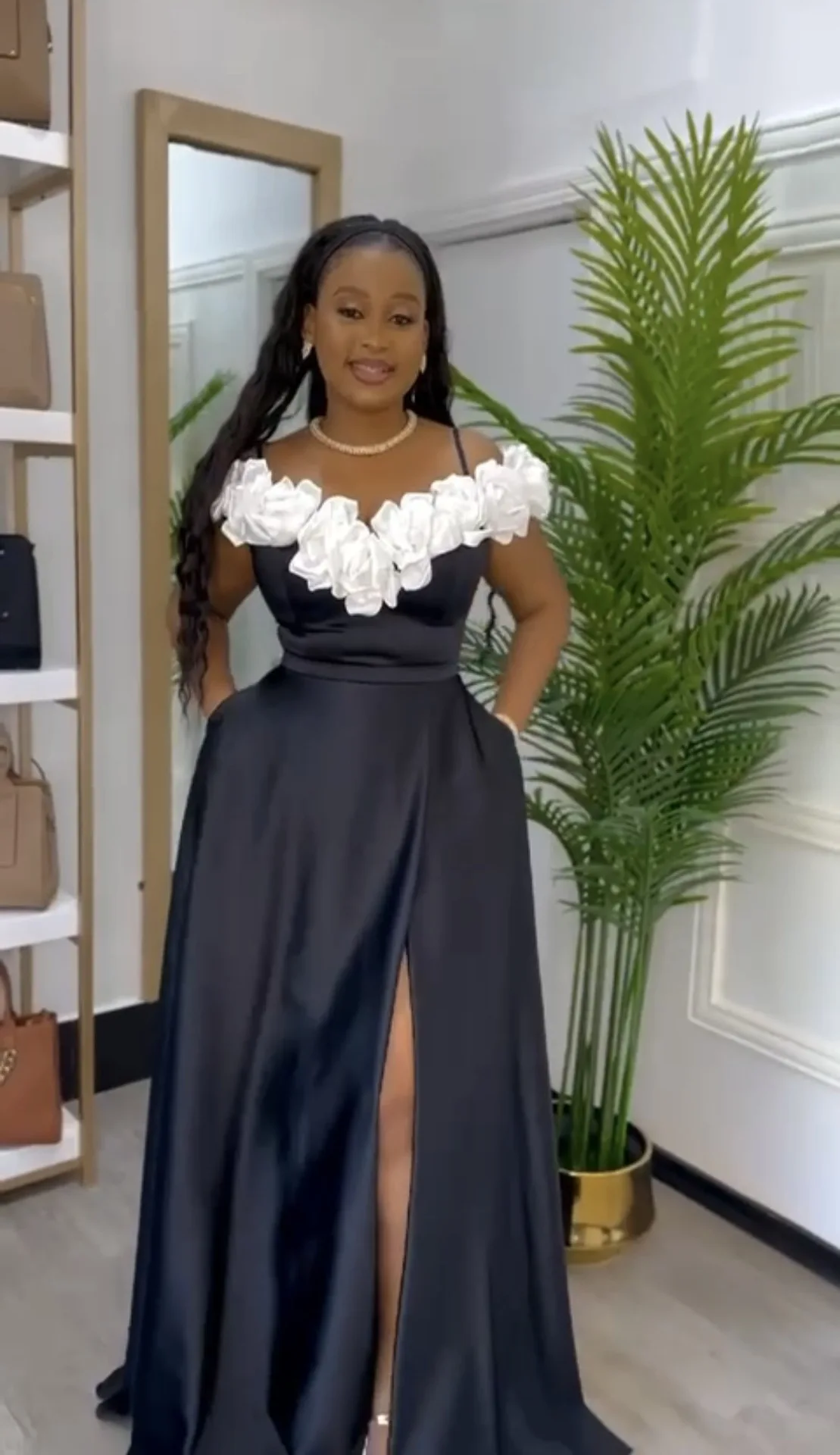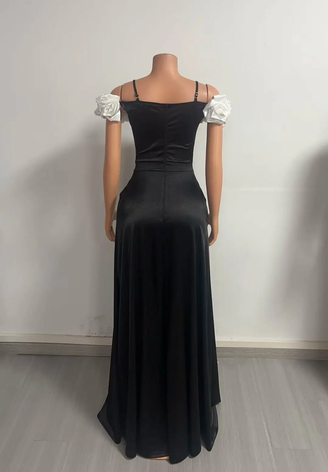 GLCMYAYA Women 3D Flower Short Sleeve Slash Neck Split Maxi Long Dress 2025 Summer Birthday evening Holiday Elegant Dresses
