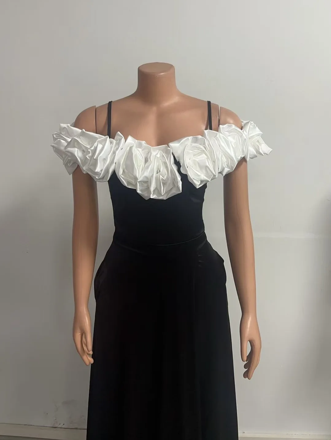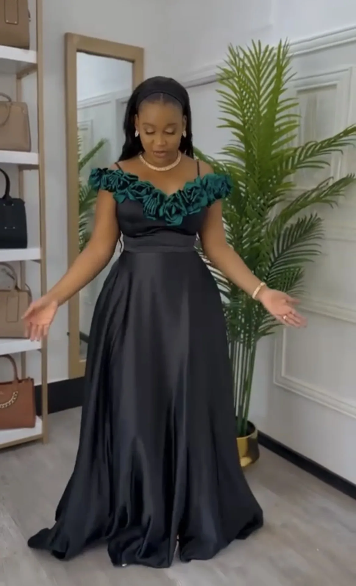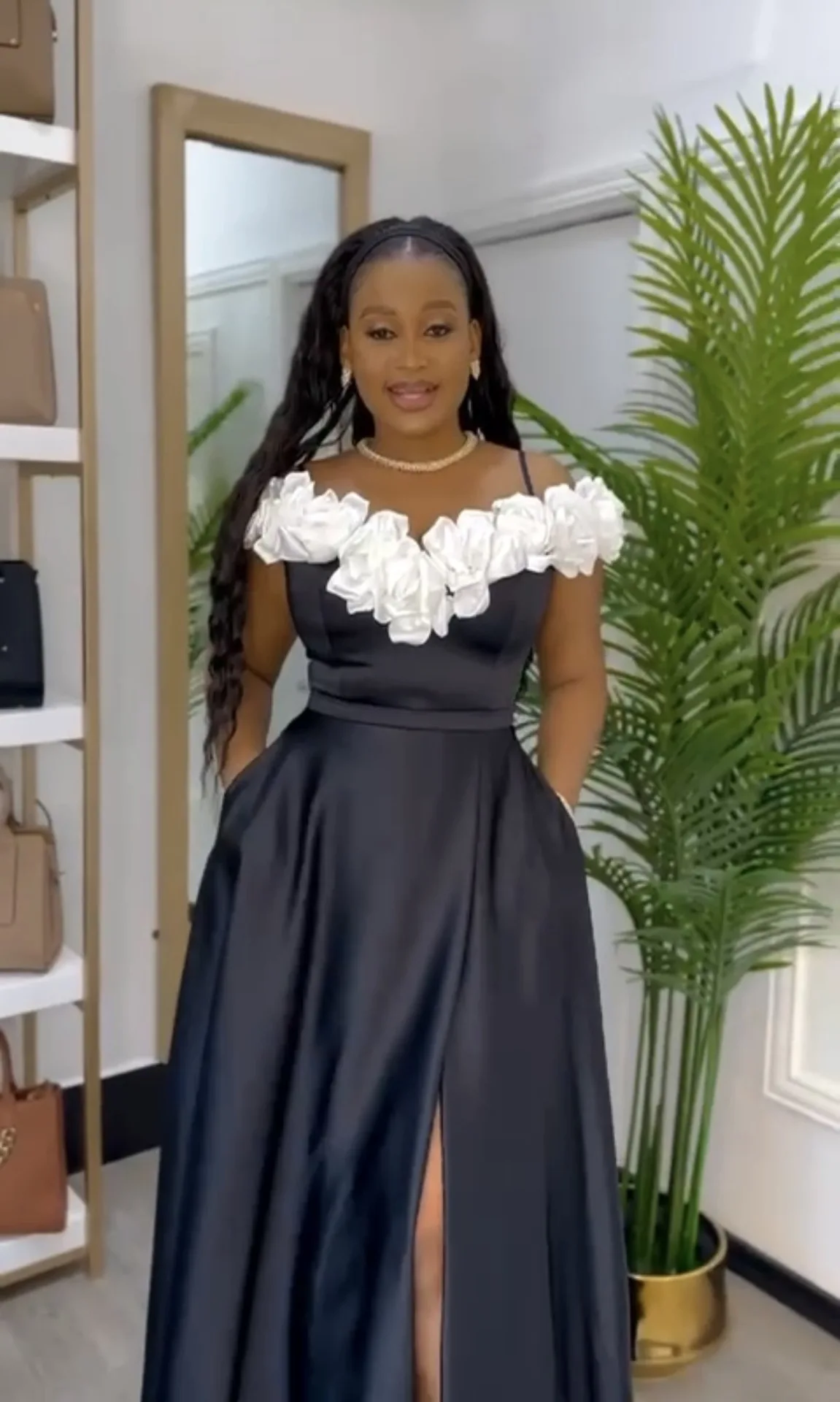 GLCMYAYA Women 3D Flower Short Sleeve Slash Neck Split Maxi Long Dress 2025 Summer Birthday evening Holiday Elegant Dresses