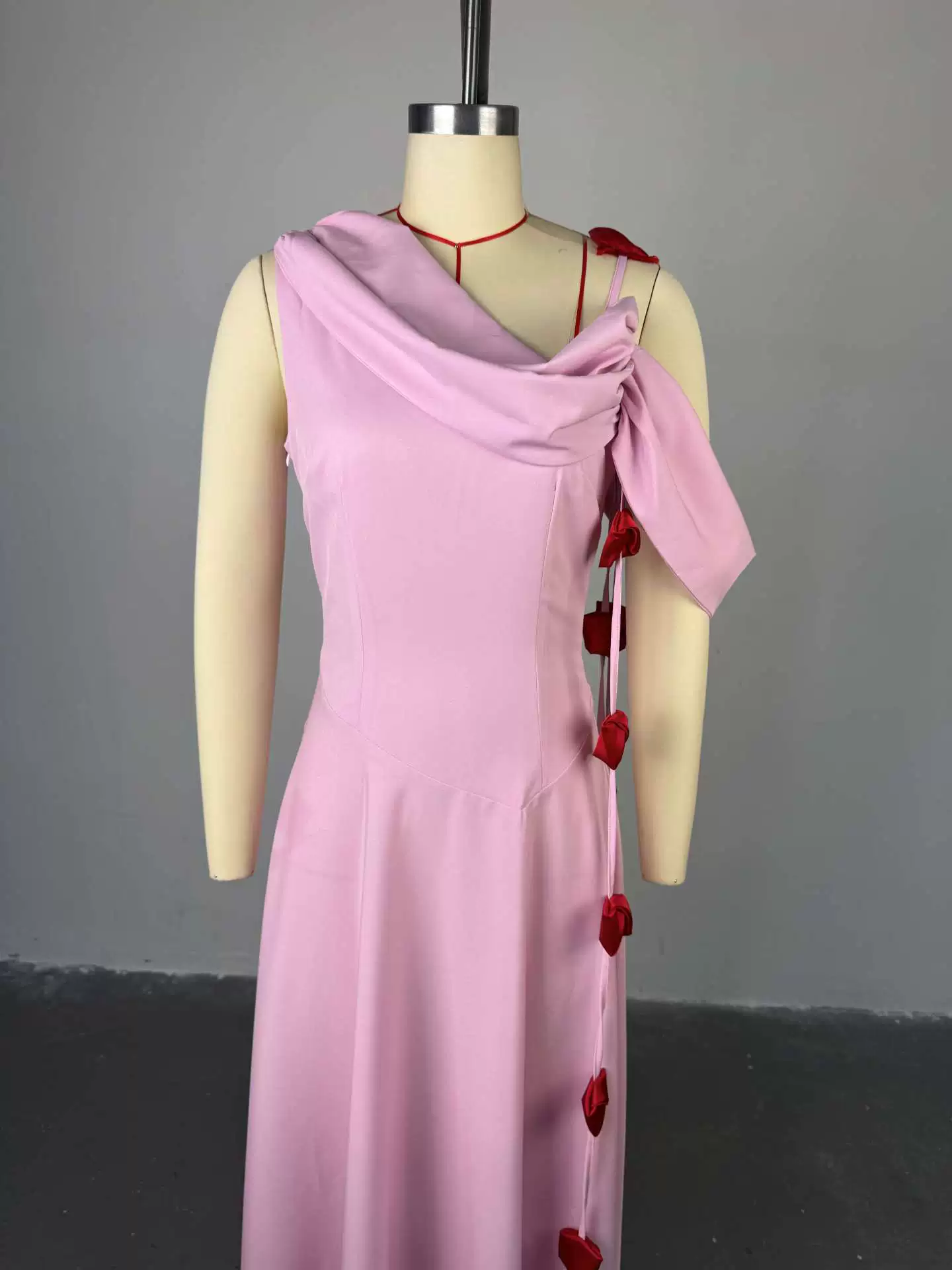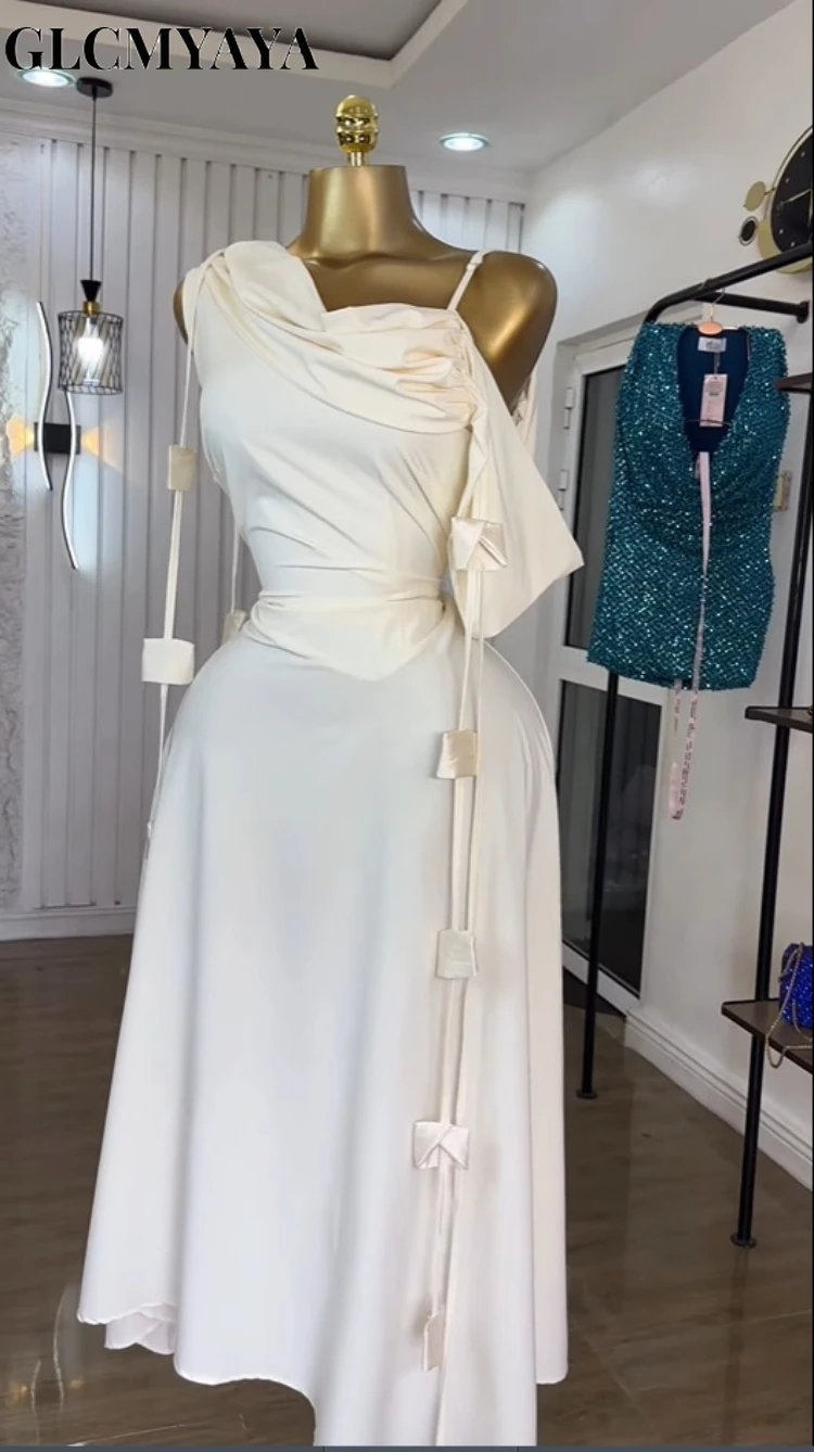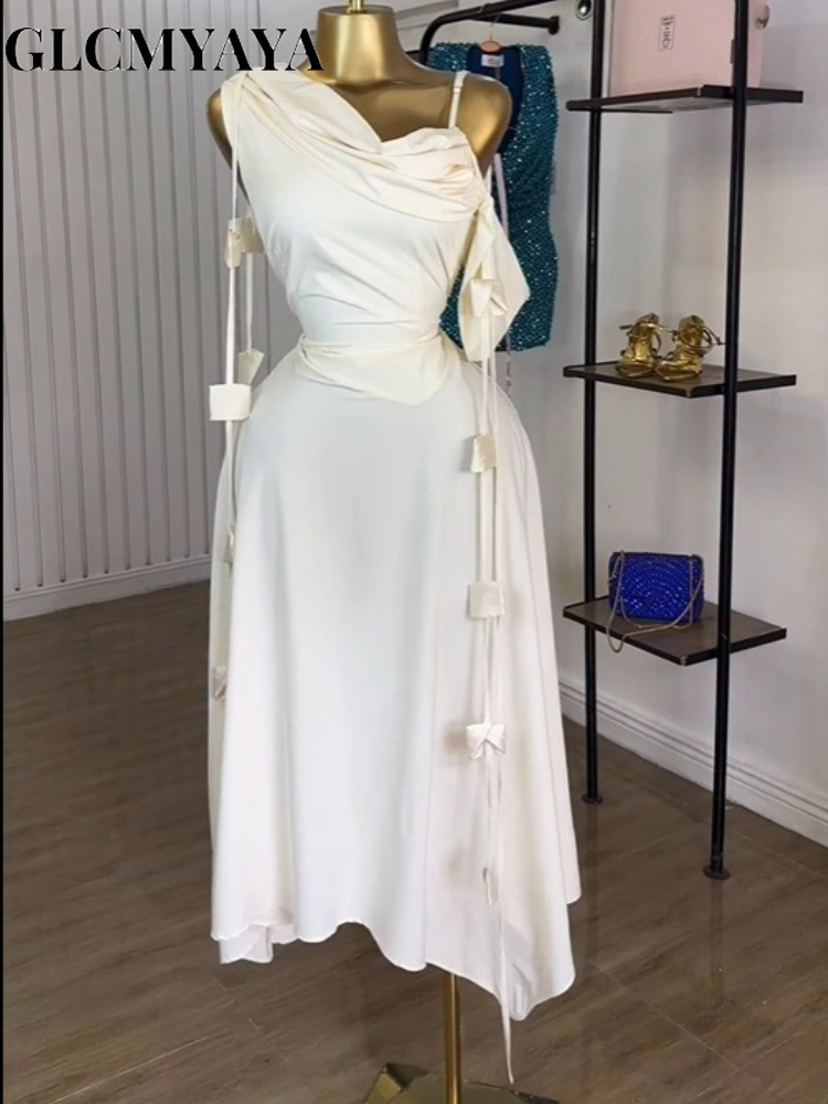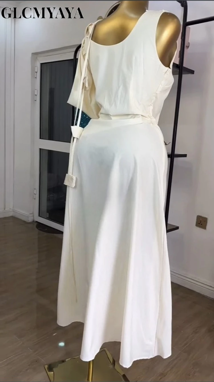 GLCMYAYA Women Applique One Short Sleeve Irregular A-line Maxi Long Dress 2025 Vacation Holiday Party Birthday Dresses Vestiods