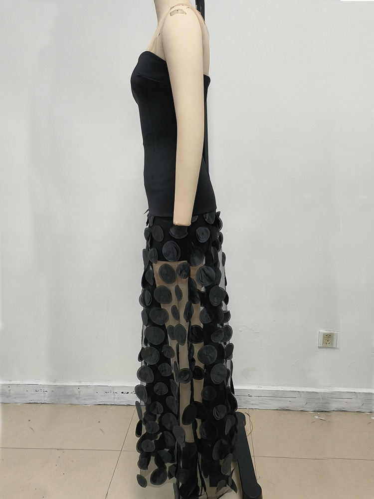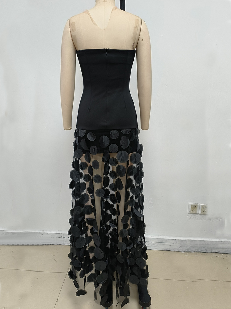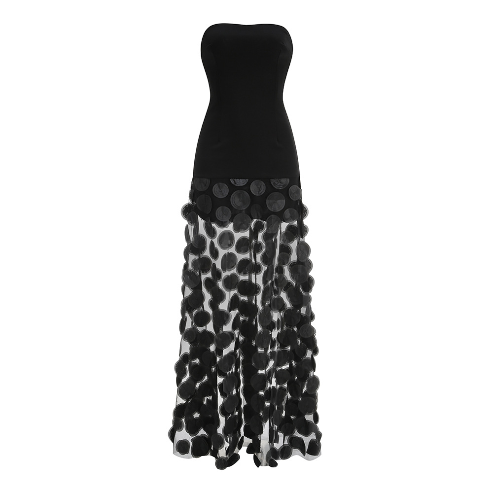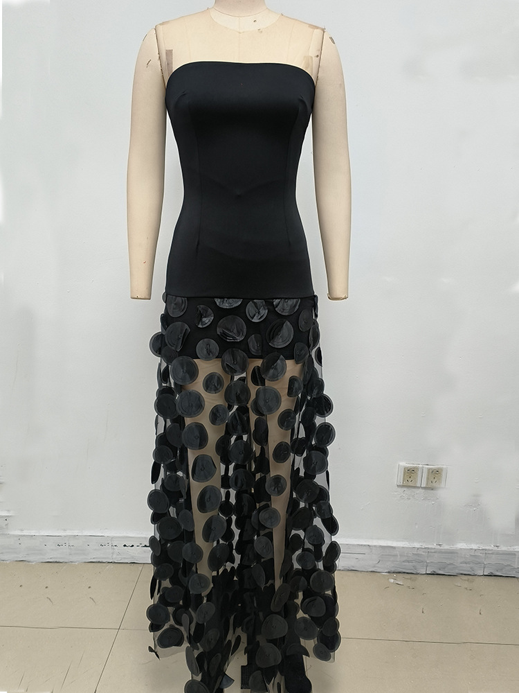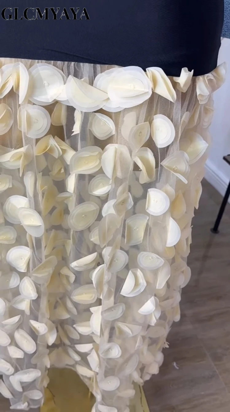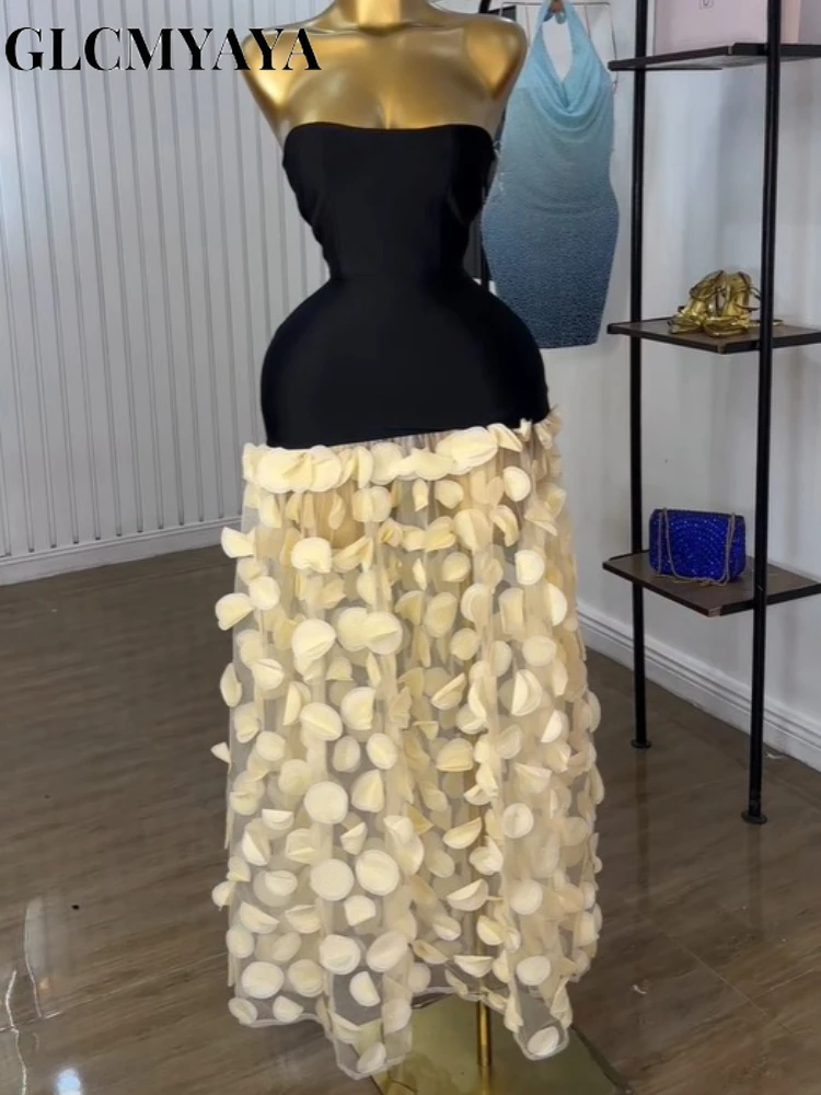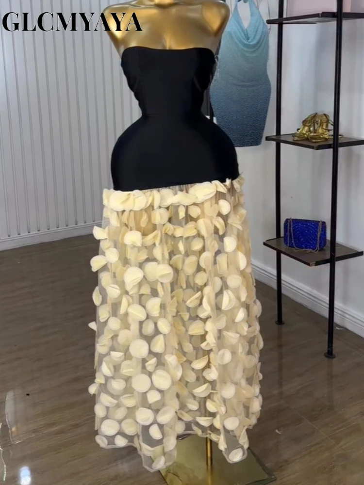 GLCMYAYA Women Applique Patchwork Strapless Bodycon Midi Maxi Long Dress 2025 Summer Birthday Vacation Holiday Dresses Vestidos