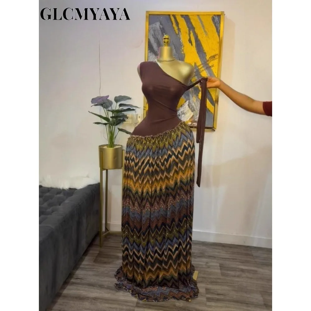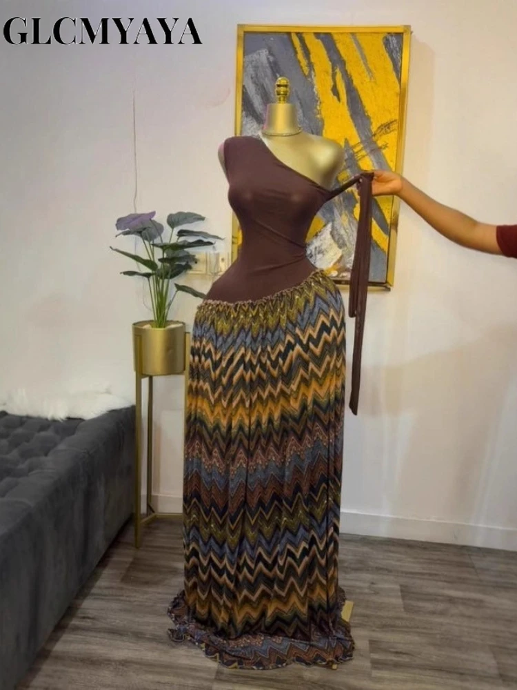 GLCMYAYA Women Diagonal Collar Sleeveless Printed Maxi Long Dress 2025 Fall Evening Vacation Sexy Party Club Vestidos Dresses