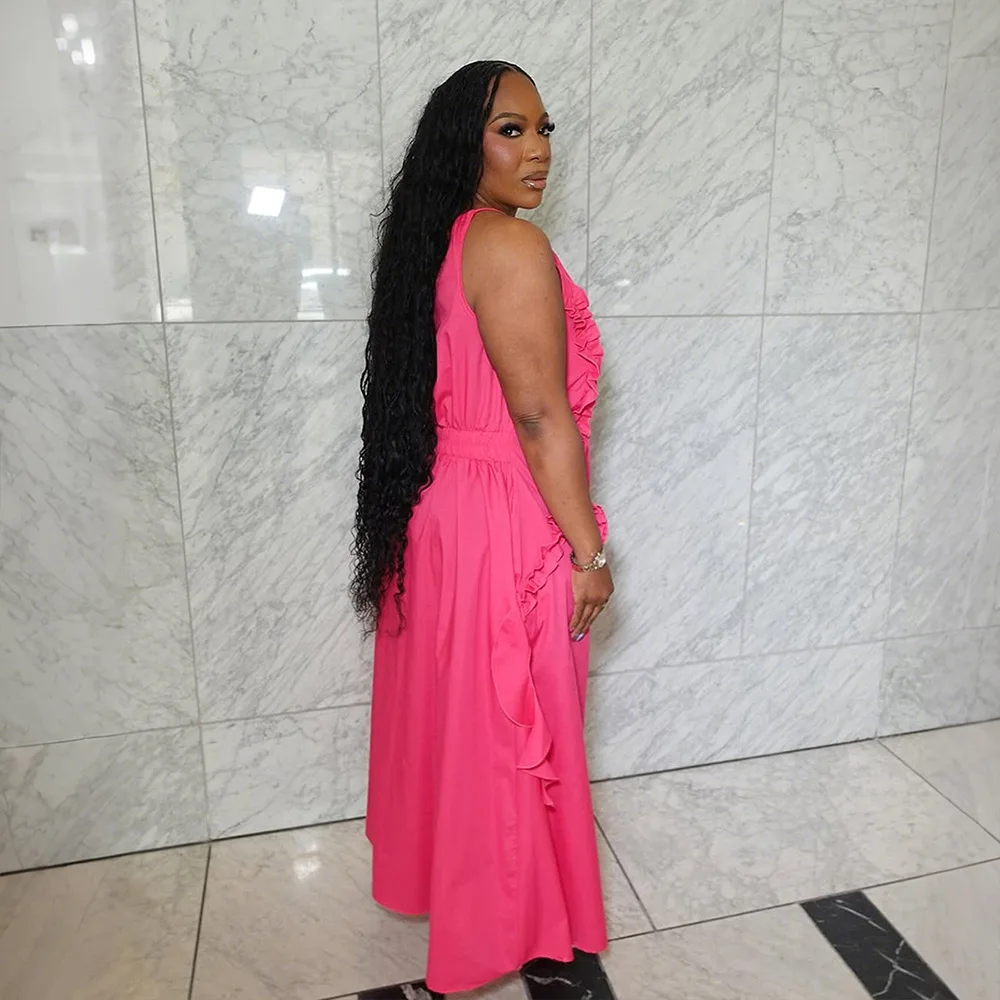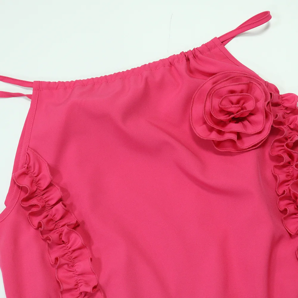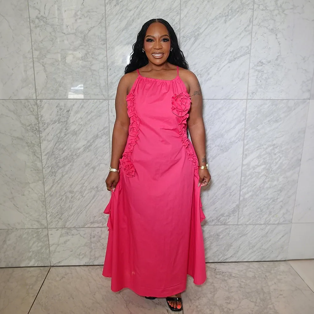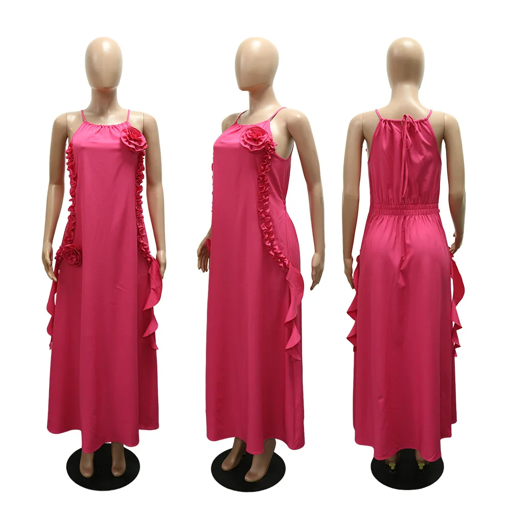 GLCMYAYA Women Floral Applique Halter Strap Ruffles Loose Maxi Long Dress 2025 Vacation Holiday Beach Sexy Vestidos Dresses