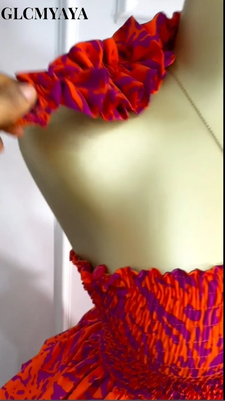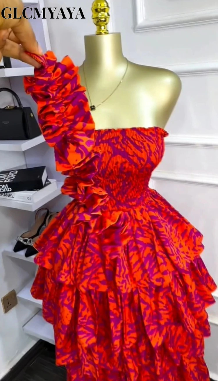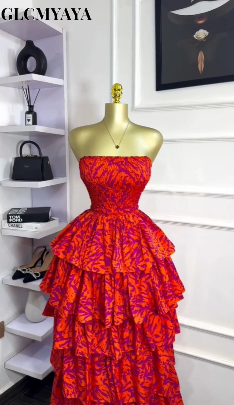 GLCMYAYA Women Floral Printed Cascading Ruffles Ball Gown Midi Maxi Long Dress Birthday Vacation Holiday Party Dresses Vestidos