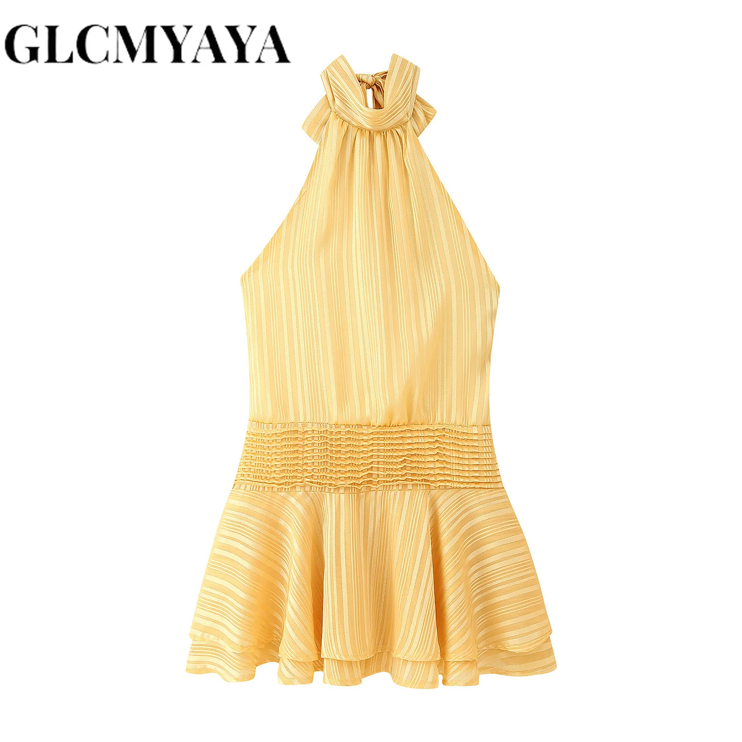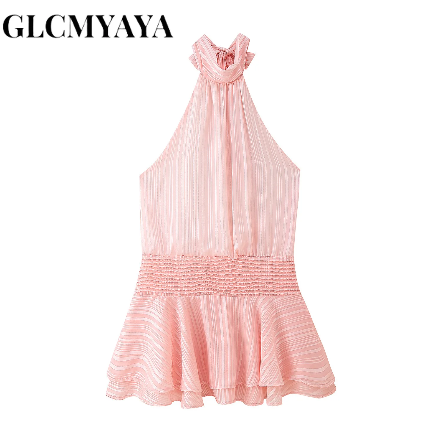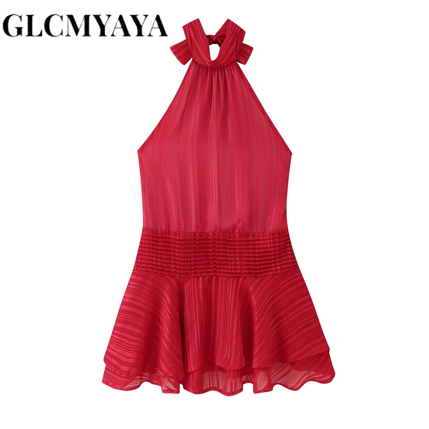 GLCMYAYA Women Halter Neck Sleeveless Ruffles Flare Midi Mini Dress 2025 Summer Vacation Holiday Elegant Beach Dresses Vestidos
