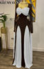 GLCMYAYA Women Long Sleeve Draped Front Midi A-line Patchwork Maxi Long Dress 2025 Vacation Holiday Party Birthday Dresses