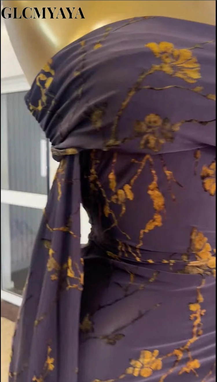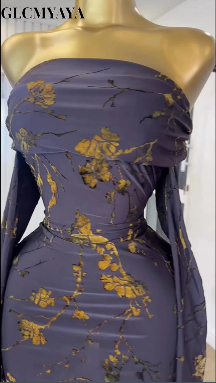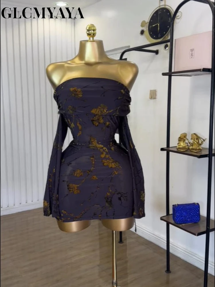 GLCMYAYA Women Off Shoulder Long Sleeve Floral Bodycon Midi Mini Dress 2025 Vacation Sexy Party Birthday Dresses Vestidos
