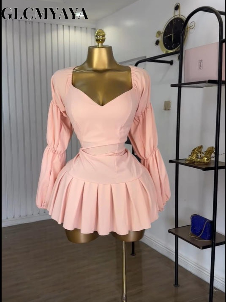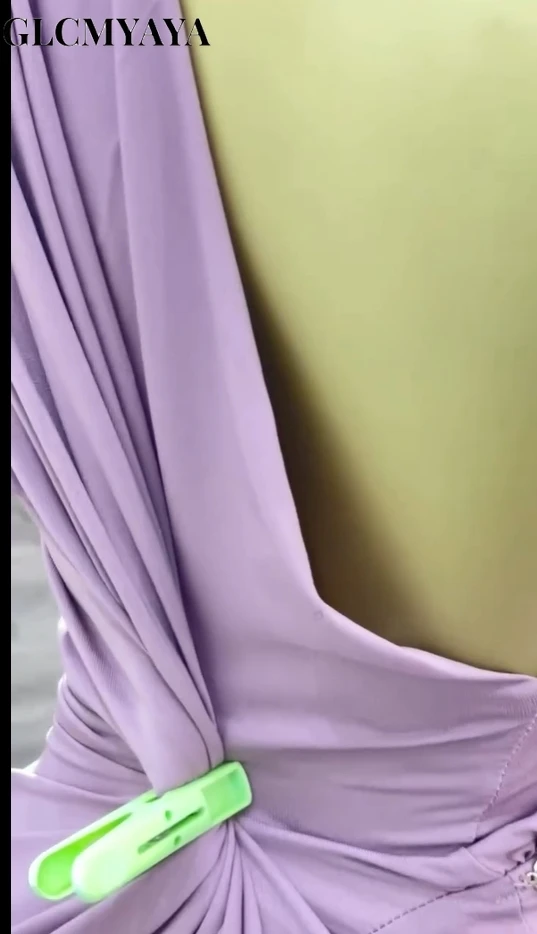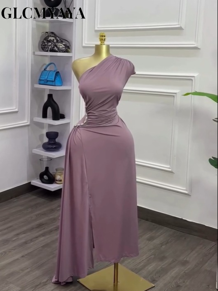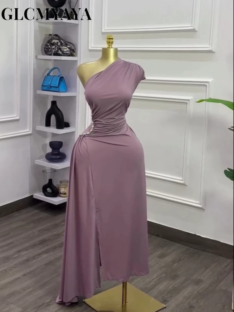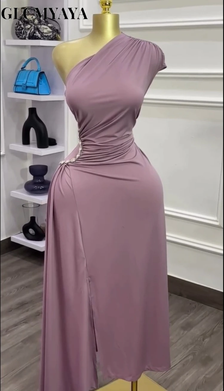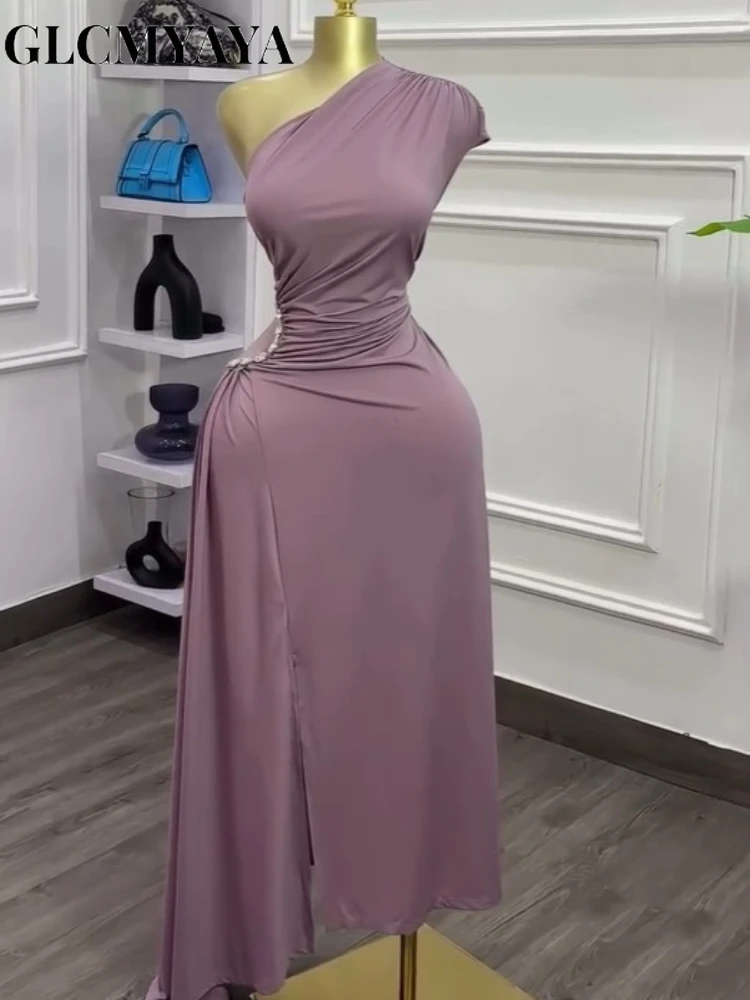 GLCMYAYA Women One Ruched Stacked Shoulder Sleeveless High Split A-line Mini Dress 2025 Vacation Holiday Sexy Party Dresses