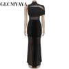 GLCMYAYA Women One Short Sleeve Cutout Mesh Stacked Ruched Bodycon Midi Maxi Long Dress 2025 Vacation Sexy Party Vestido Dresses